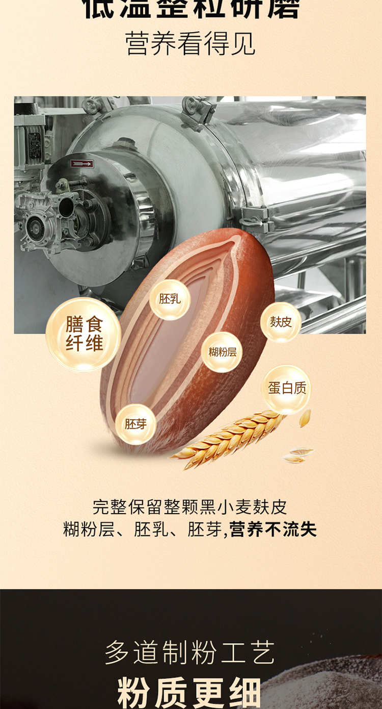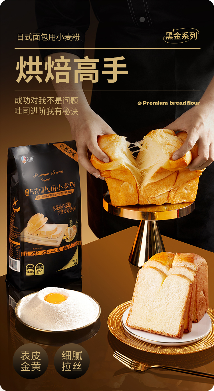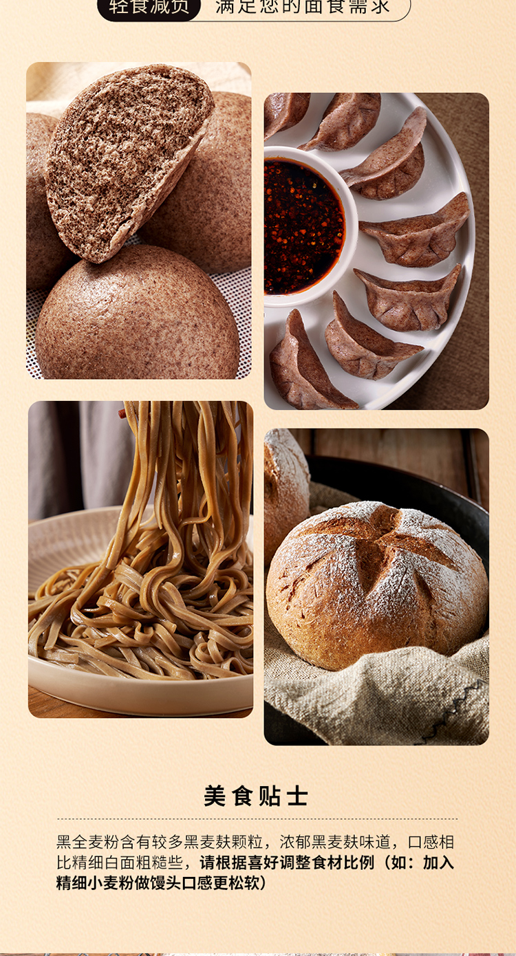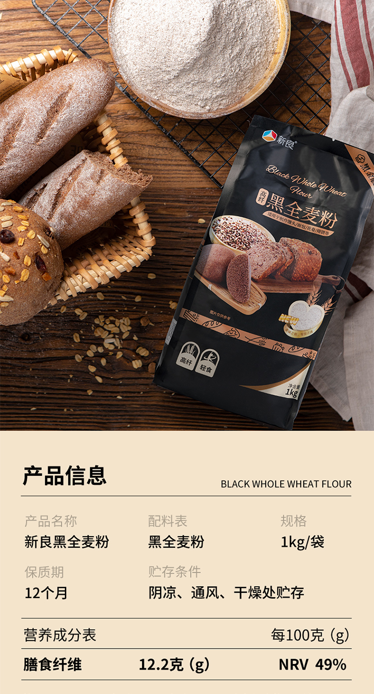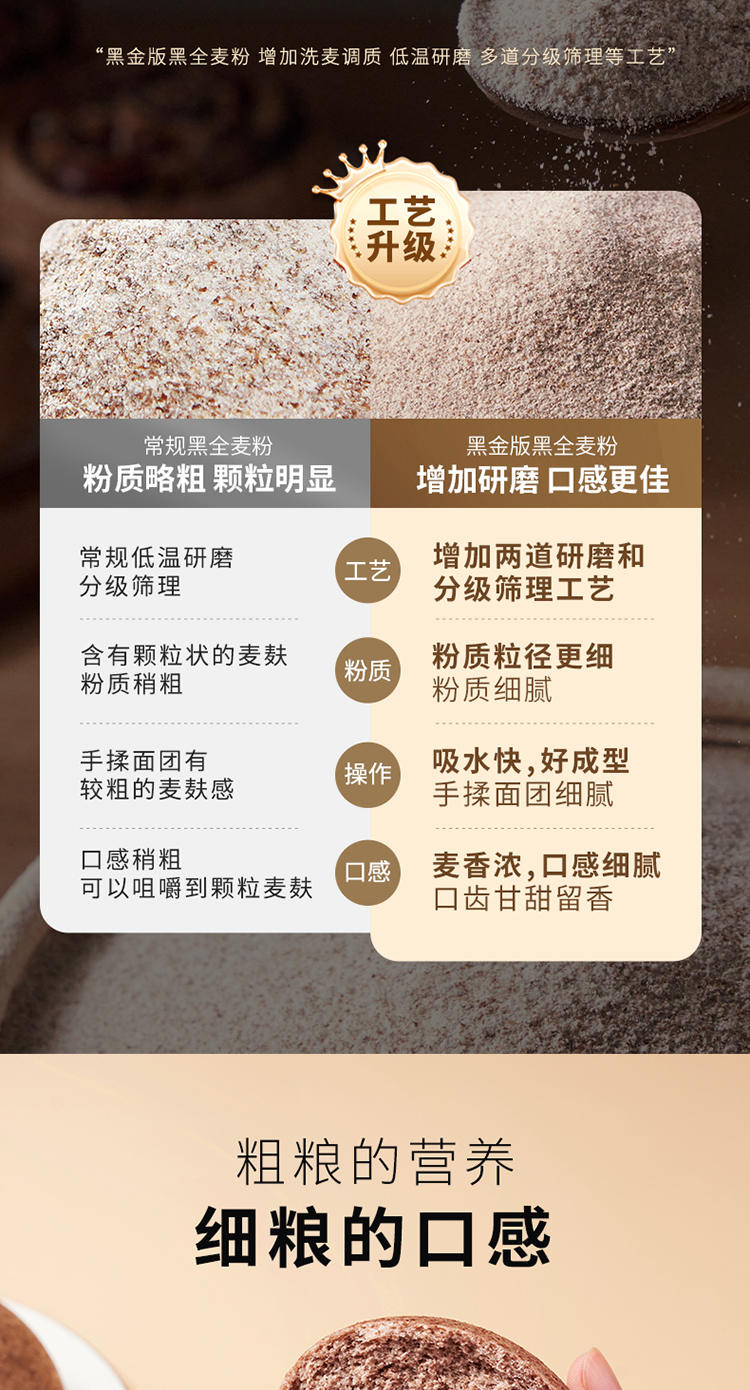 黑金系列黑全麦粉黑金日式面包用小麦粉丝绒蛋糕粉软欧面包用小麦粉