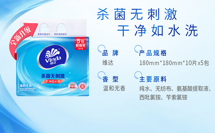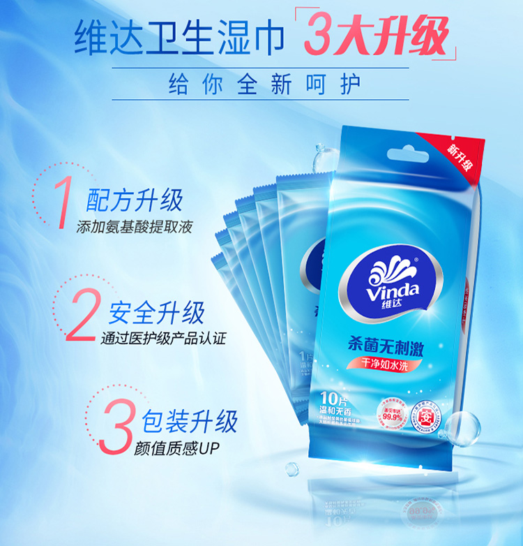 【官方包邮】维达去菌卫生湿巾无刺激小巧便携 10片/包x10包
