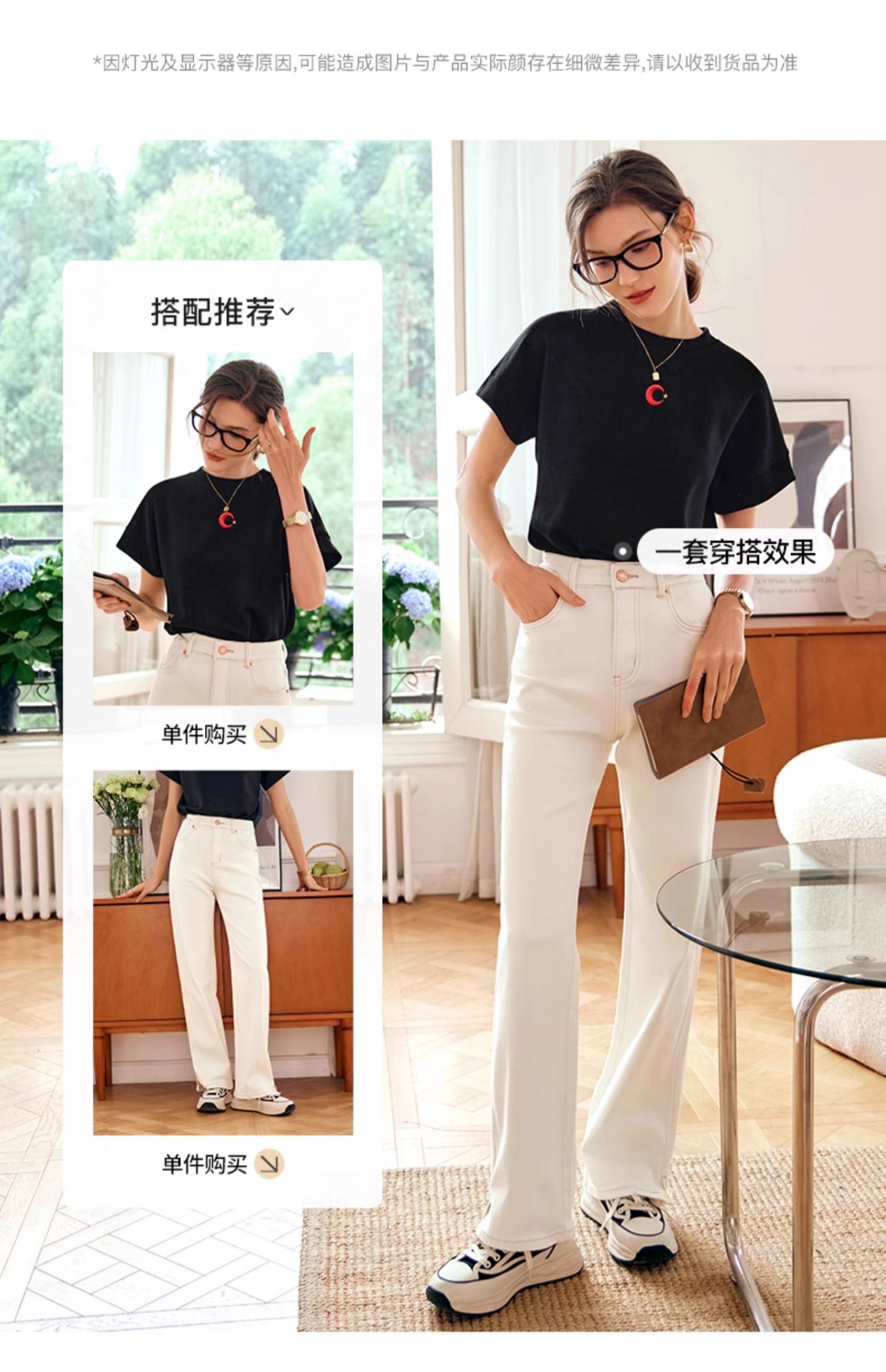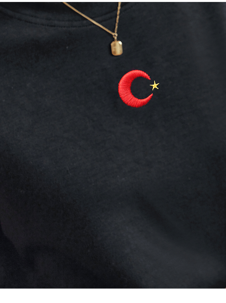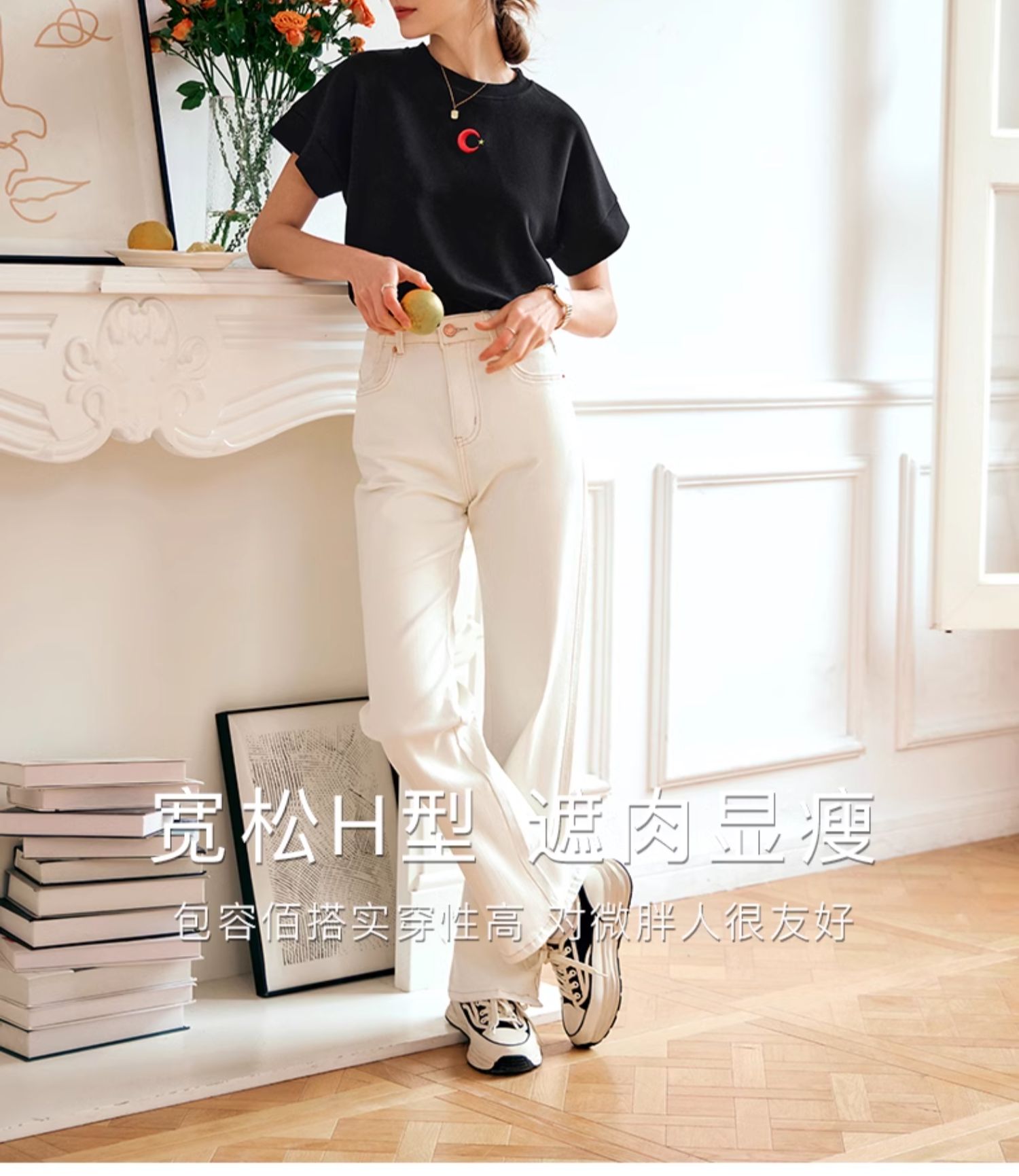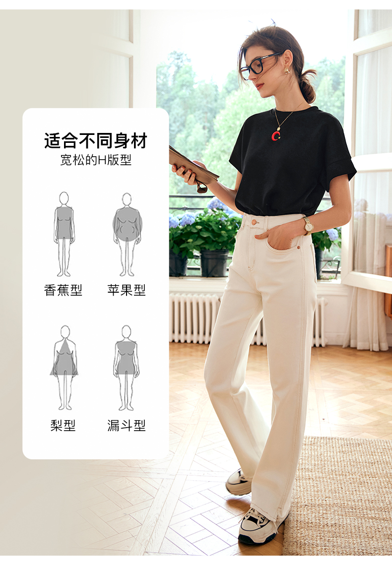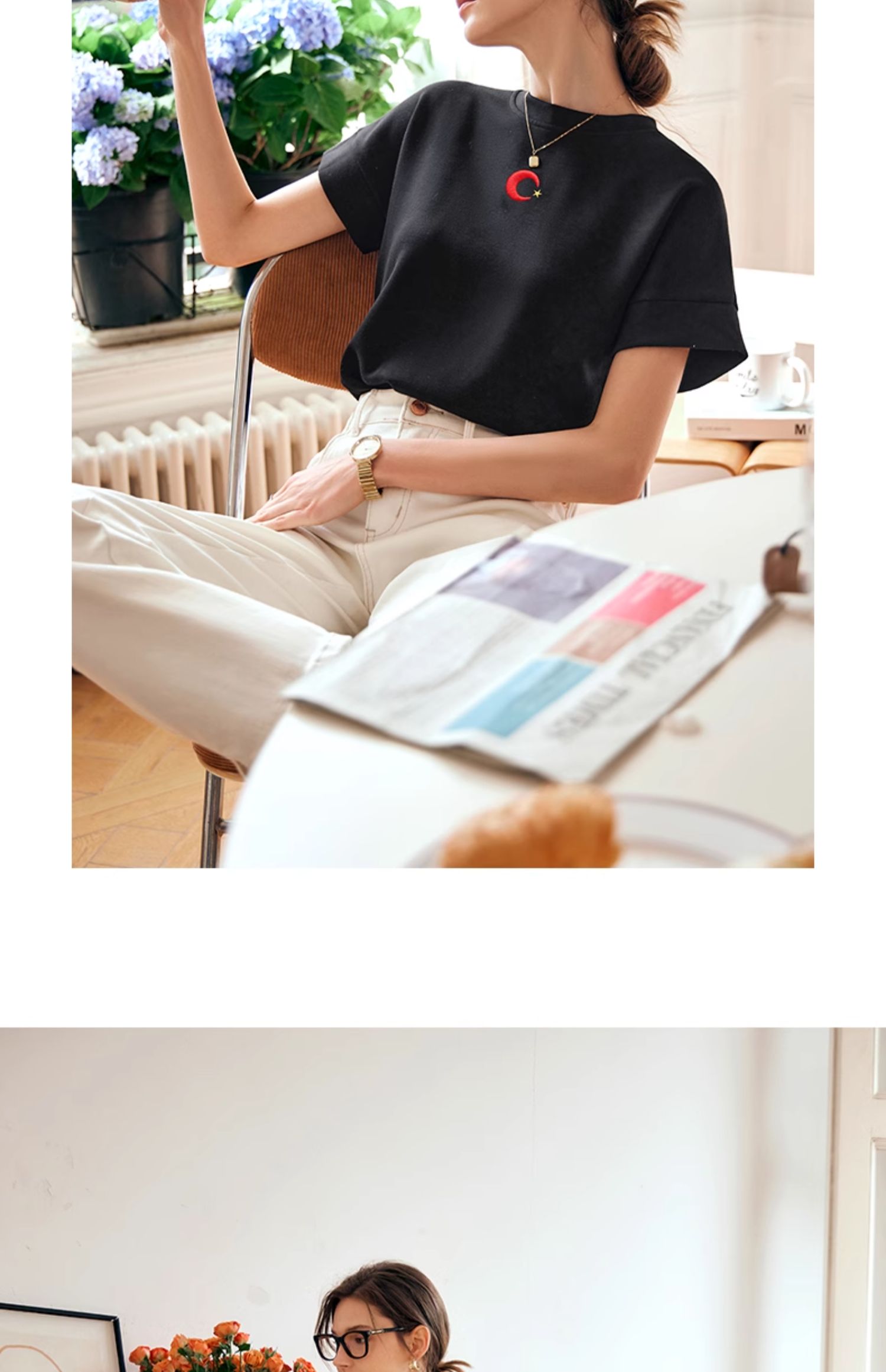 OLrain欧芮儿黑色T恤女春季2024新款小众宽松设计感刺绣短袖上衣