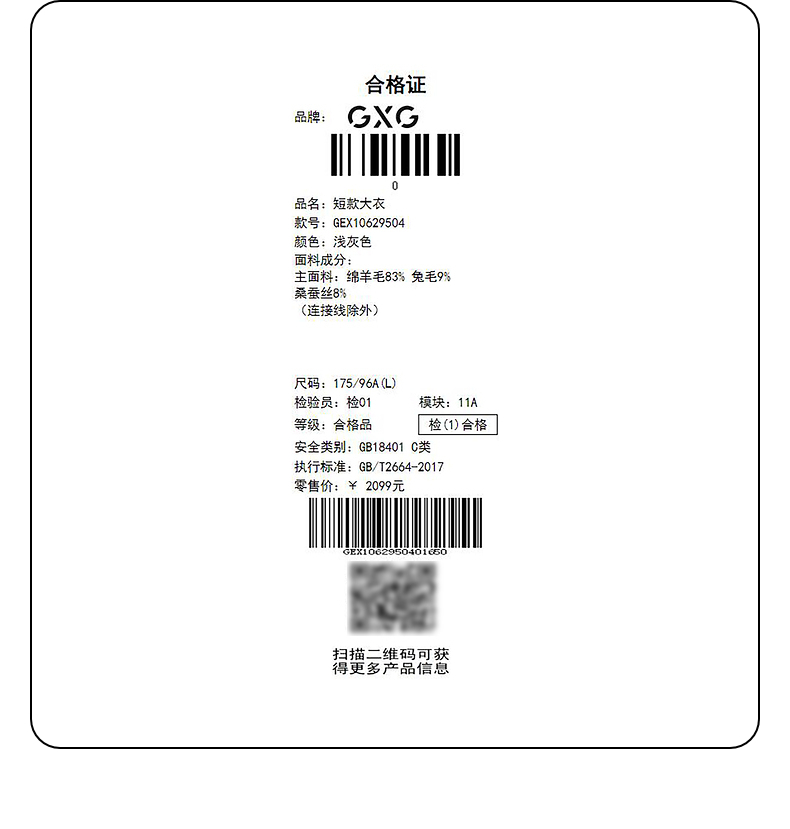 GXG男装 浅灰色简约保暖大衣 冬季热卖GEX10629504