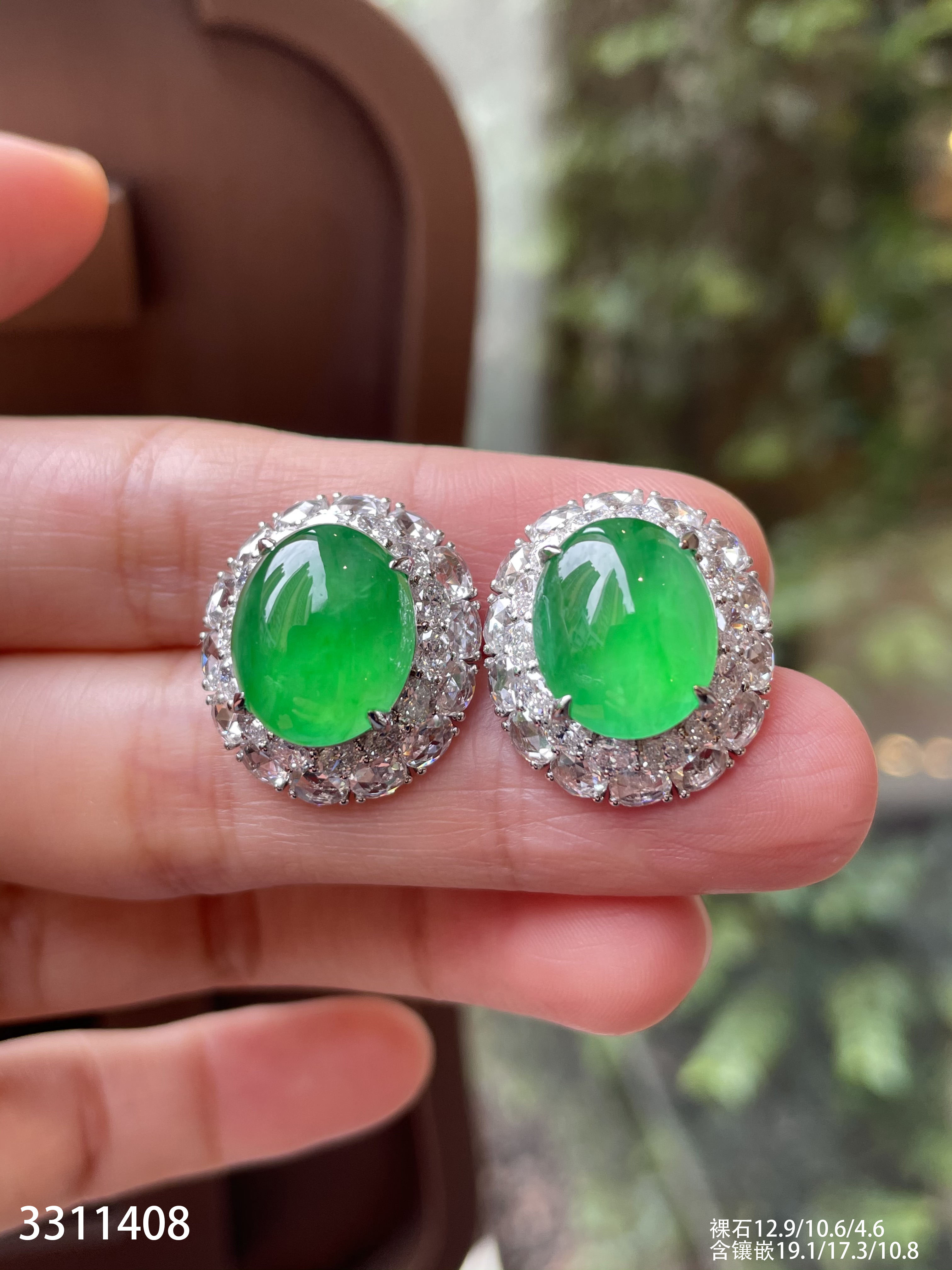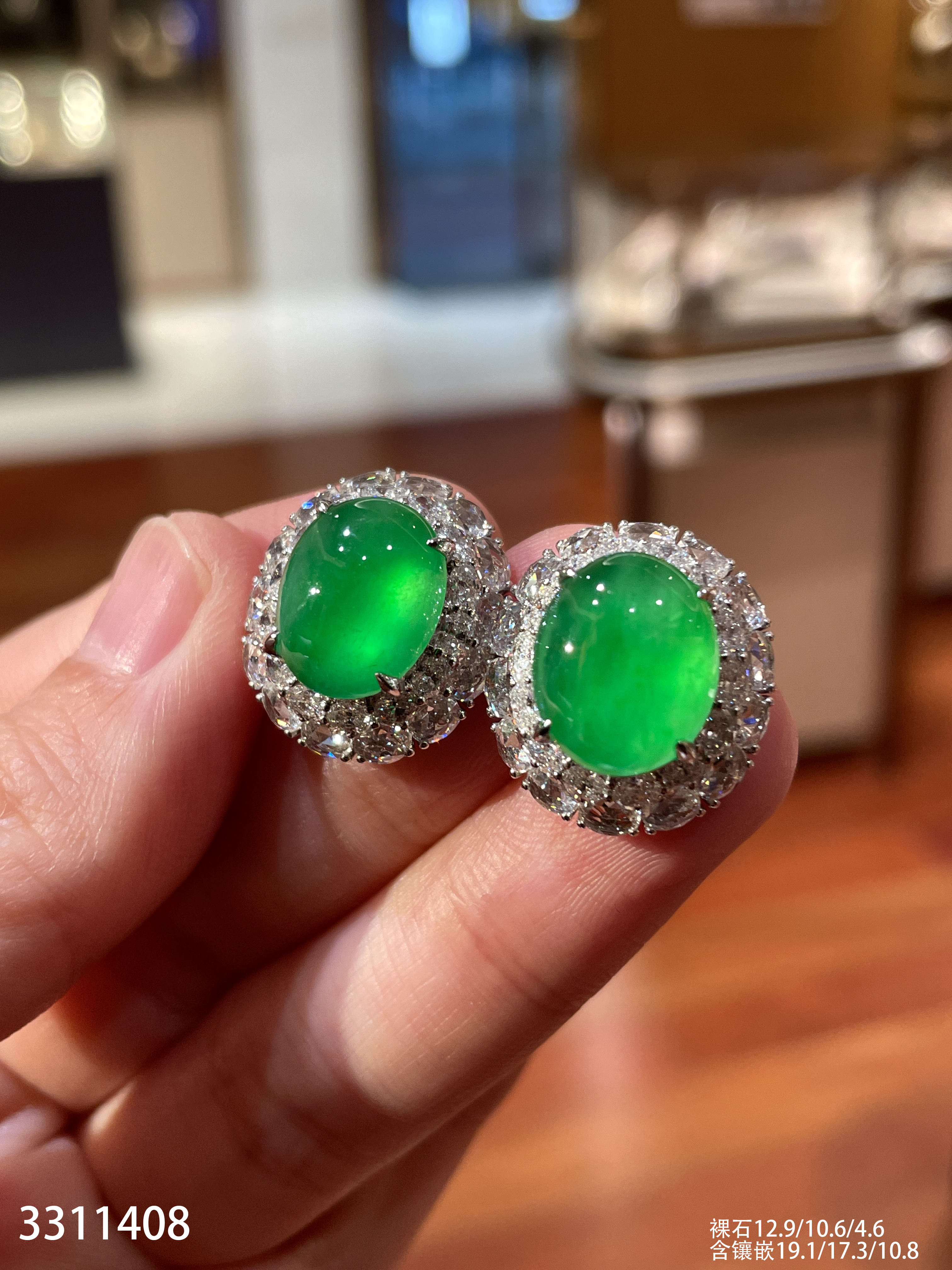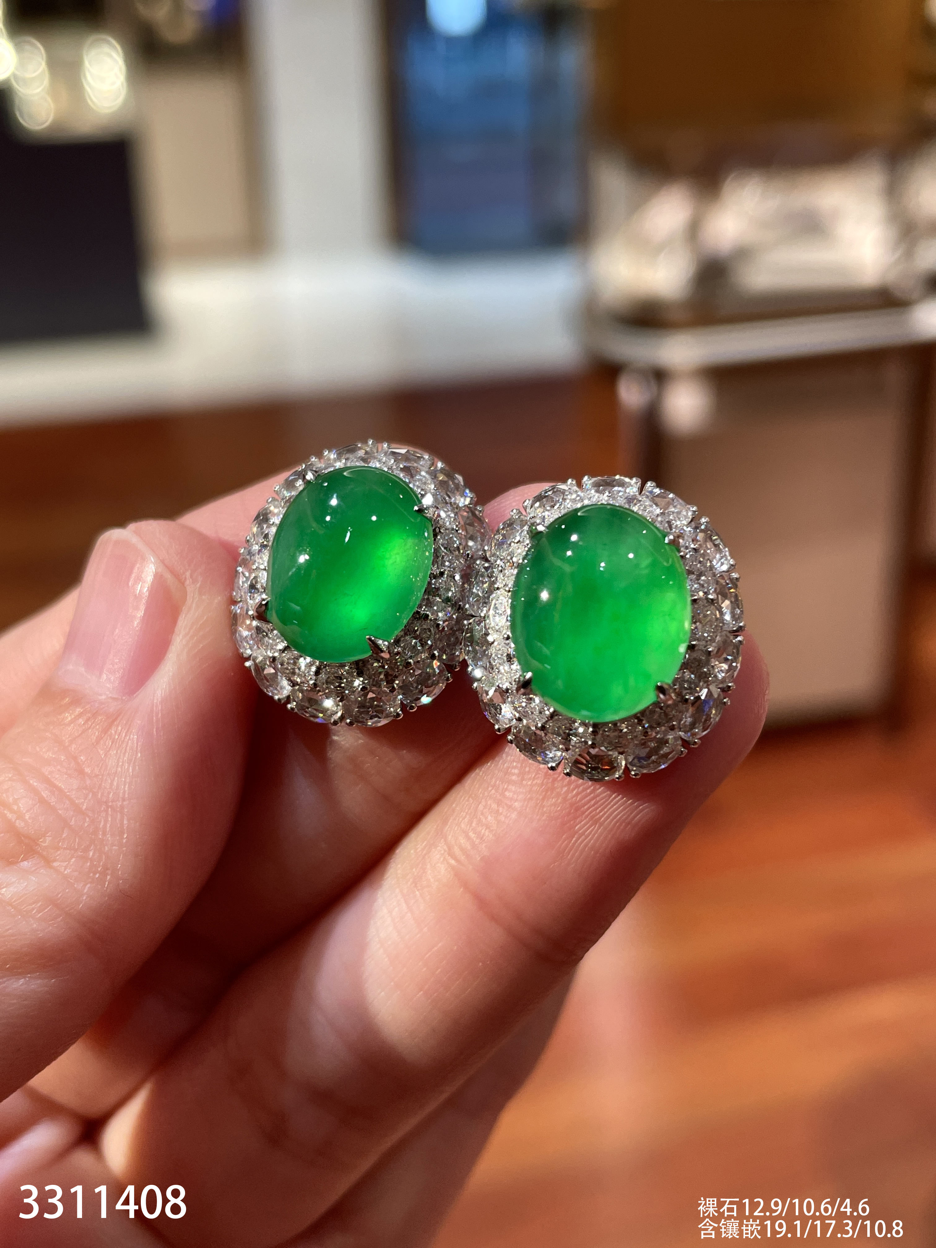 玻璃种木那蛋面耳钉【3311408】具体价格微信咨询
