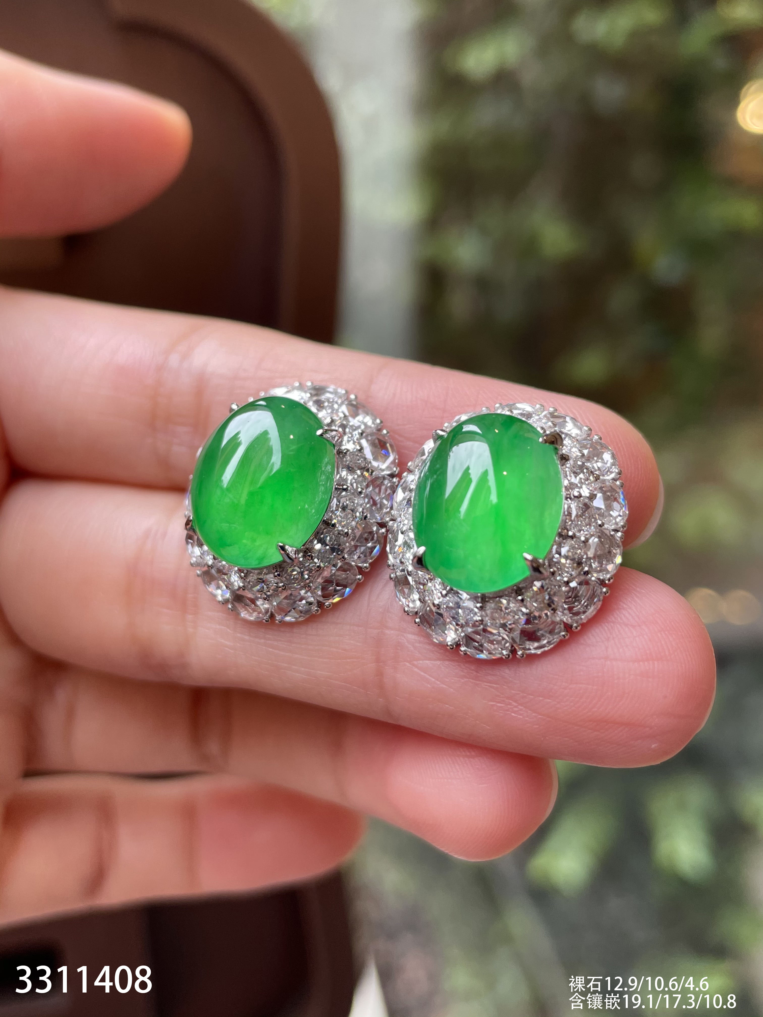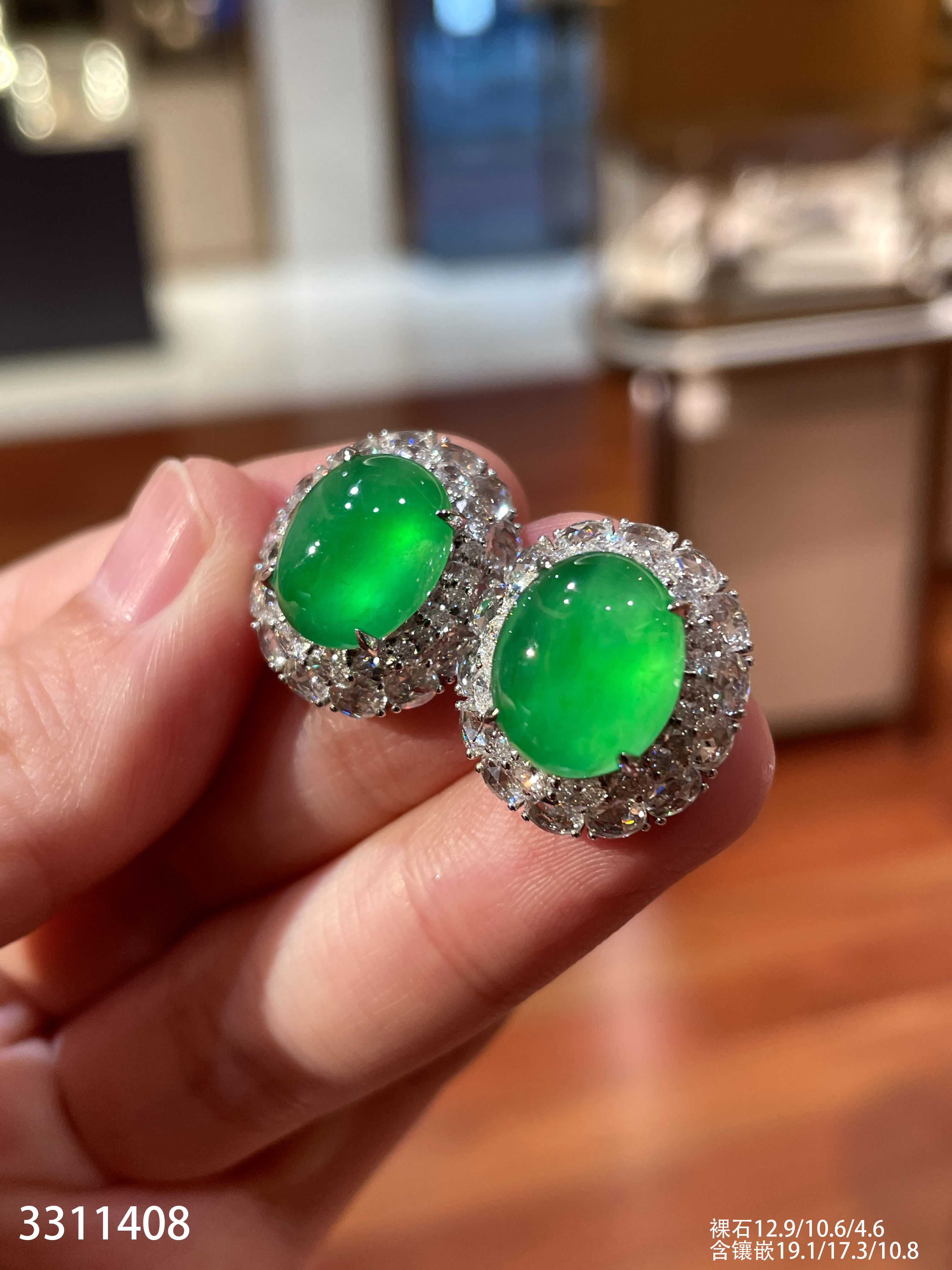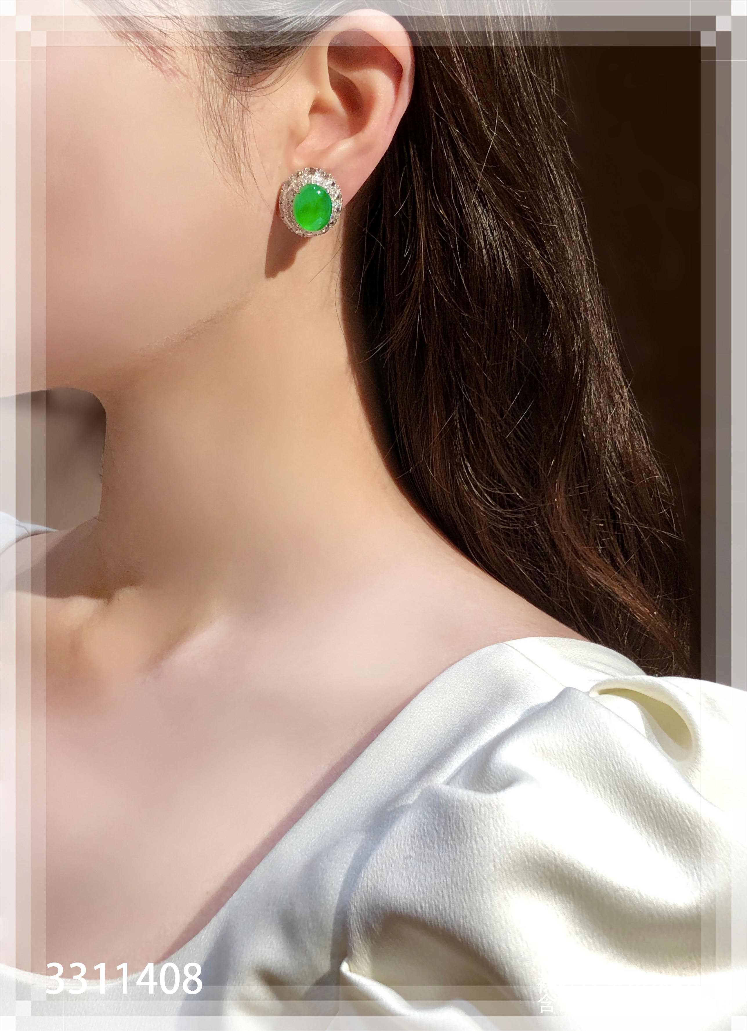 玻璃种木那蛋面耳钉【3311408】具体价格微信咨询