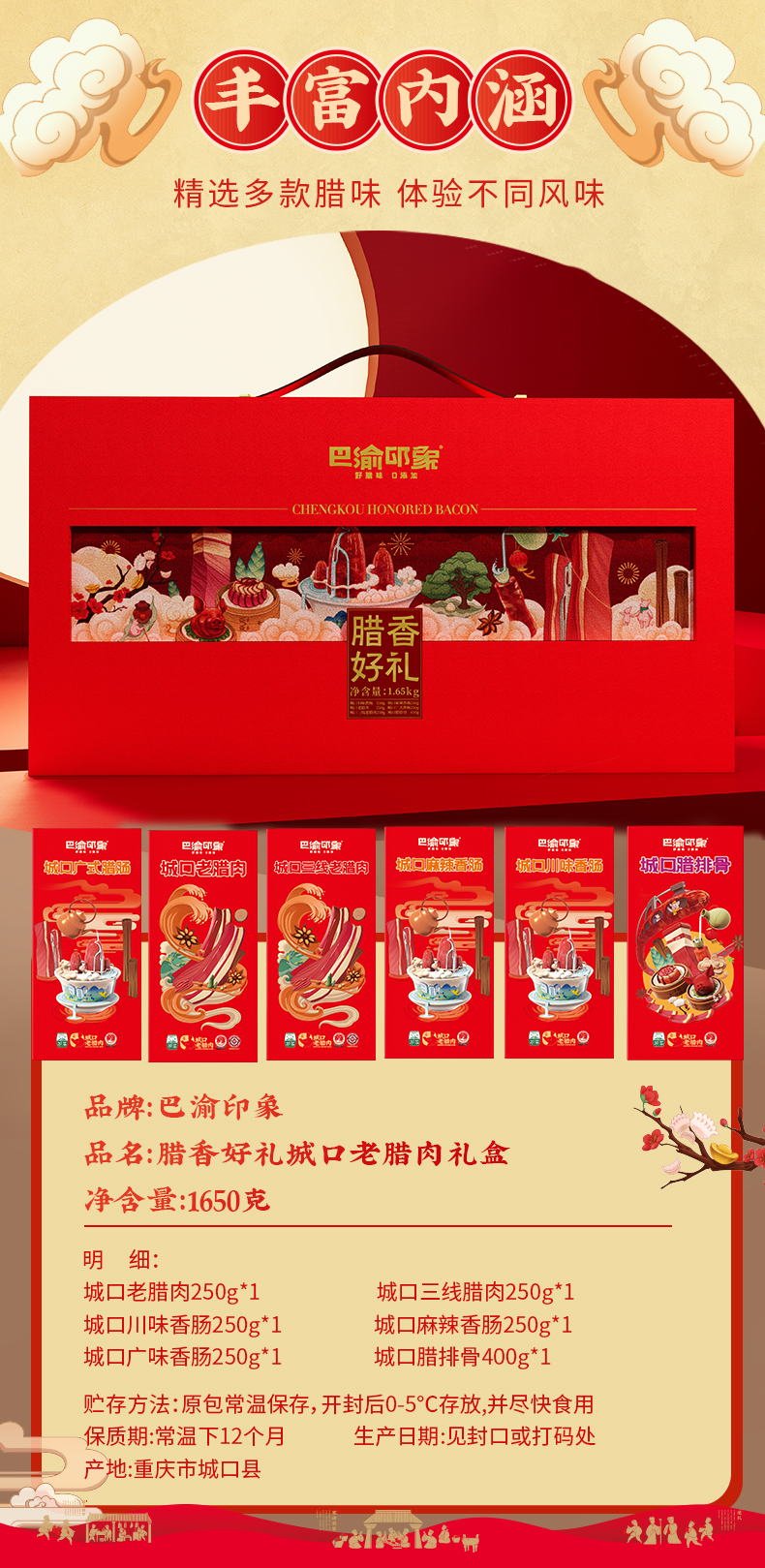 【城口老腊肉】巴渝印象腊香好礼礼盒 1.65kg 地标产品 非遗工艺 农家土猪