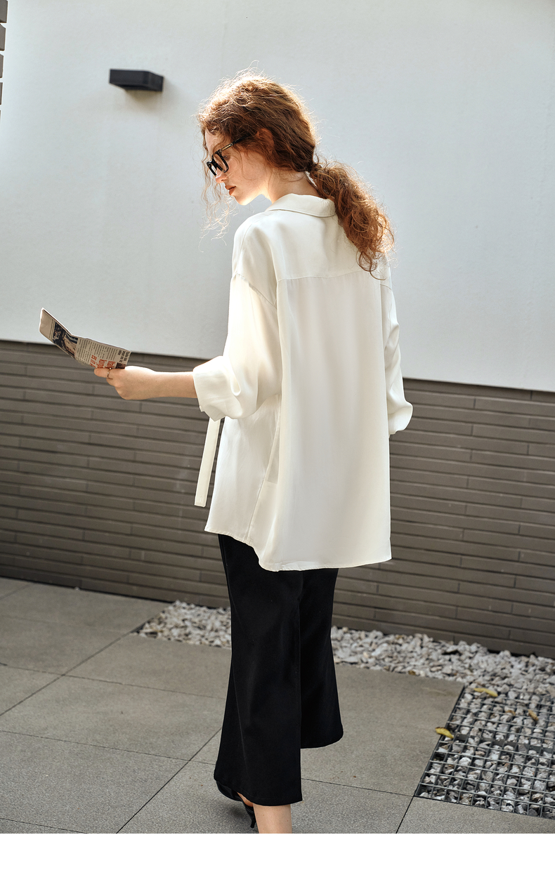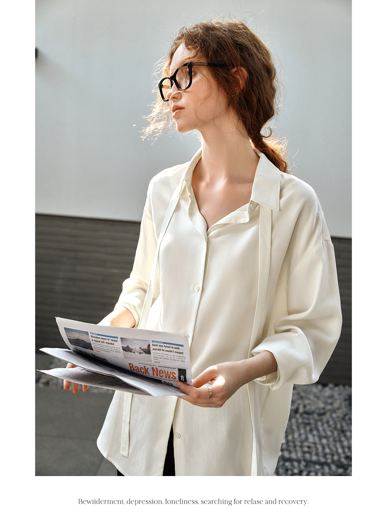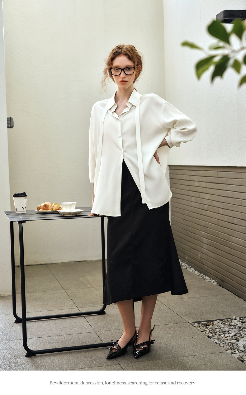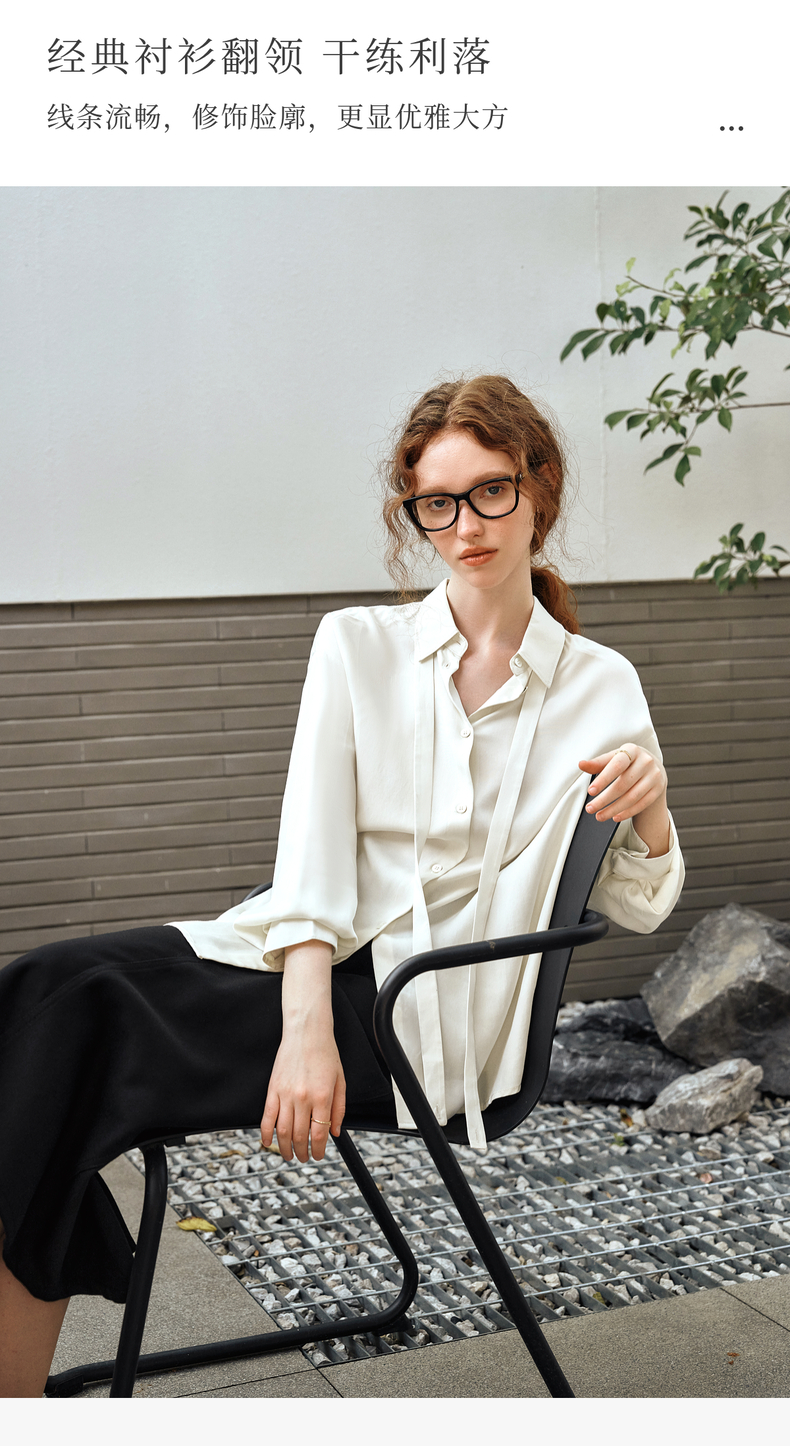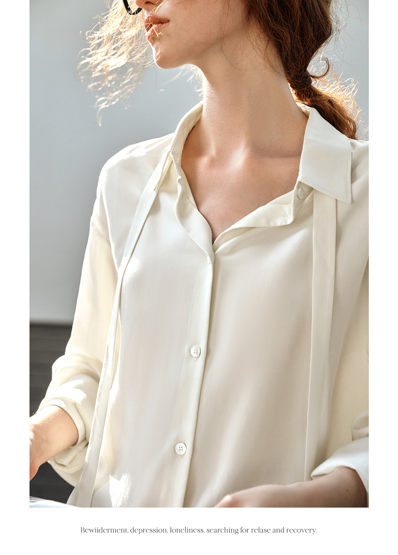 OLrain欧芮儿白色长袖衬衫女春季2025新款通勤气质飘带慵懒风衬衣