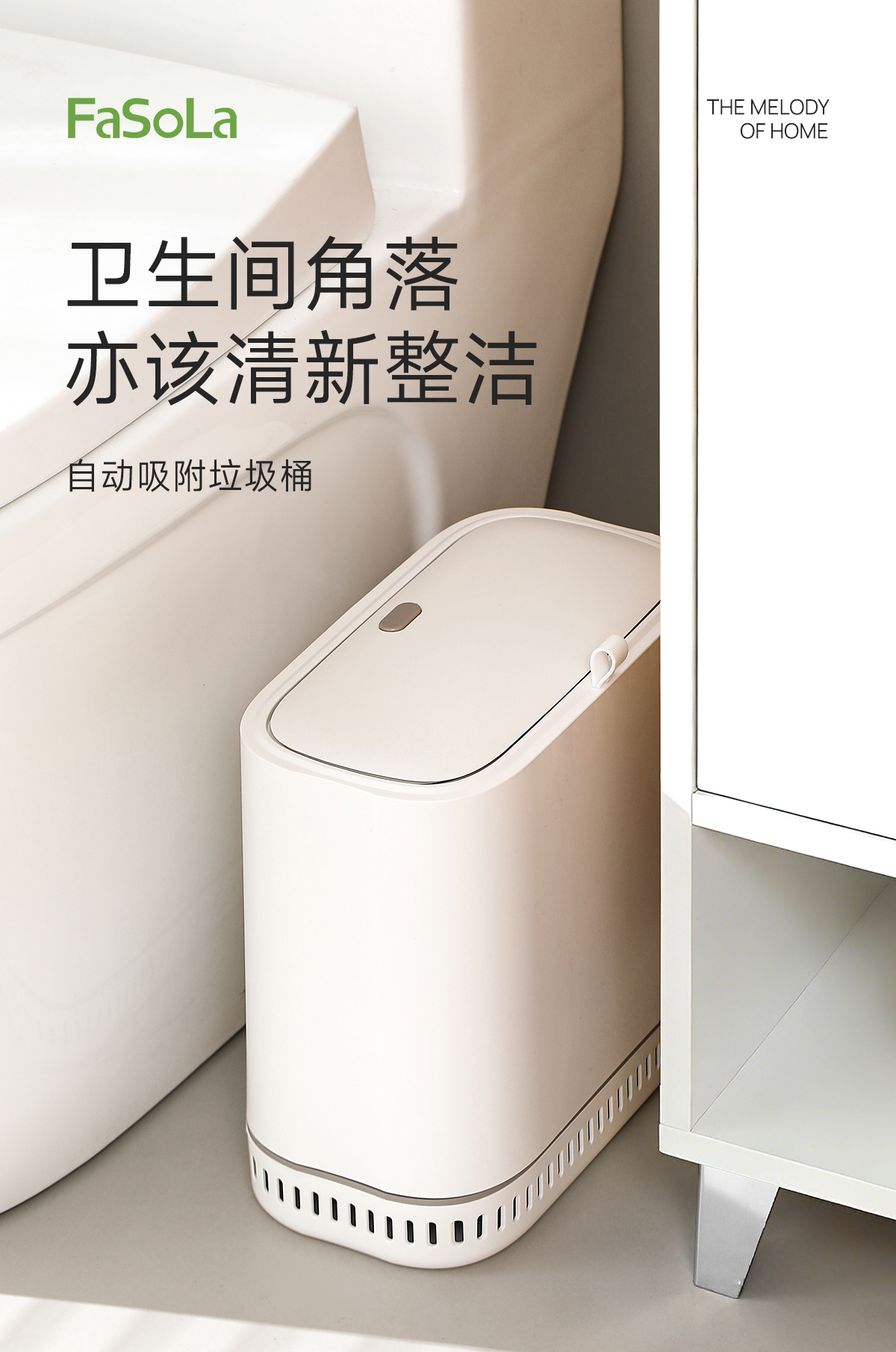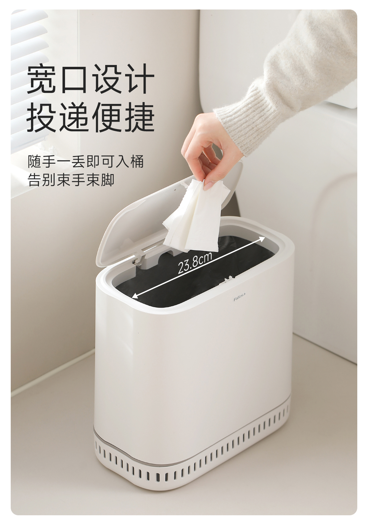 FaSoLa卫生间夹缝垃圾桶窄款家用翻盖桶厨房卧室带盖按压式卫生桶