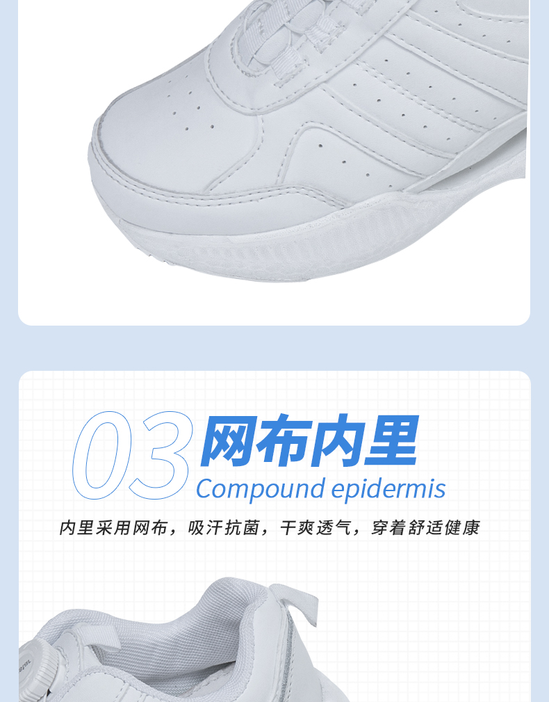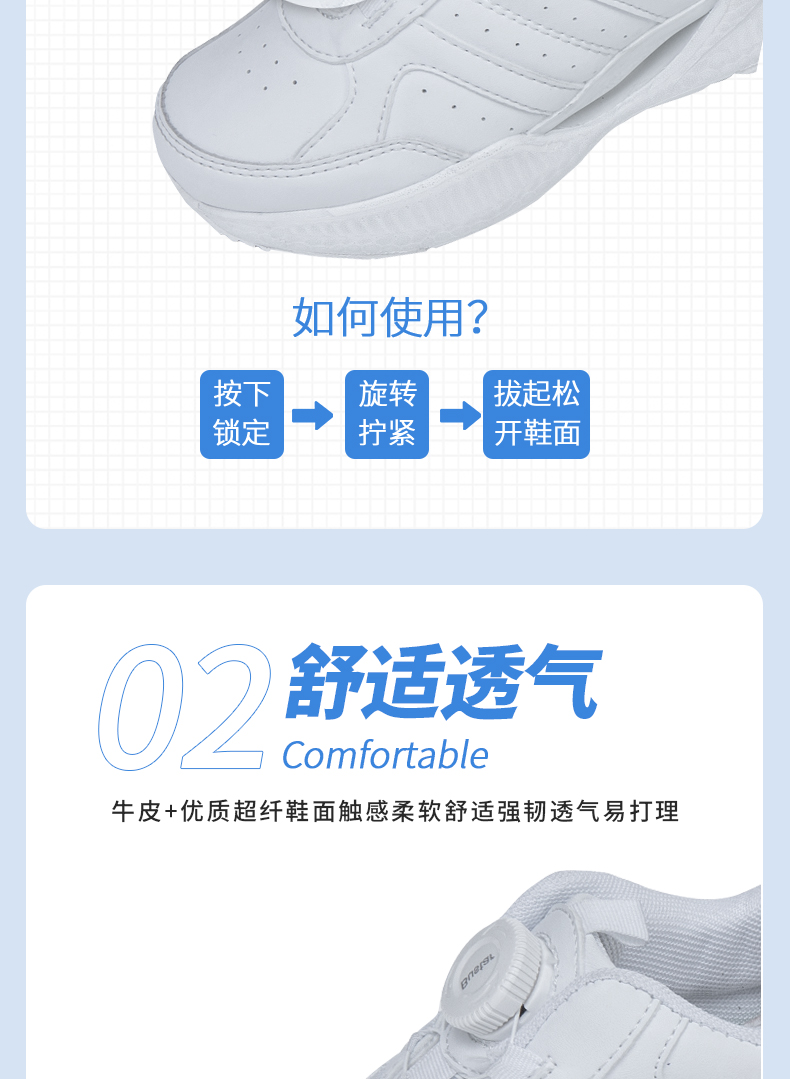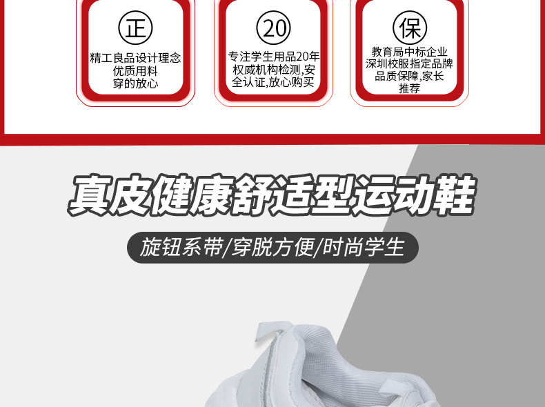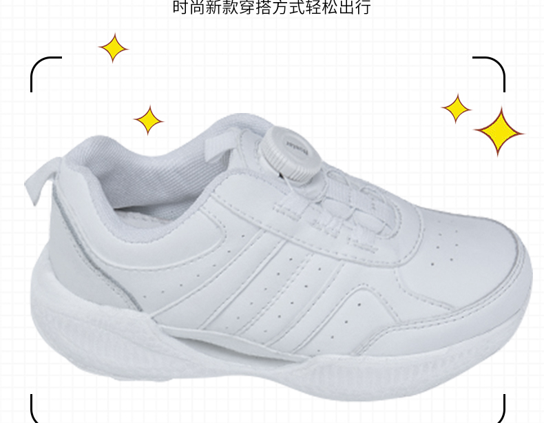 深圳校鞋小学生白色旋扣运动鞋纳米抗菌