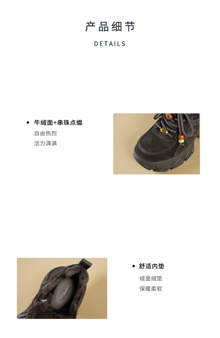 Westory2025年冬季厚底绒面加毛波西米亚风运动鞋深口毛毛鞋S25DM86241