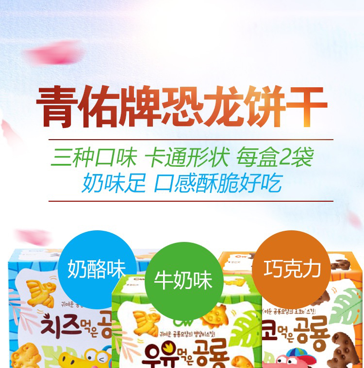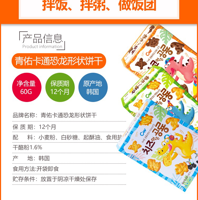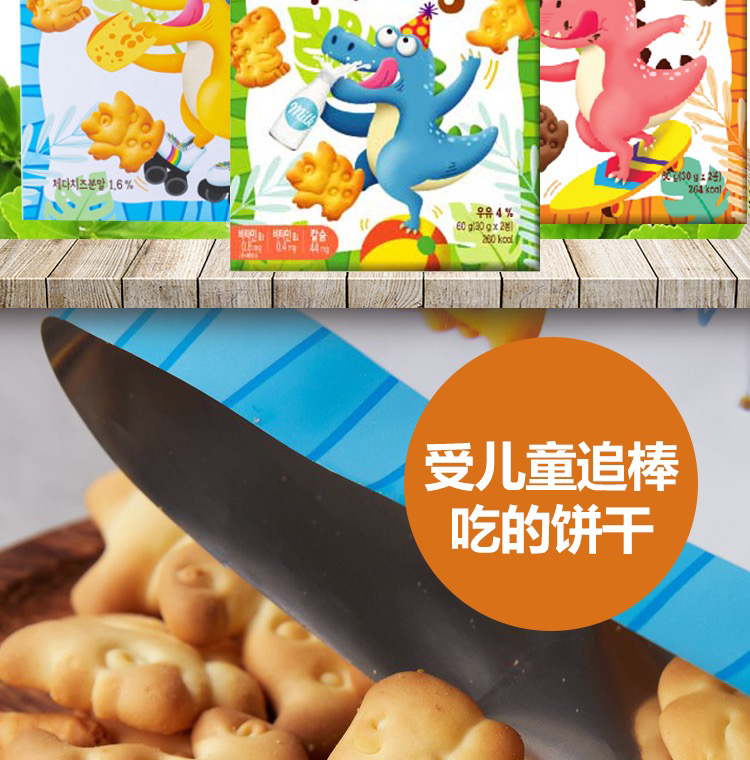 韩国进口青佑CW牌恐龙形饼干牛奶味儿童早餐饼干卡通休闲零食60g