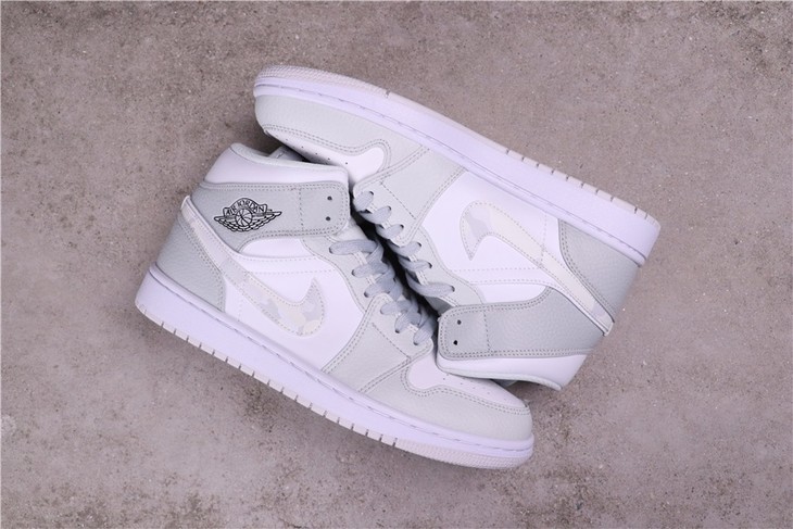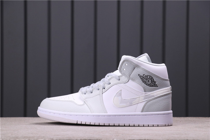 乔丹1代中帮系列Air Jordan 1 Mid With Grey Camo Swooshes