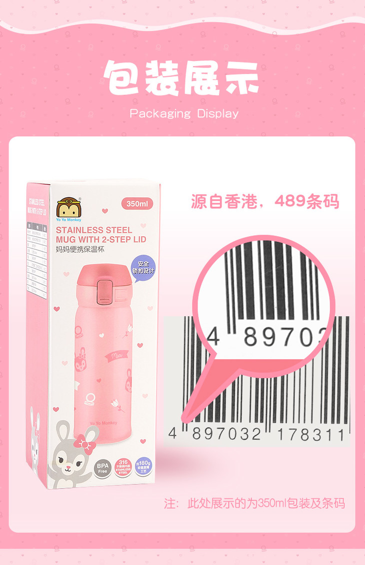 Yo Yo Monkey350ML妈妈便携保温杯OG1008(橙色)