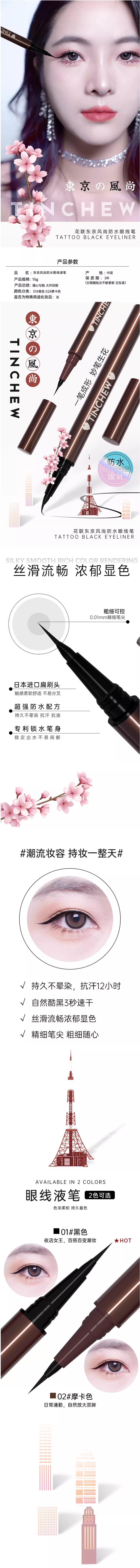 【130元会员福利】韩国花联东京风尚防水眼线液笔01#/0.6ml黑色