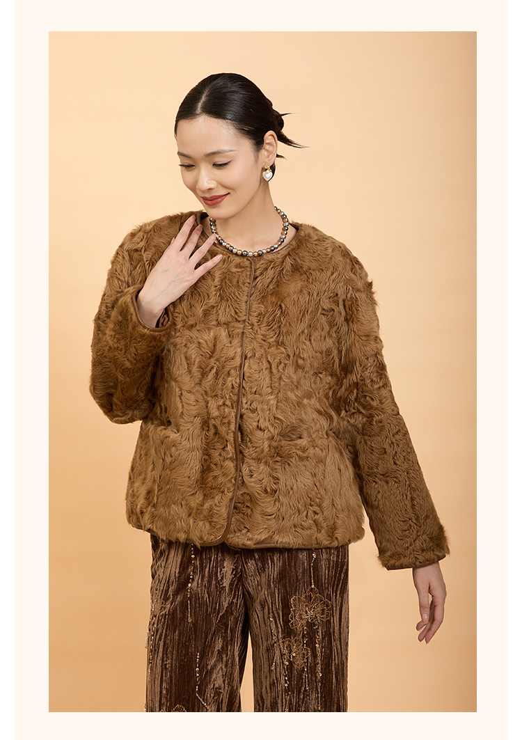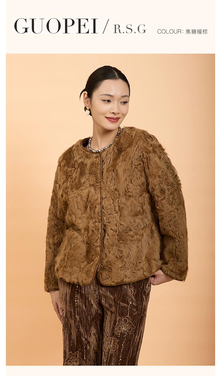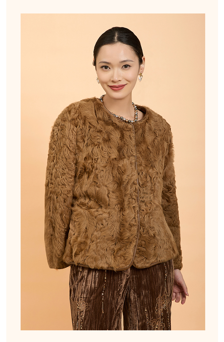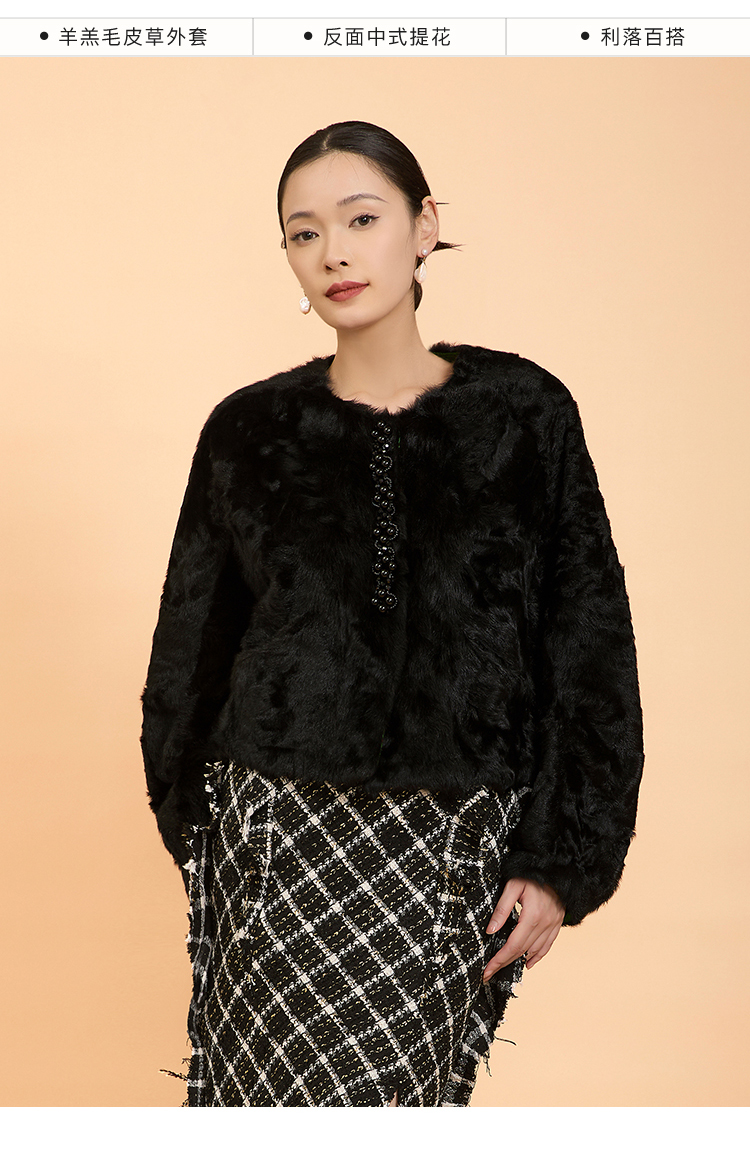 郭培成衣品牌精品系列新中式老钱风羊羔毛皮草外套