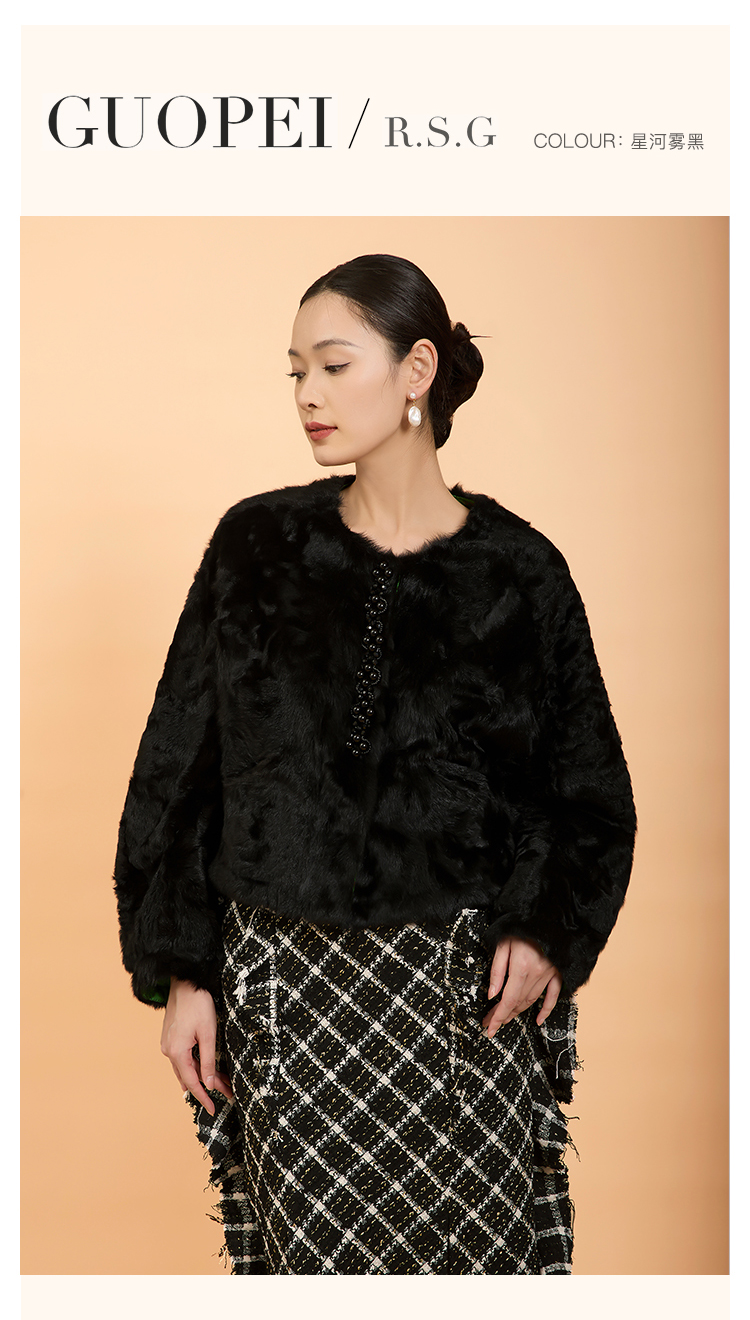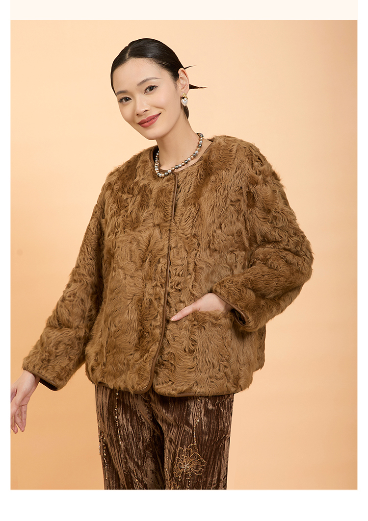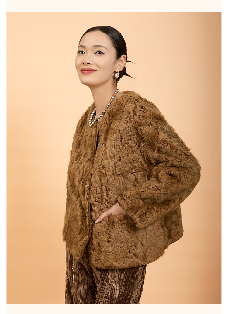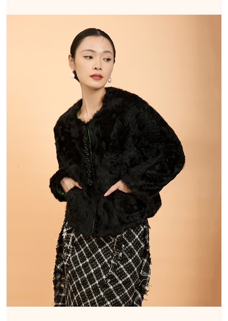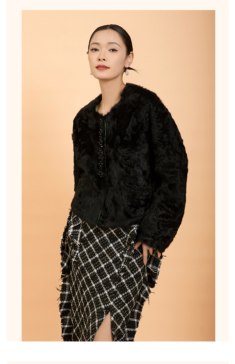 郭培成衣品牌精品系列新中式老钱风羊羔毛皮草外套