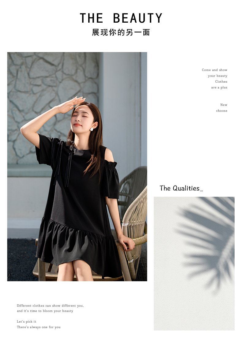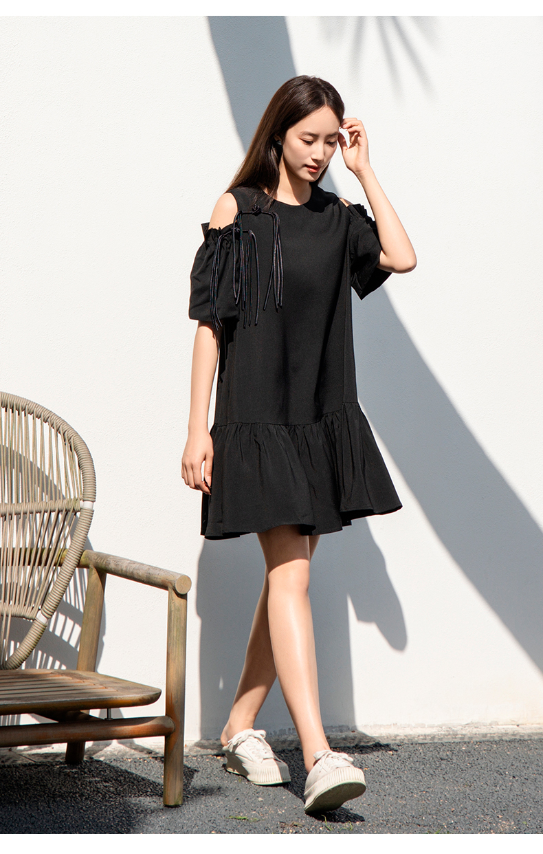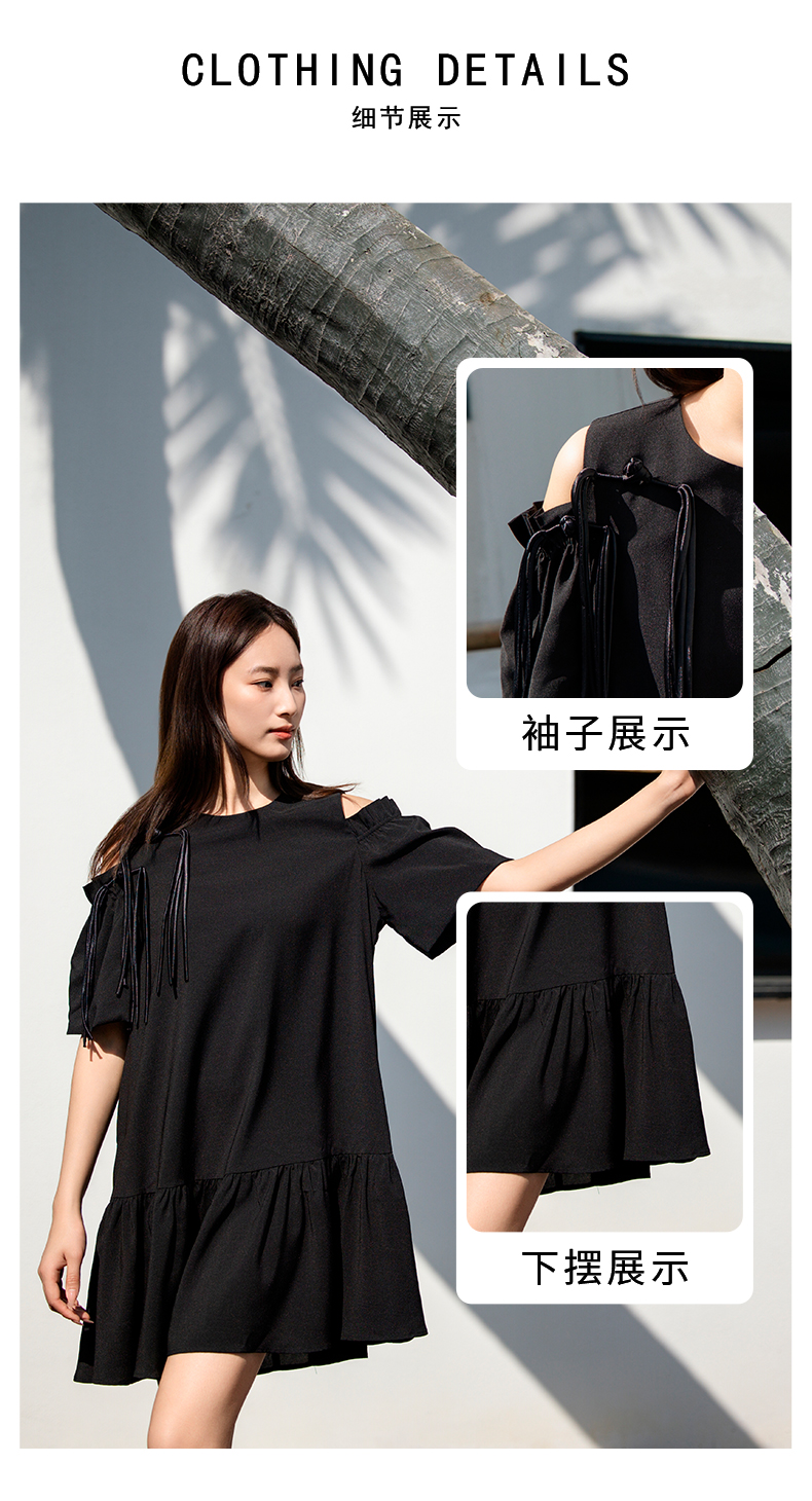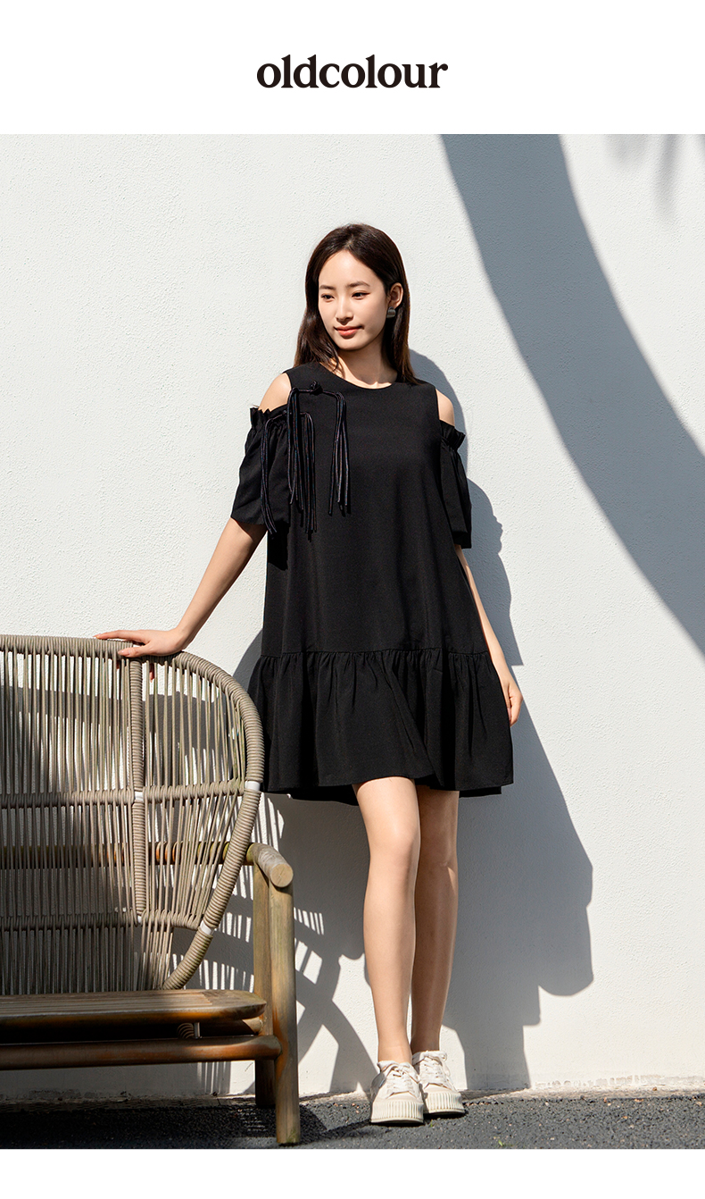 oldcolour欧珂女士露肩吊带装饰连衣裙女气质宽松显瘦P23101401