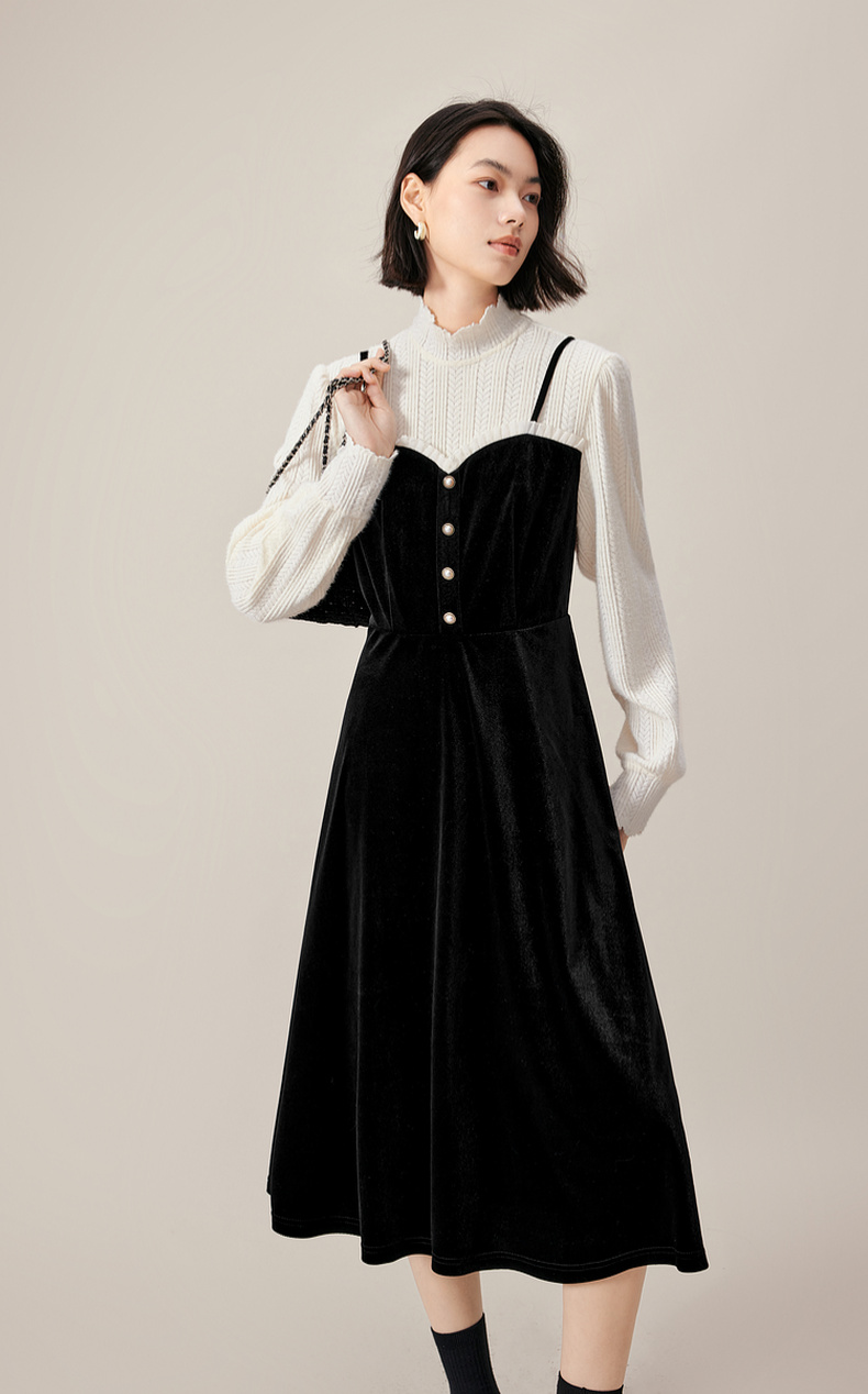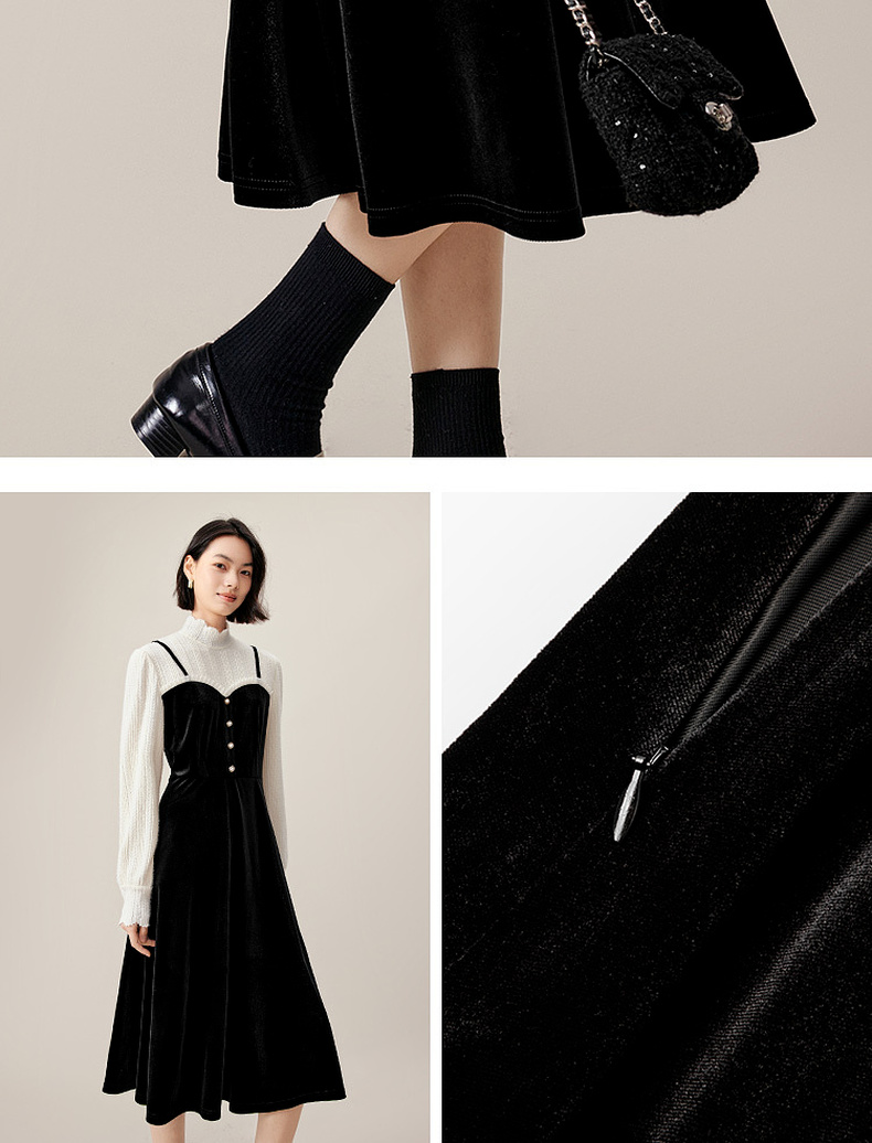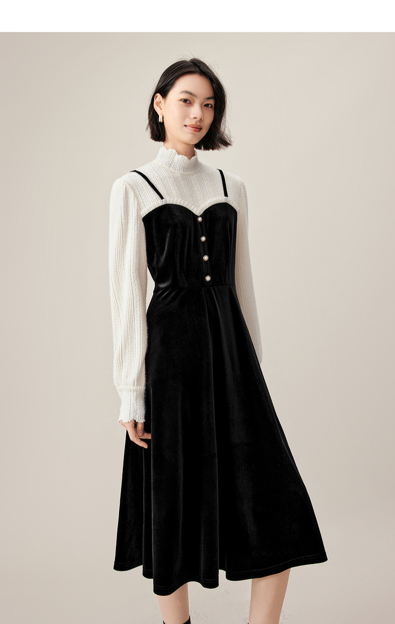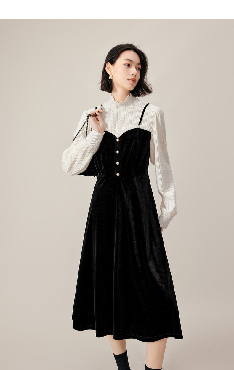 【严选】伊芙丽冬法式假两件丝绒连衣裙1EA995221