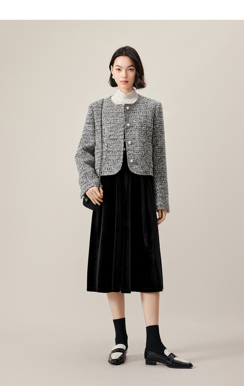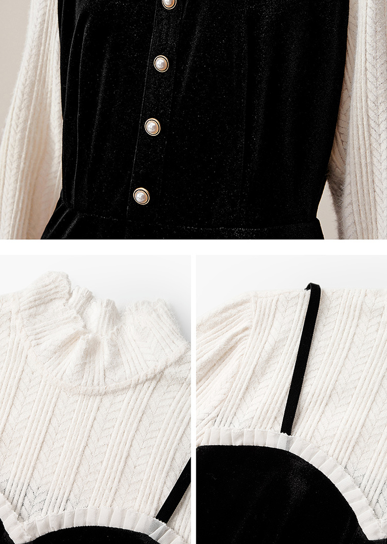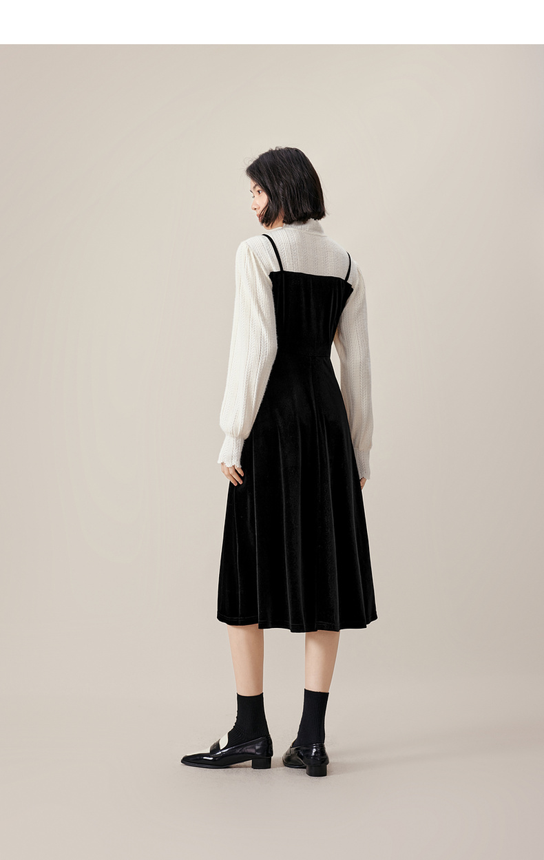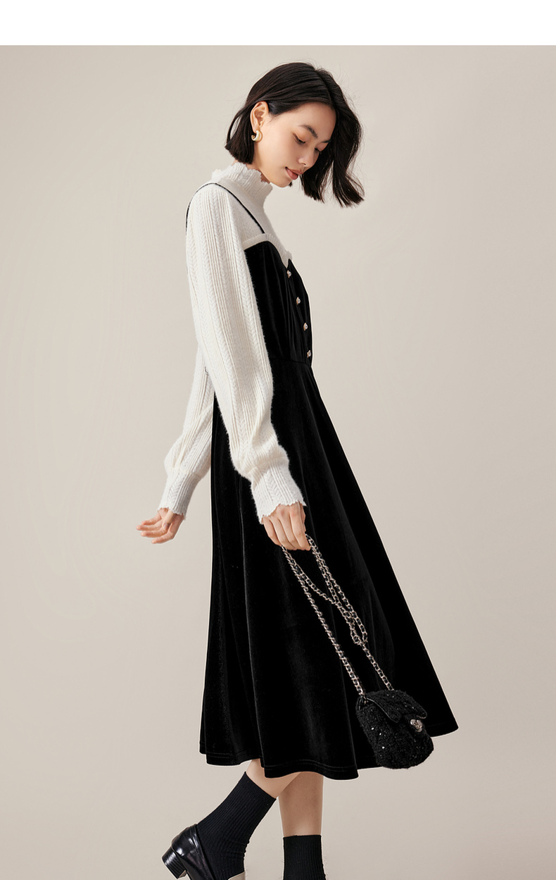 【严选】伊芙丽冬法式假两件丝绒连衣裙1EA995221