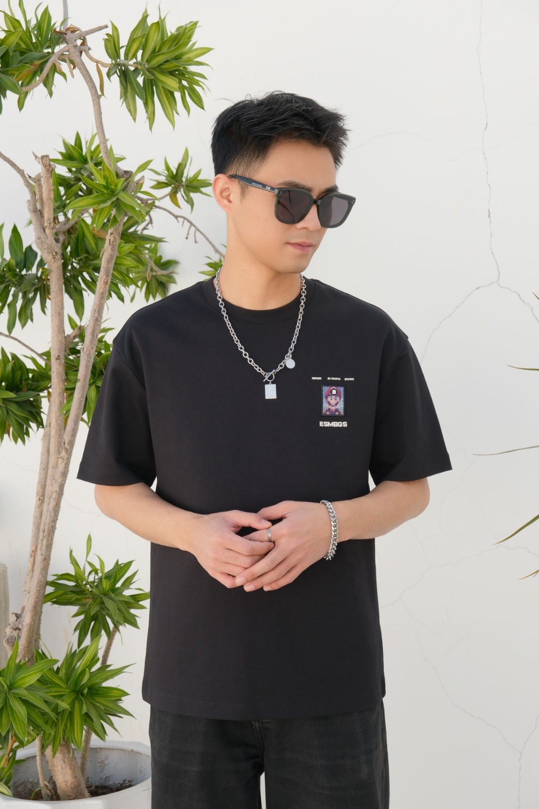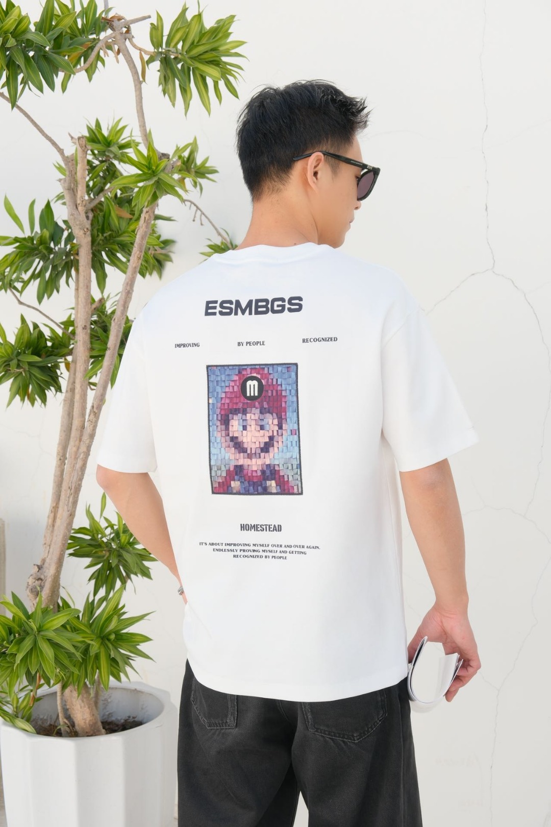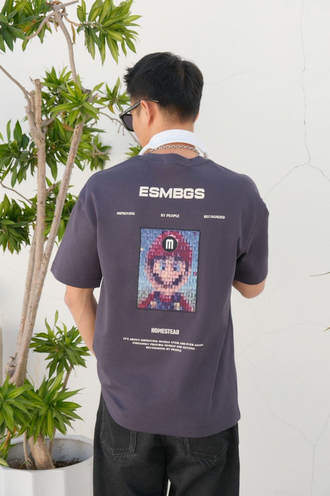 3189# 这件酒红色 T 恤必须安利!版型宽松不挑人,胸前马赛克马里奥超有个性 。搭黑色工装裤超酷,不管是和朋友聚会,还是周末闲逛,穿上就很吸睛!