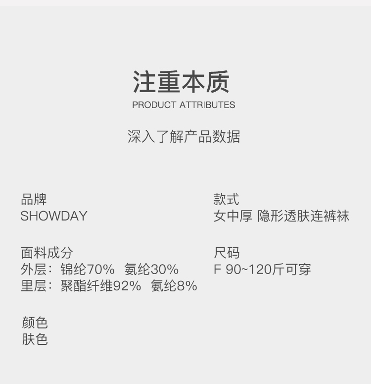 【7.5折限时特惠】【秀黛】女中厚隐形透肤连裤袜【180g】S6223003T【门店同款】【贴身物品,非质量问题不退换】