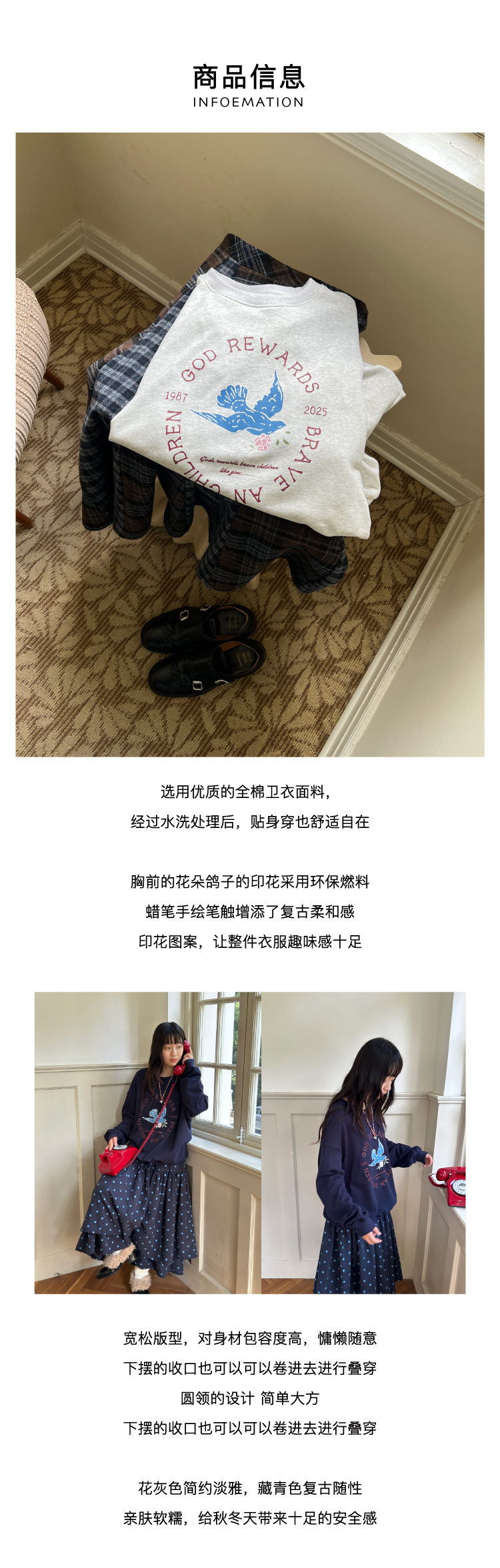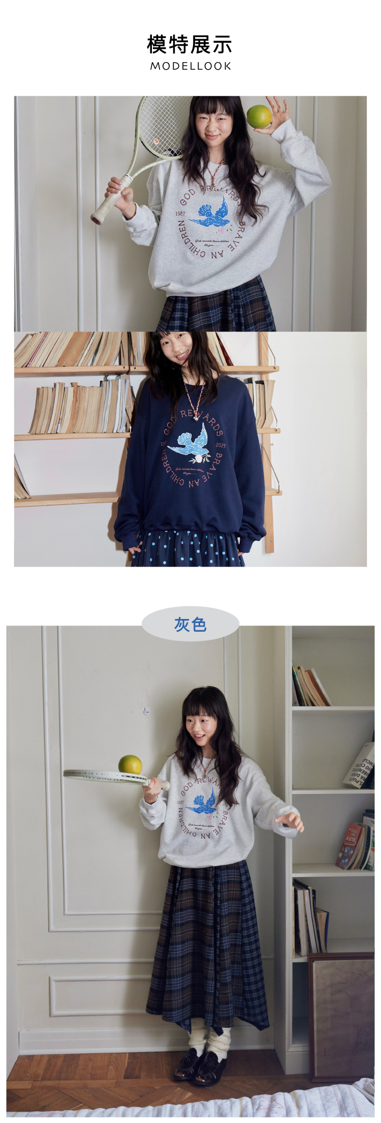 nothe Case布然/NC253208/「蓝色飞鸽」全棉宽松卫衣