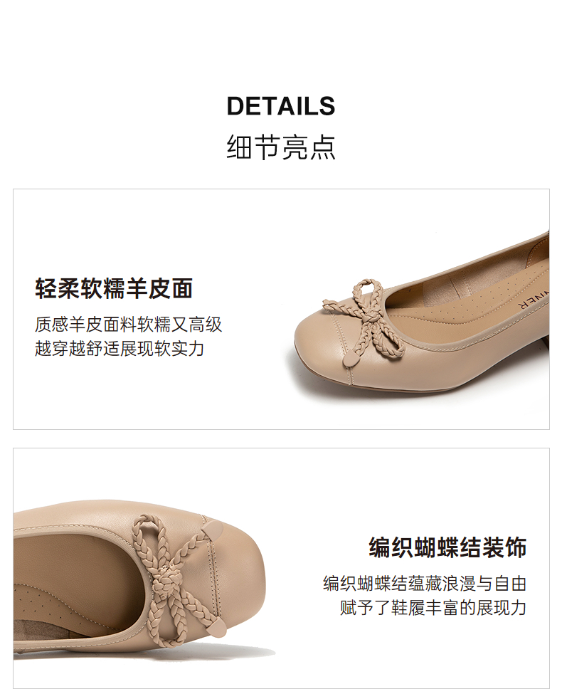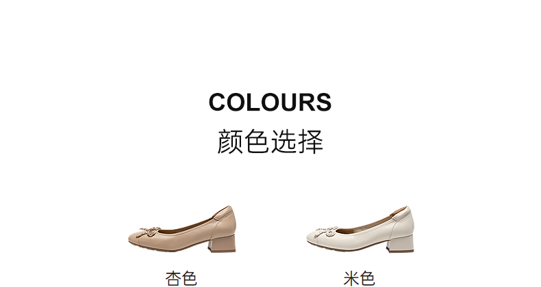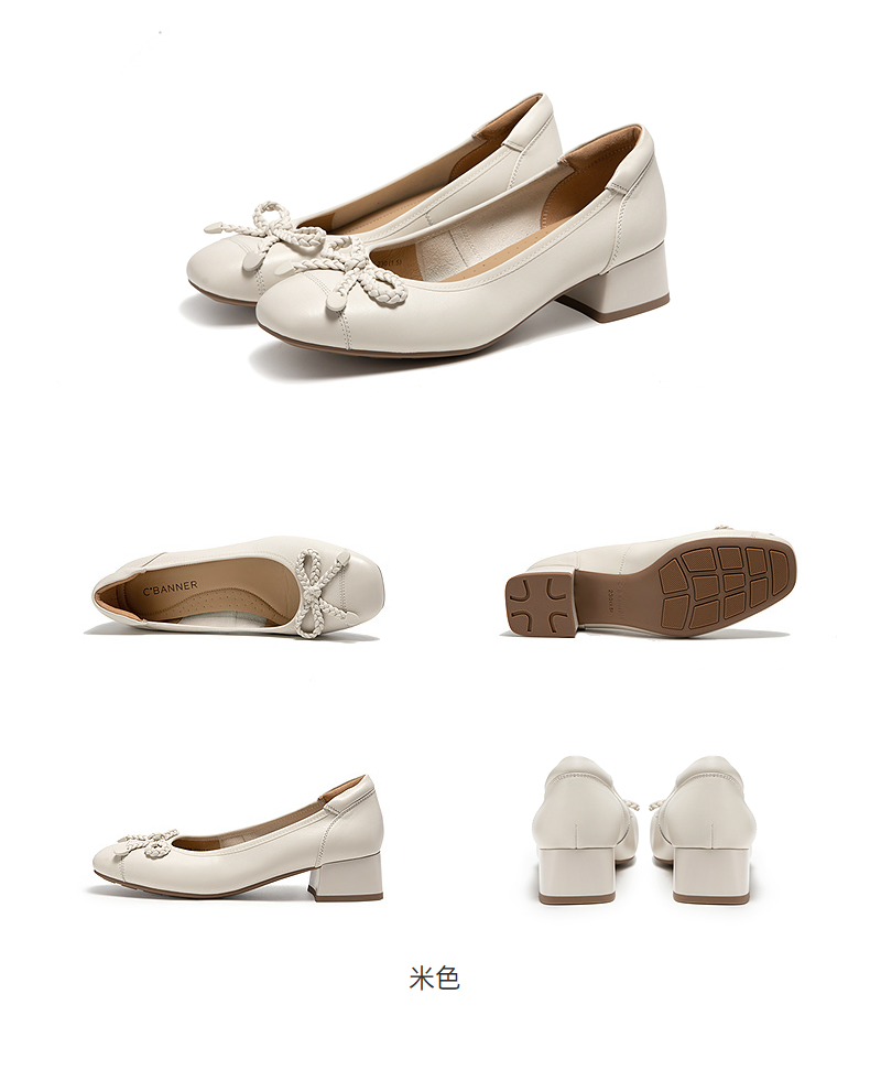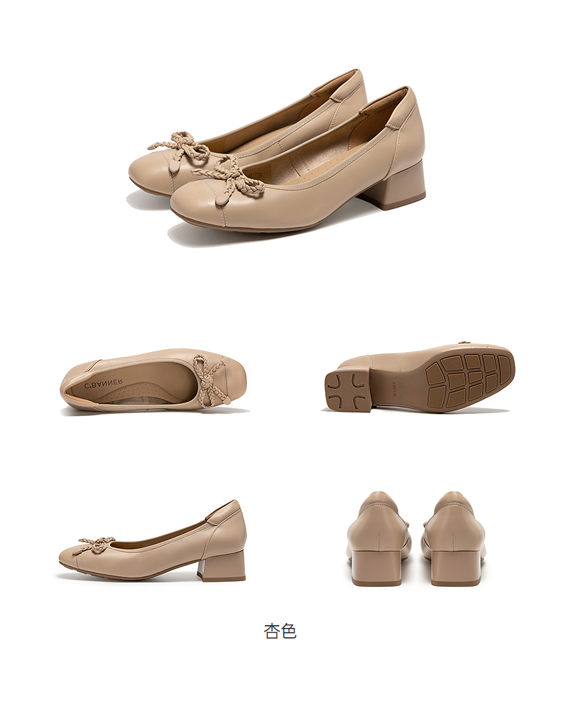千百度羊皮蝴蝶结粗跟浅口单鞋女款通勤正装高跟鞋A25181918