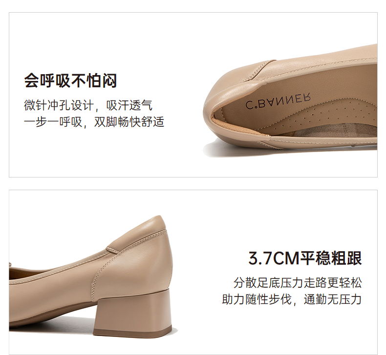 【静音系列】千百度双C拥抱粗中跟鞋女法式浅口单鞋A25487509