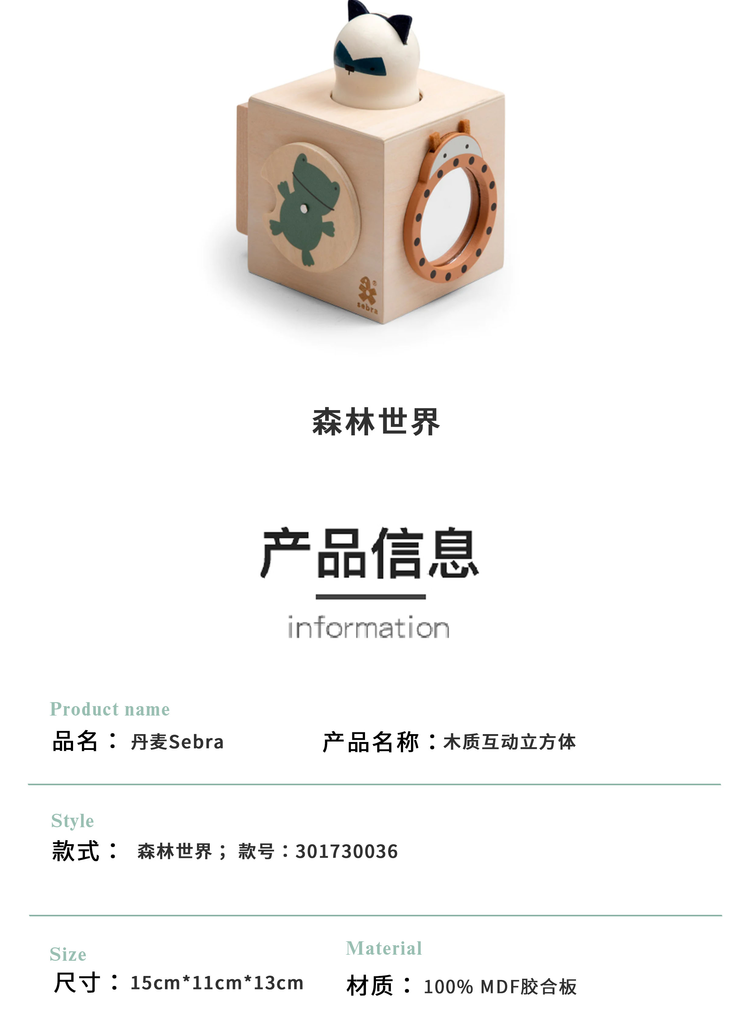 丹麦Sebra 木质活动立方体 婴幼儿启蒙益智玩具 10月+