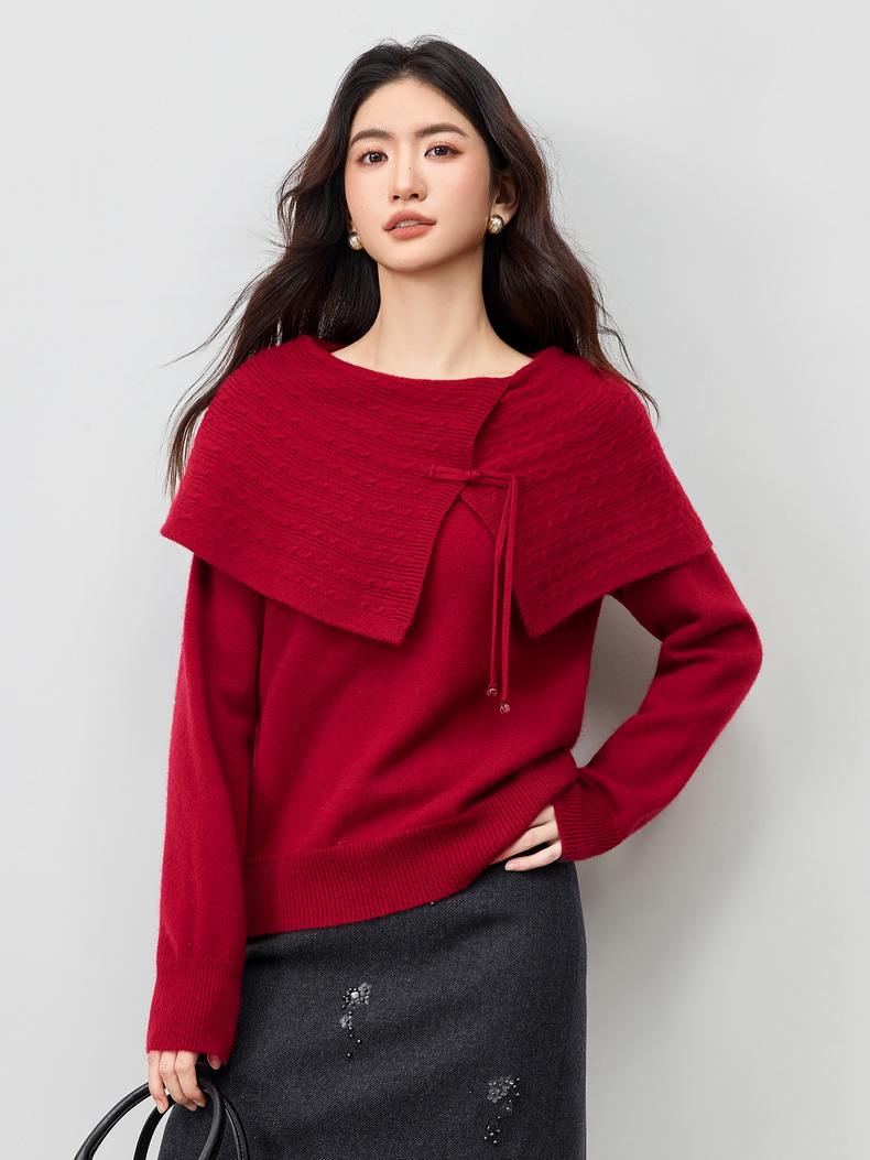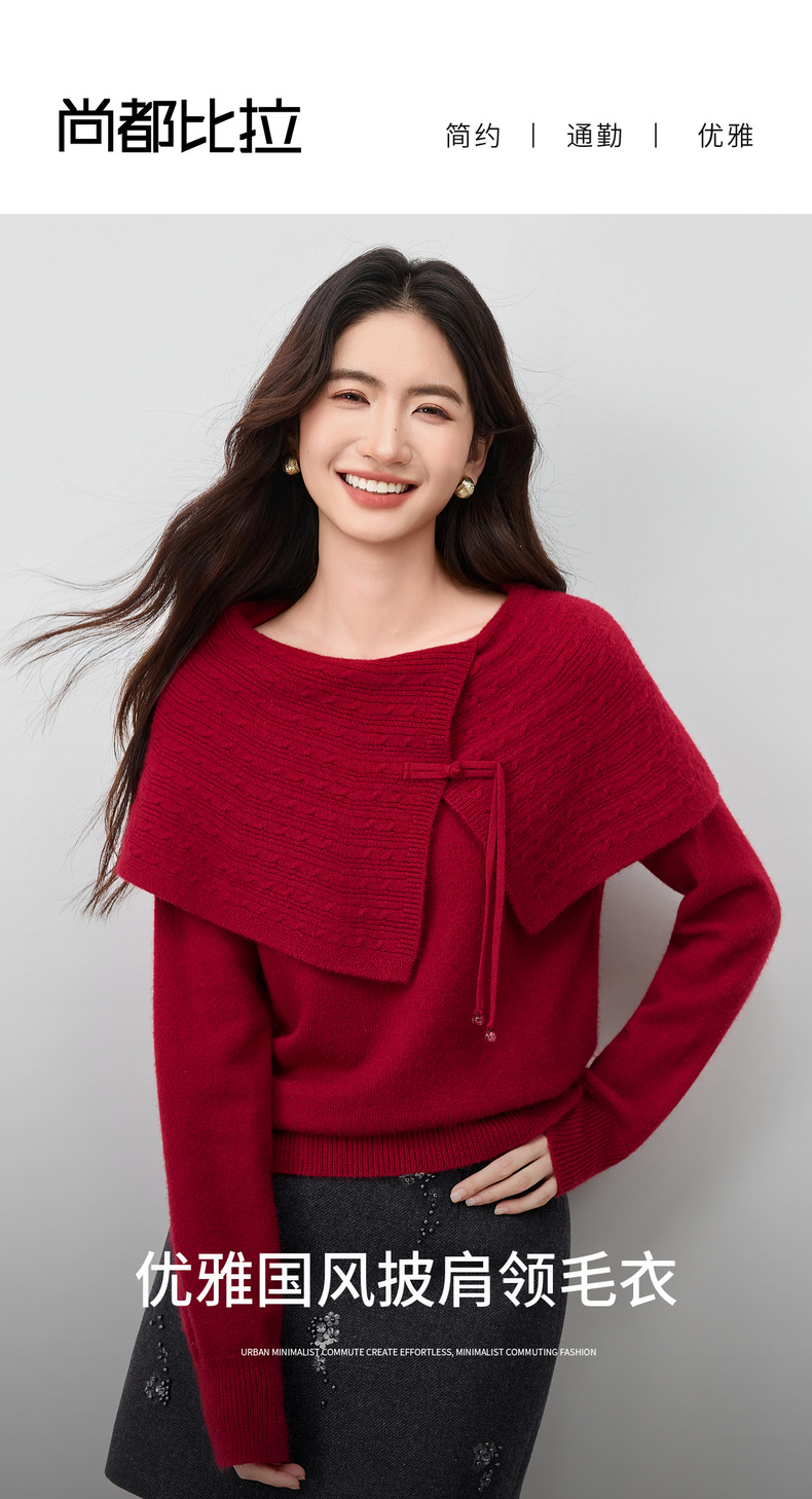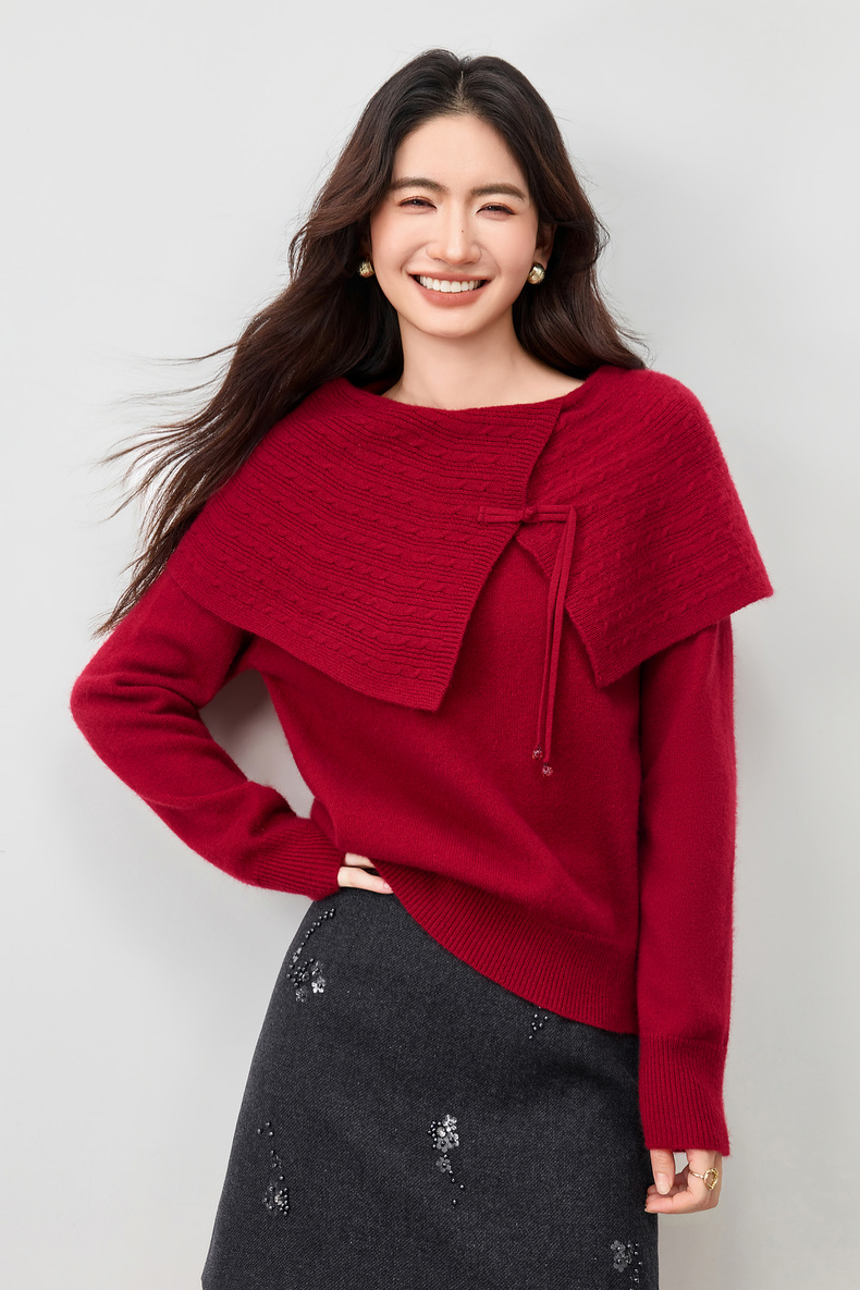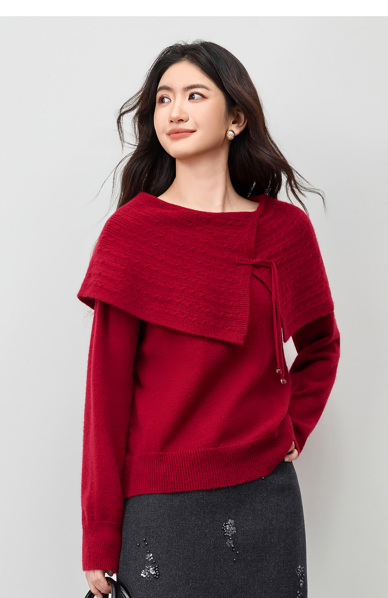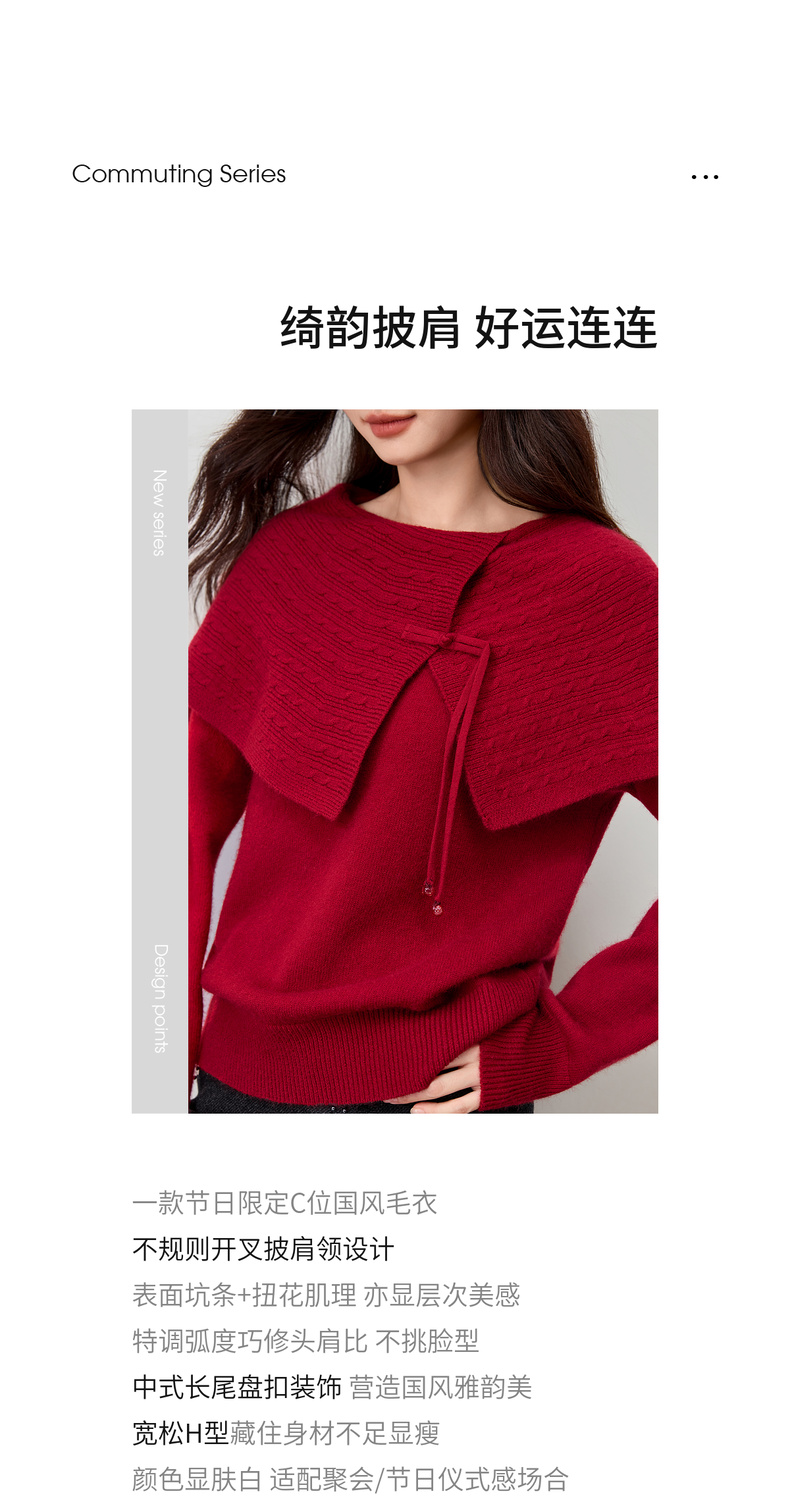 【内购】【披肩领】优雅本命年穿搭国风长尾盘扣宽松含绵羊毛弹力厚毛衣-W54EE4040