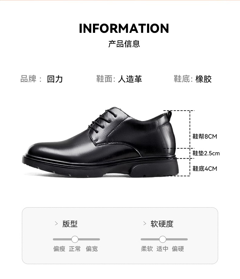 回力商务正装皮鞋男款2025春秋新款增高结婚黑色英伦百搭休闲男鞋