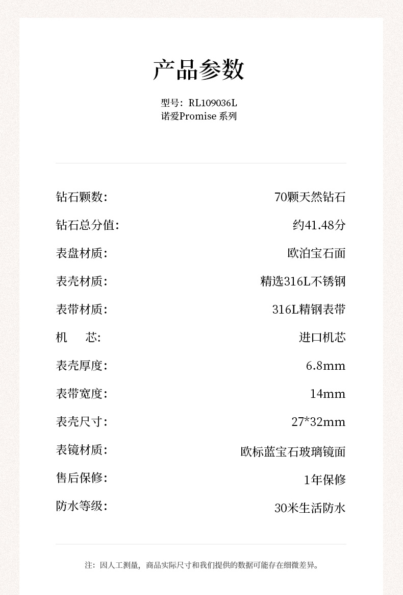 【ROROLOVE】诺爱Promise系列 天然钻石腕表 天然钻石手表女士新款轻奢气质钢带女表腕表(70颗钻石)
