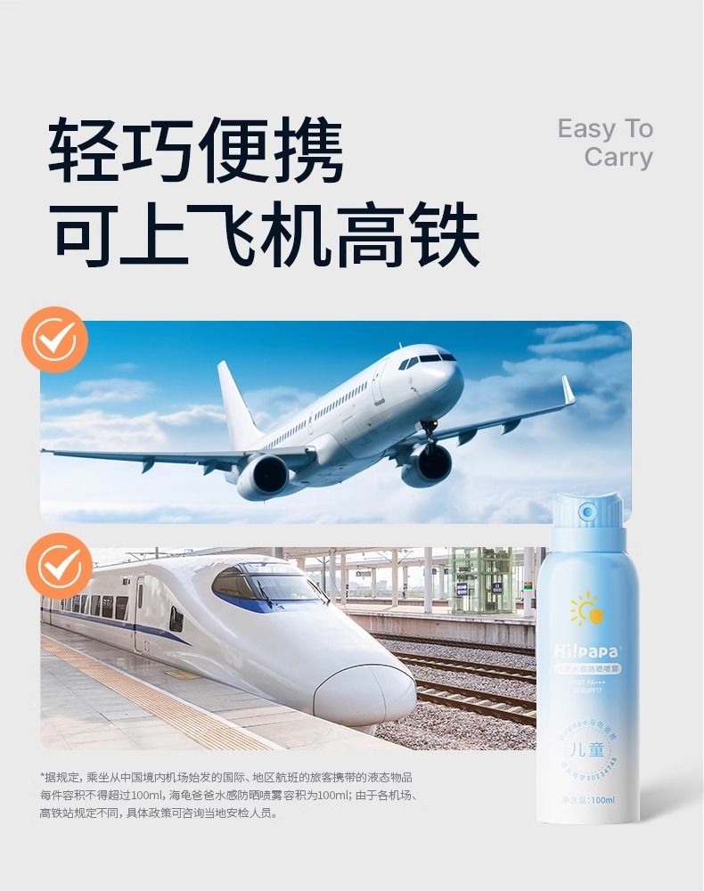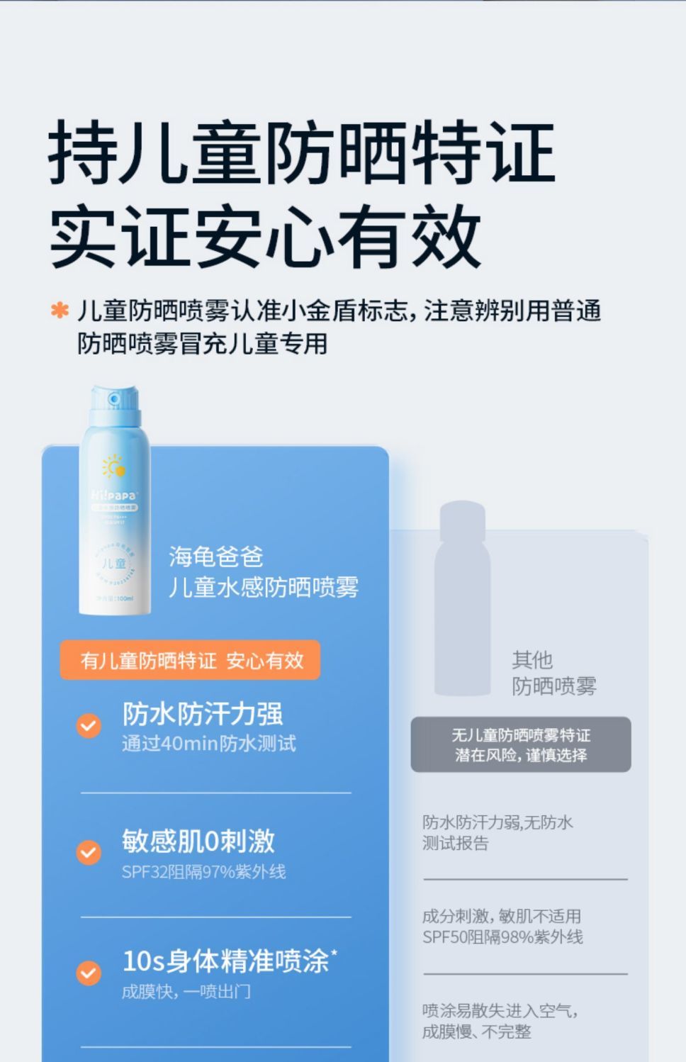 420【清仓】海龟爸爸儿童防晒喷雾防水防汗青少年军训专用隔离防紫外线夏100ml