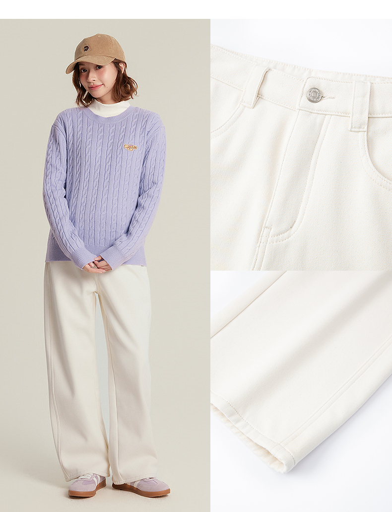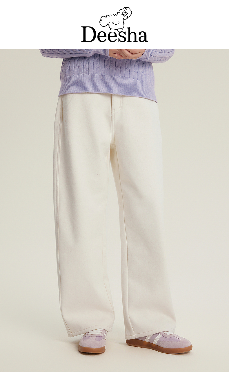 笛莎Deesha青少年女童裤子2025冬季女童加绒显瘦高腰老爹裤