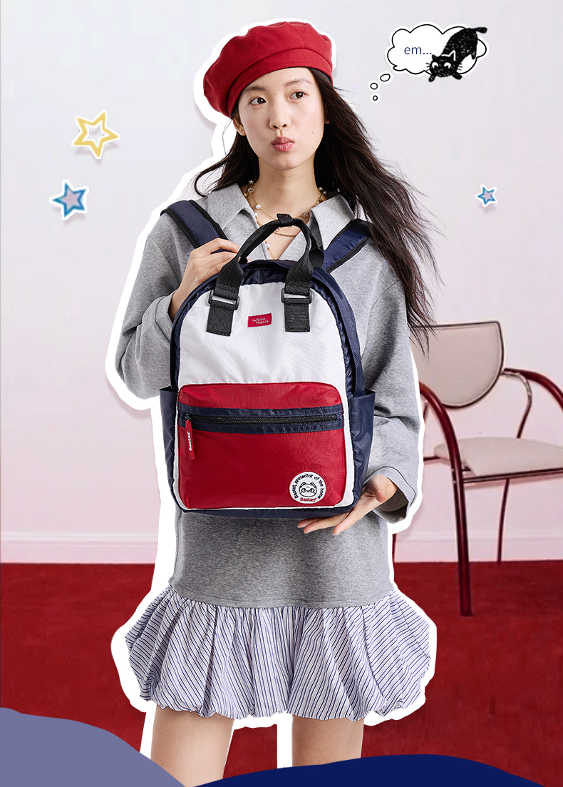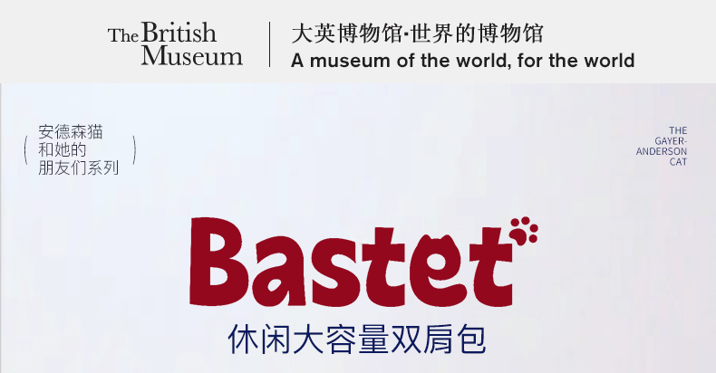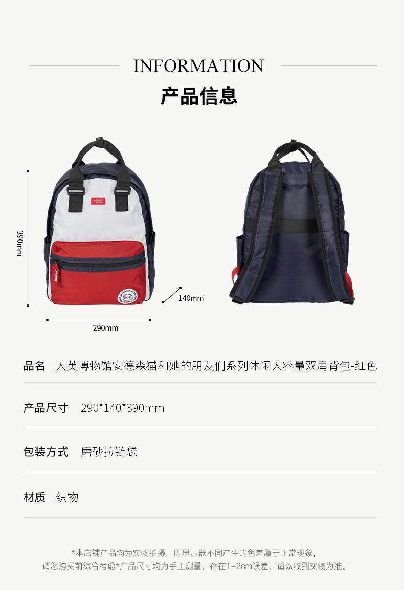 大英博物馆 盖亚·安德森猫和她的朋友们系列 休闲大容量书包双肩背包 红色