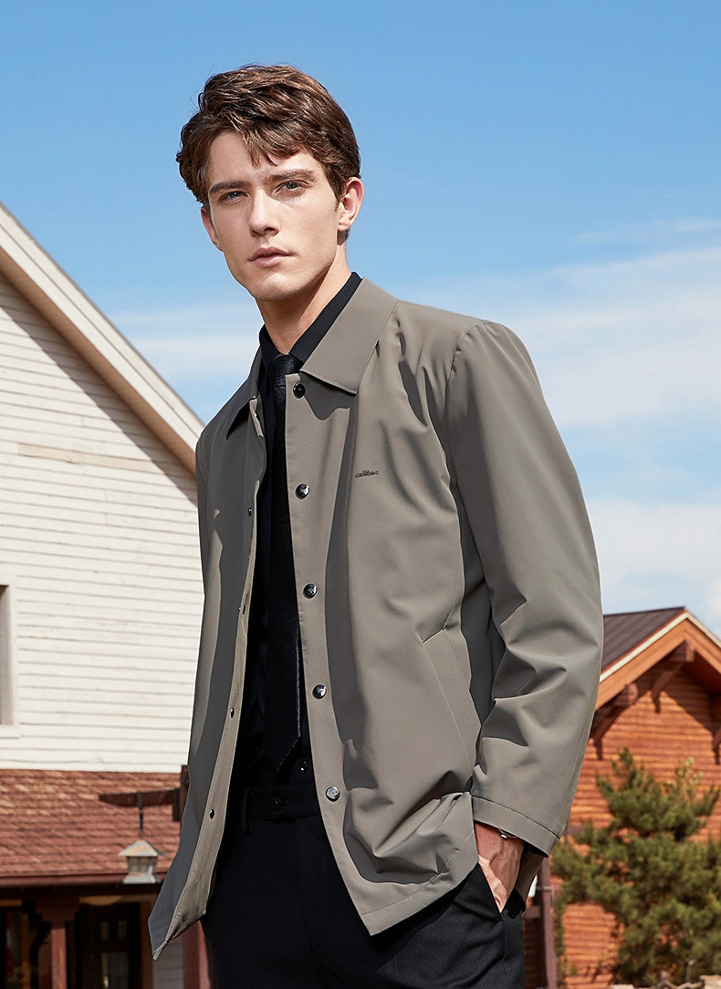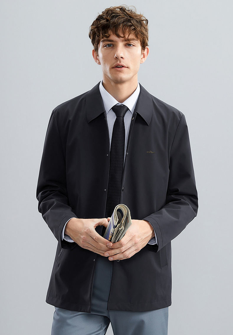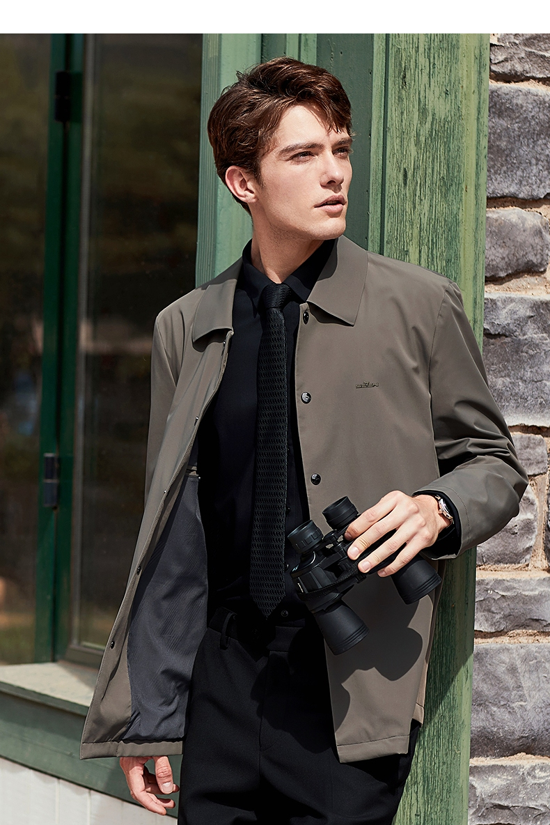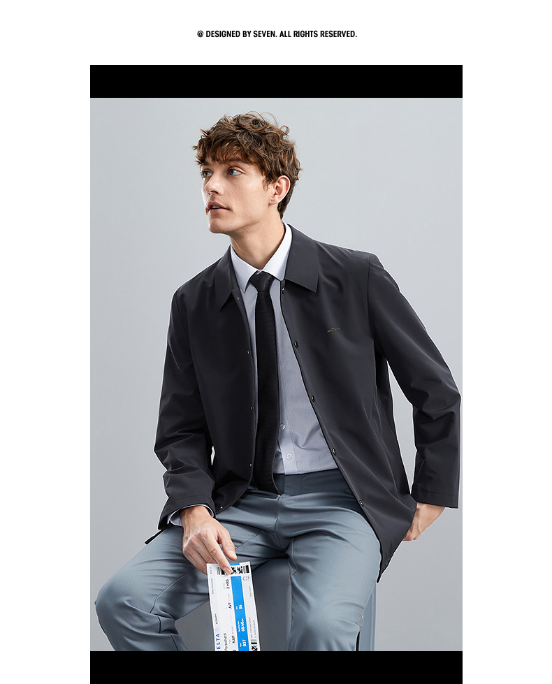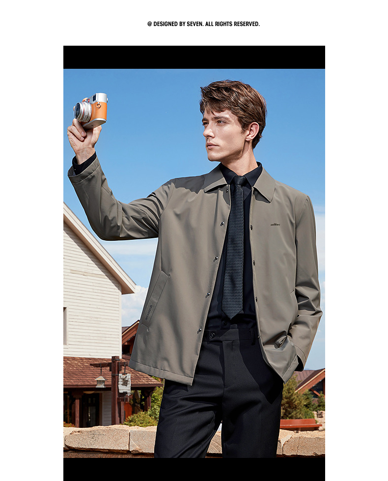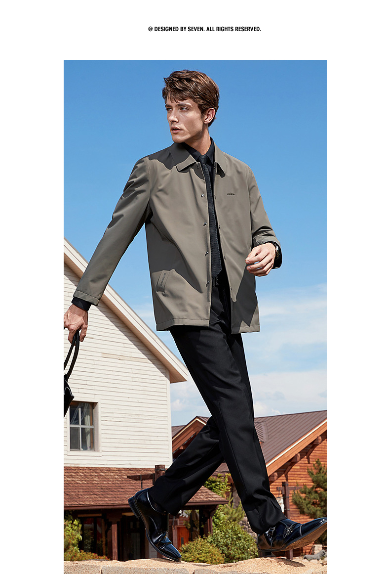 柒牌风衣外套男秋冬新款商务休闲中青年无缝翻领男士防风夹克 125K70090