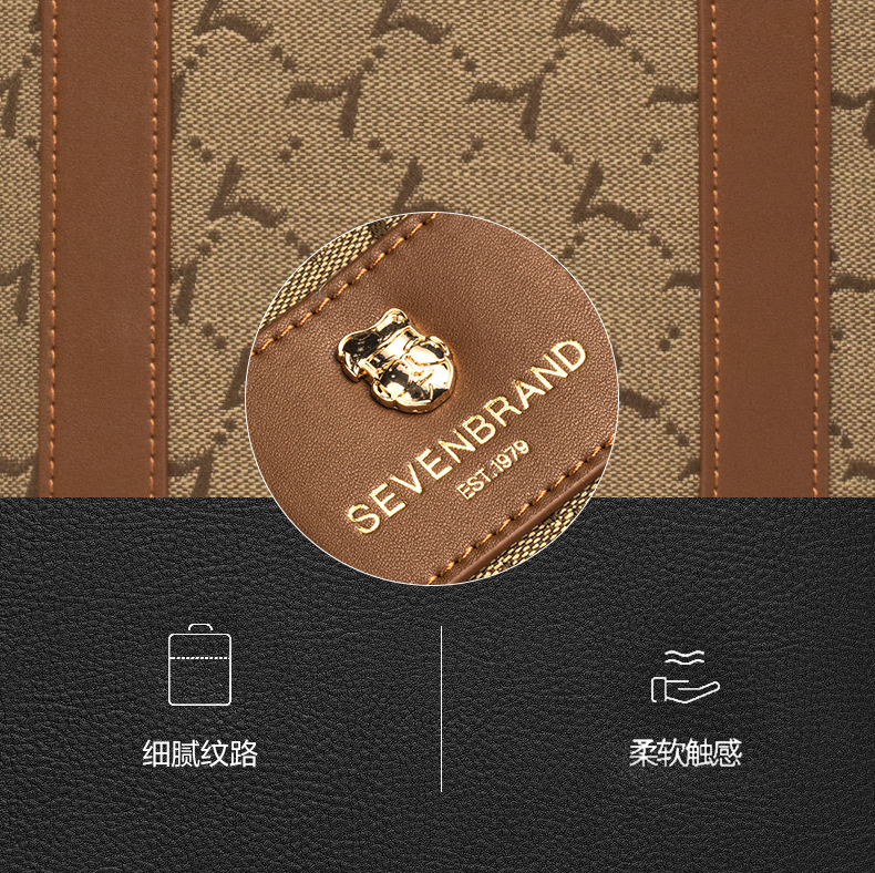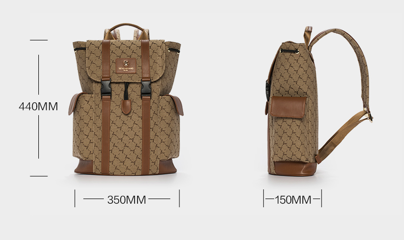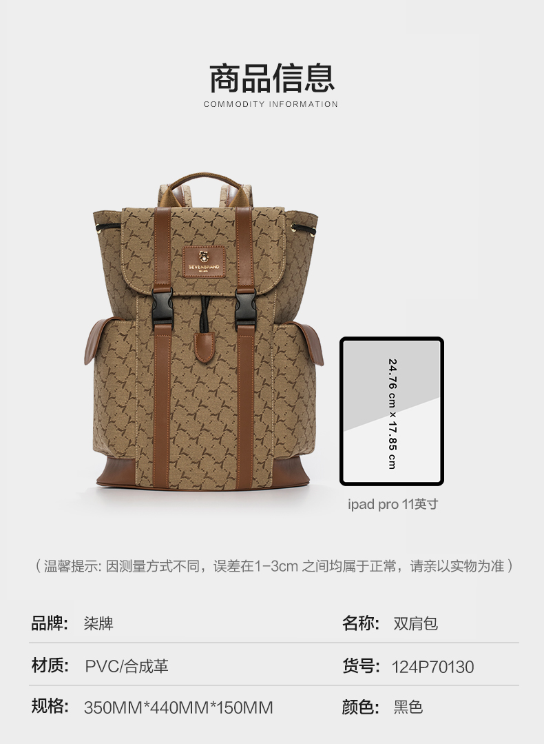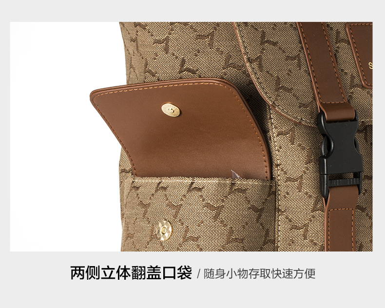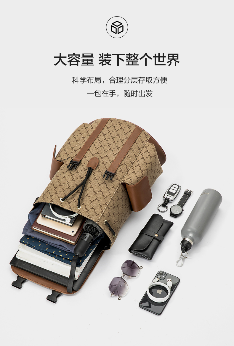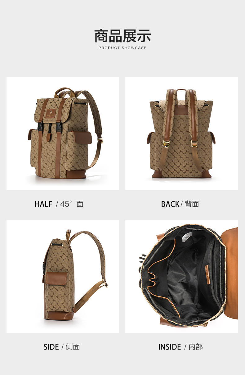 柒牌男包年新款商务通勤复古时尚休闲百搭卡其色插扣双肩背包 124P70120