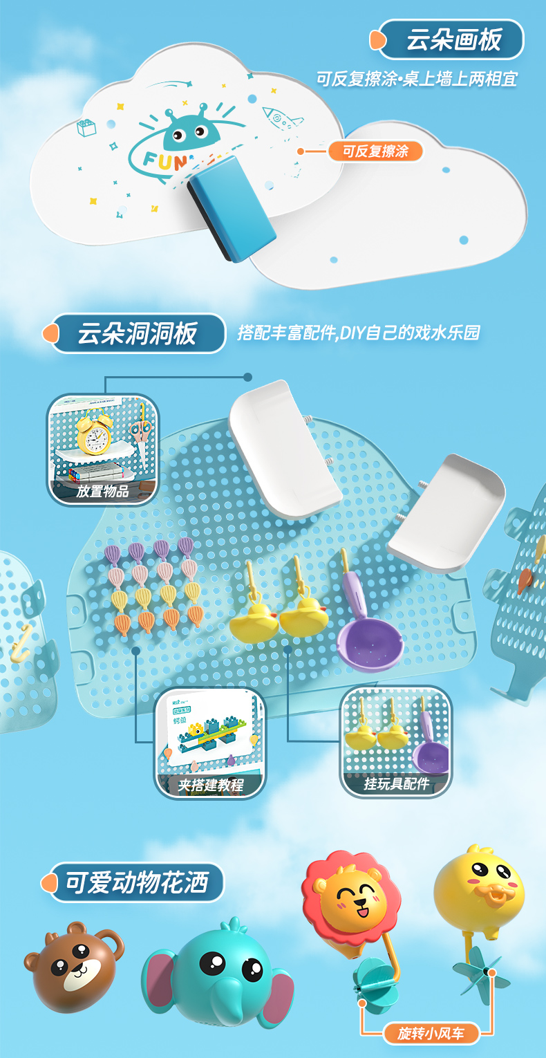 【23年】欢乐客 夏季清凉套餐动物花洒戏水桶套装+彩虹滑梯戏水桶套装 儿童洗澡玩水玩具花洒宝宝男女孩浴室沐浴