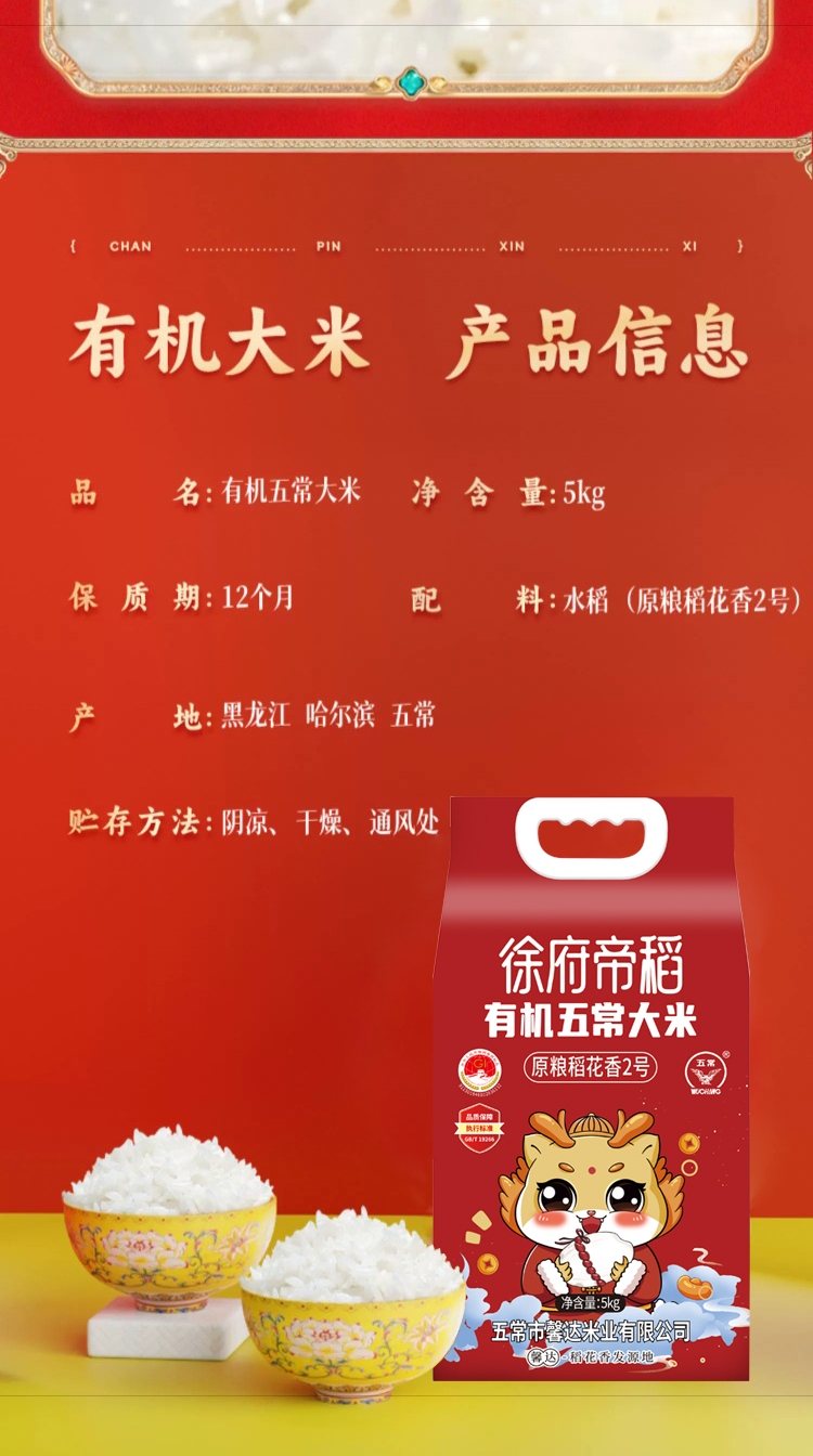 【品名/规格】【徐府帝稻】有机五常大米 原粮稻花香2号(5kg袋装,5kg礼盒装(内含米砖5个)下单后不支持退款,将收取拦截费30元/件)