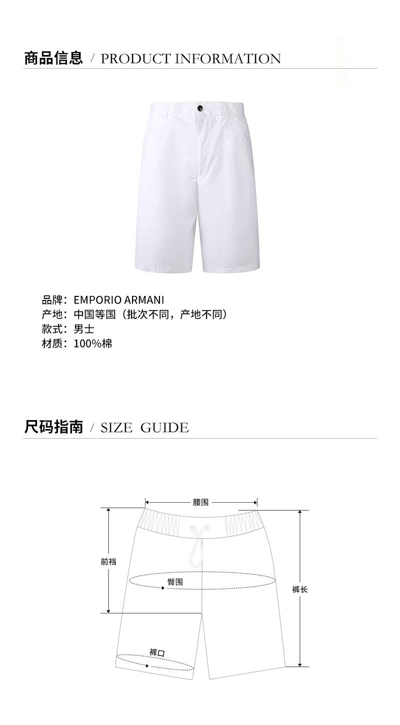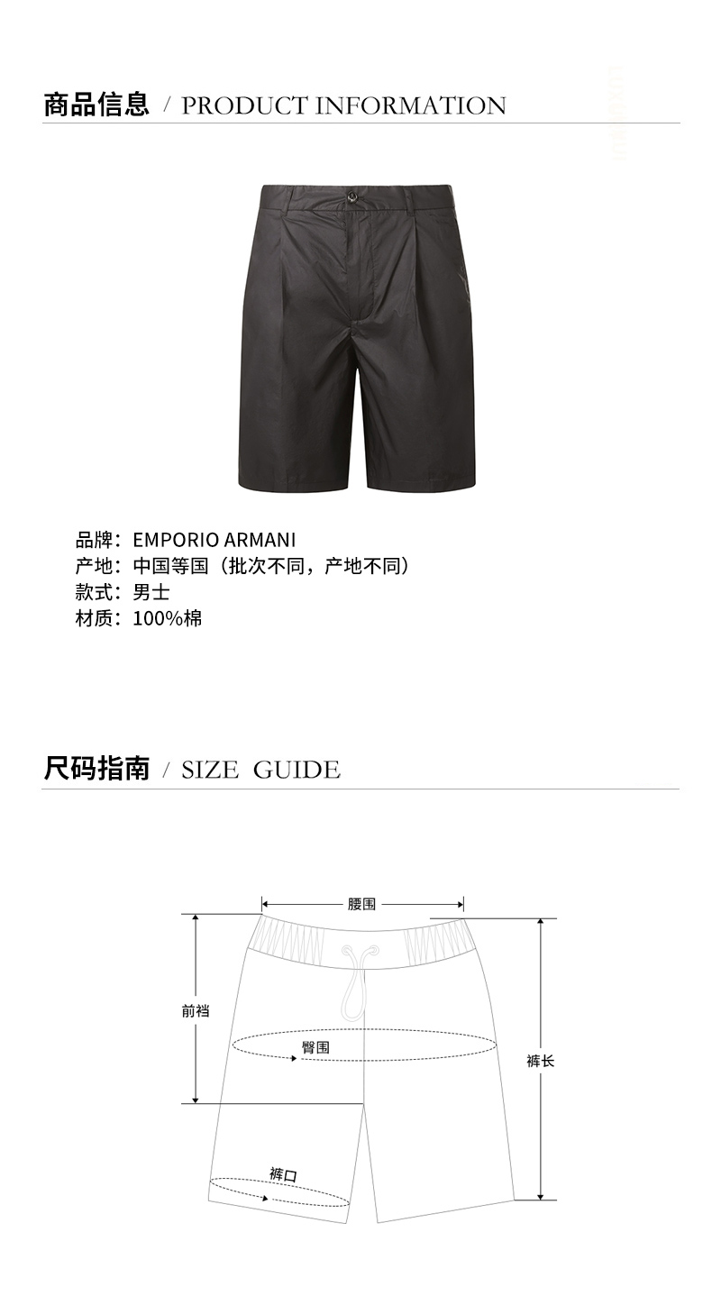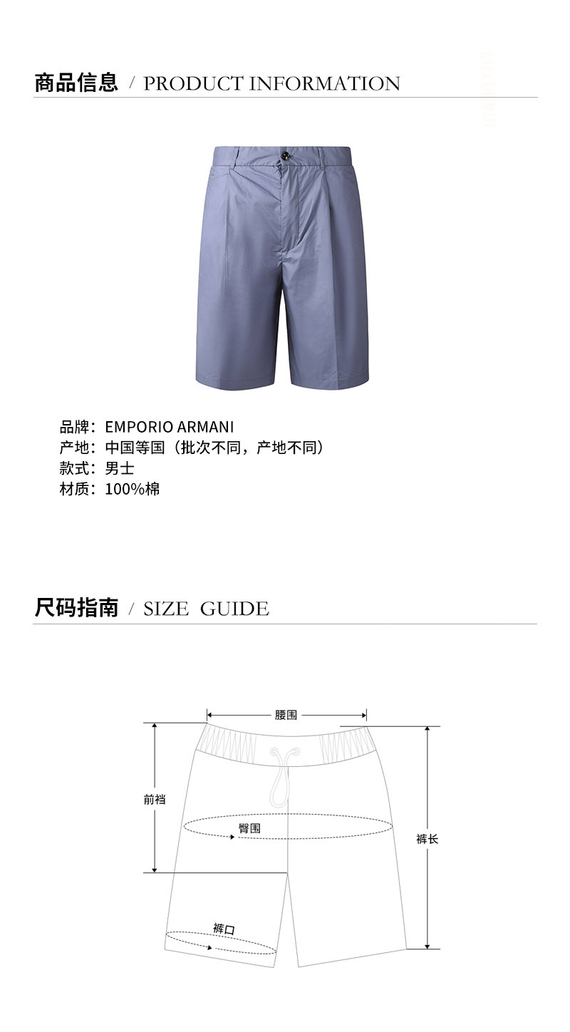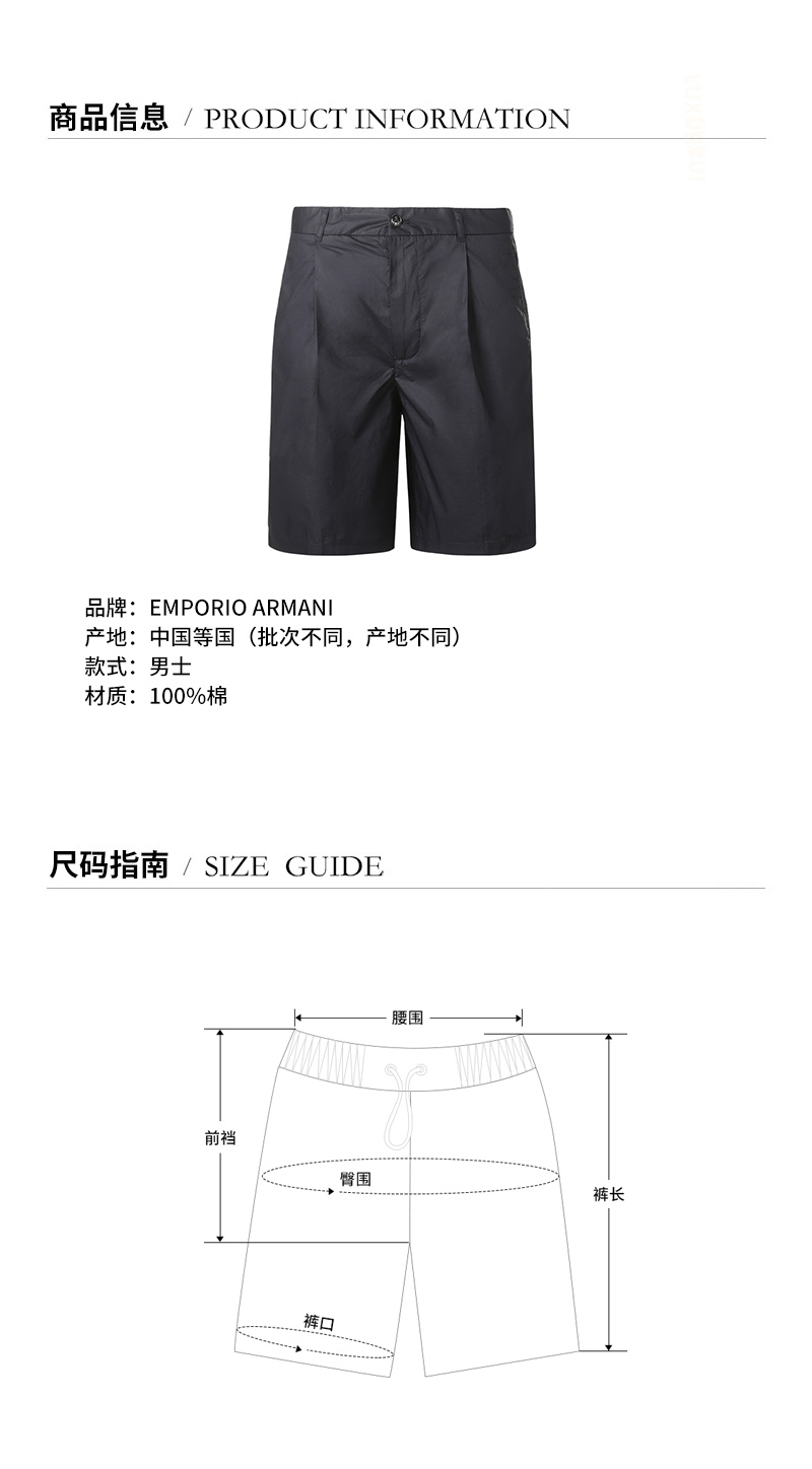 Emporio Armani/安普里奥阿玛尼 男士短裤 男士棉质短裤 3K1PAG 1NWWZ