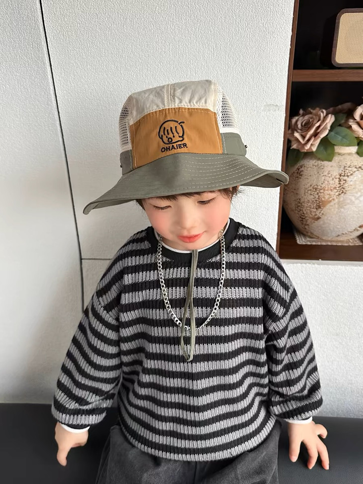 全方位呵护:蝶时舞儿童防晒渔夫帽 速干面料,让宝宝头部保持干爽舒适 透气设计,让宝贝头部自由呼吸。 拼色时尚,展现个性与活力,英文刺绣,增添精致细节‼️ 精致好看,有效防晒