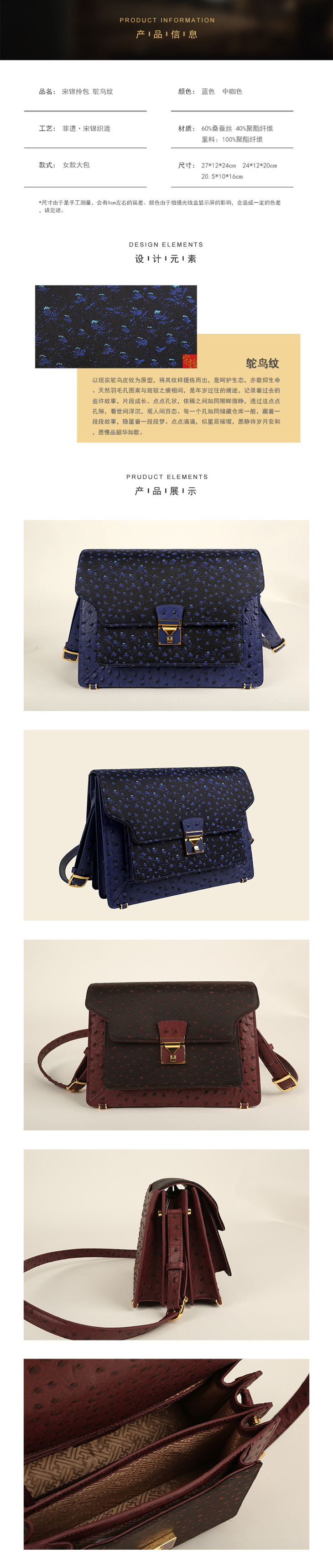 SAINTJOY/上久楷宋锦拎包 新品鸵鸟纹两色6款可选(蓝色中包无货)