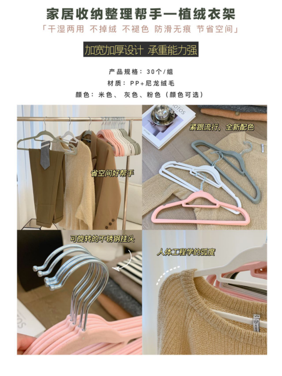 🌸【家居收纳整理帮手】sweet&coco植绒衣架 ✅不改造都能扩容,它够薄,😎换掉厚重的衣架,衣柜瞬间就扩容了