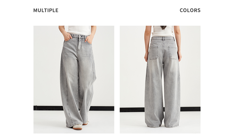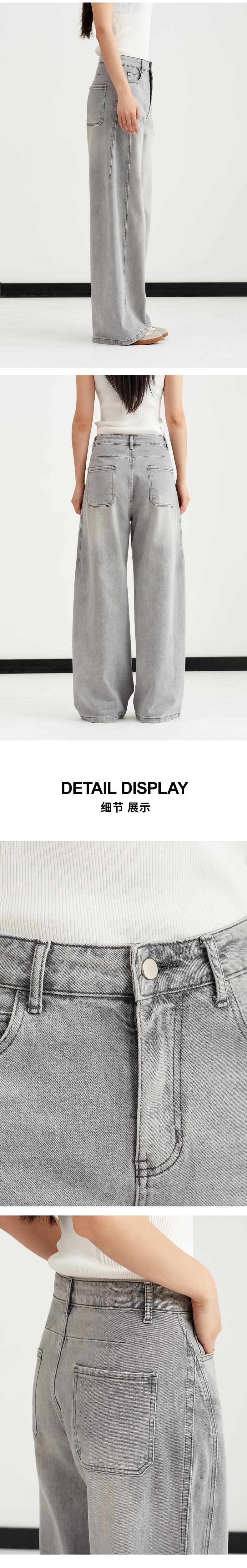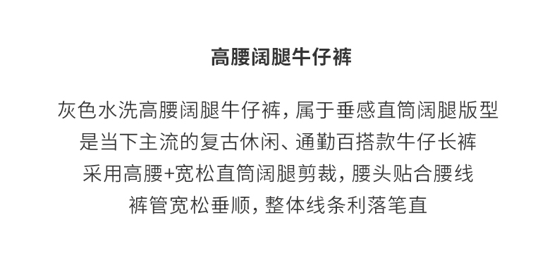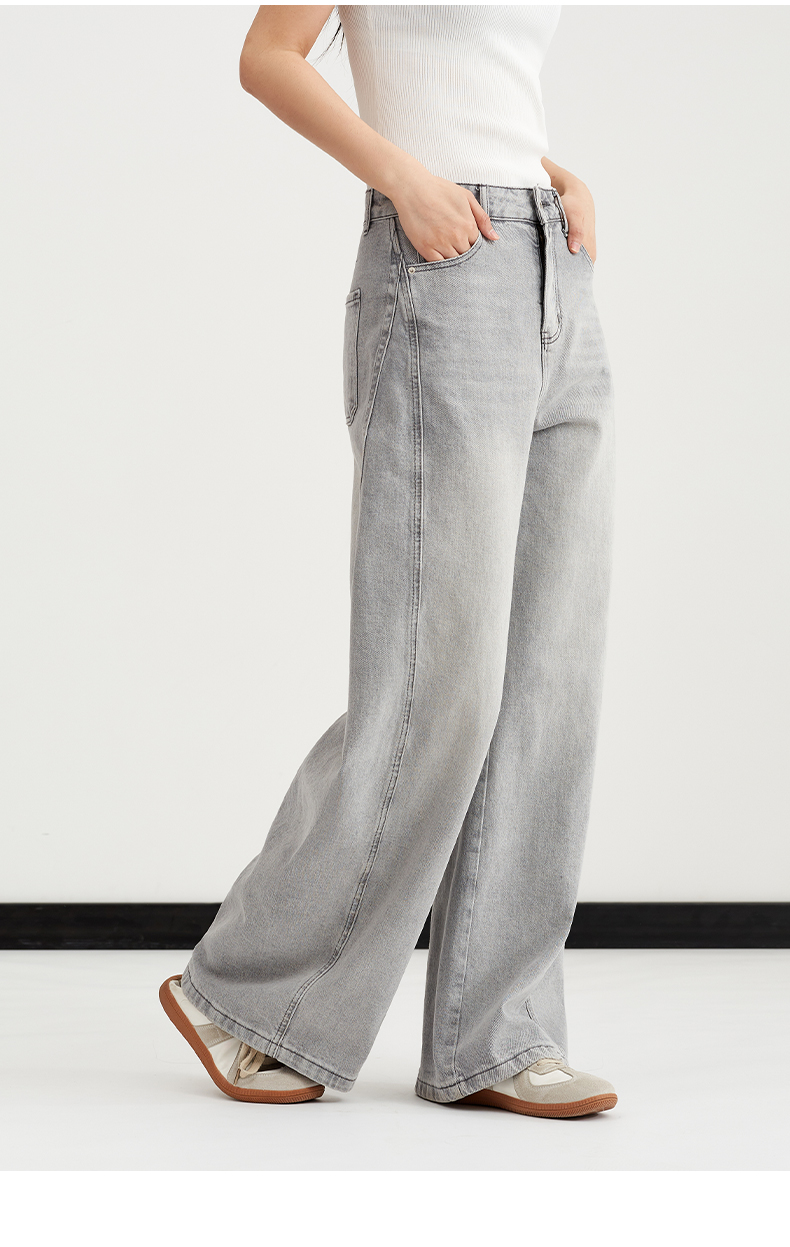【复古水洗】阿菁娜春季新款复古水洗牛仔裤高级灰调高腰阔腿垂坠显瘦F31C210003