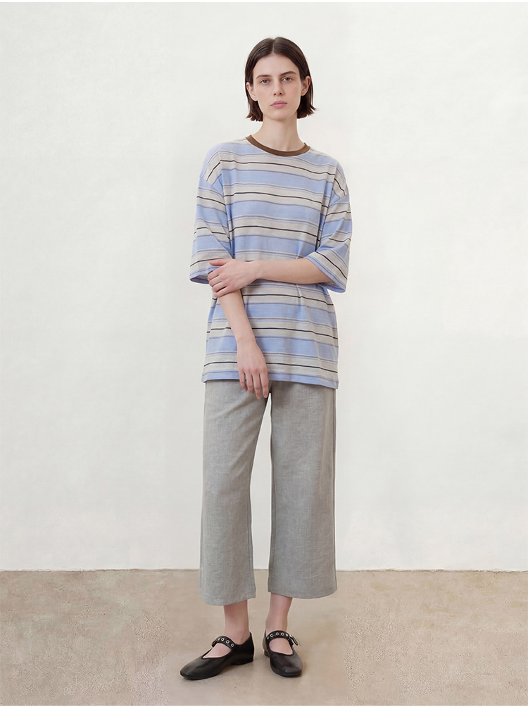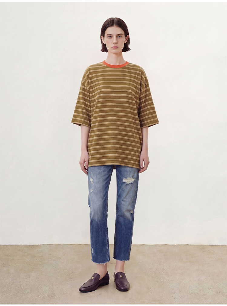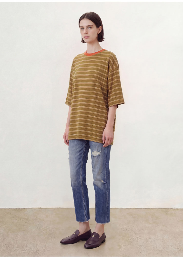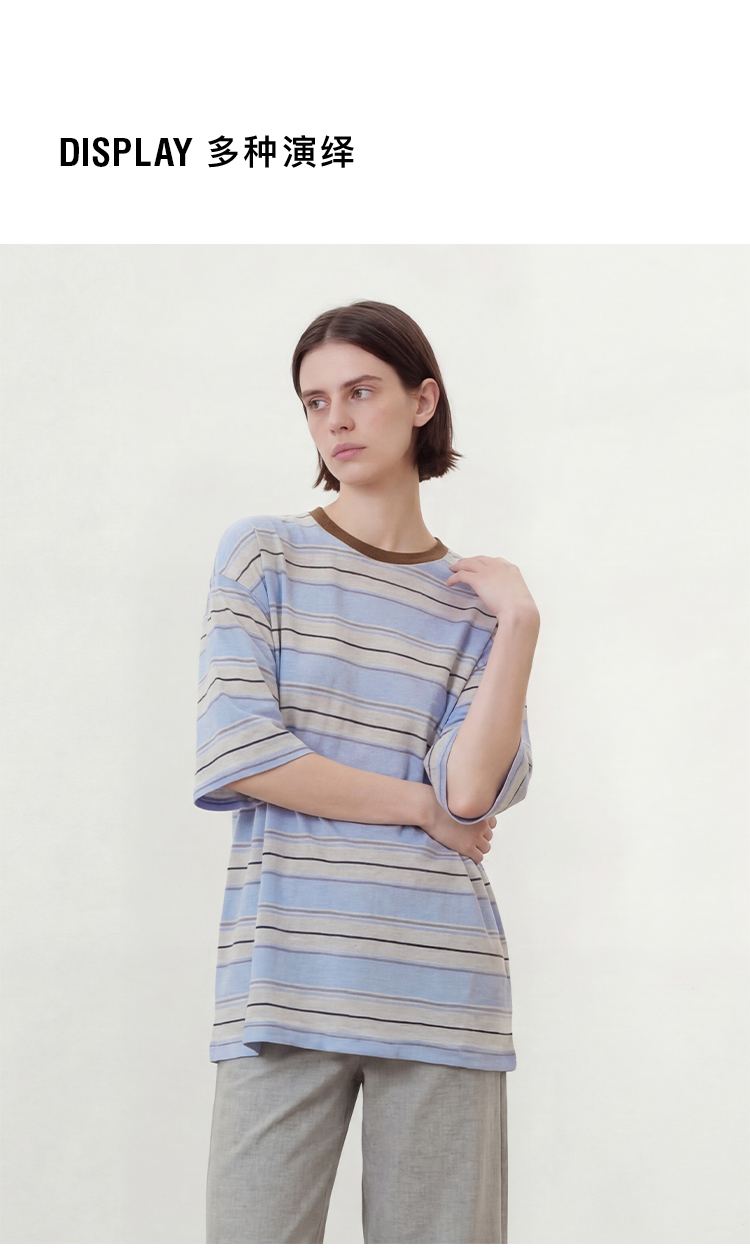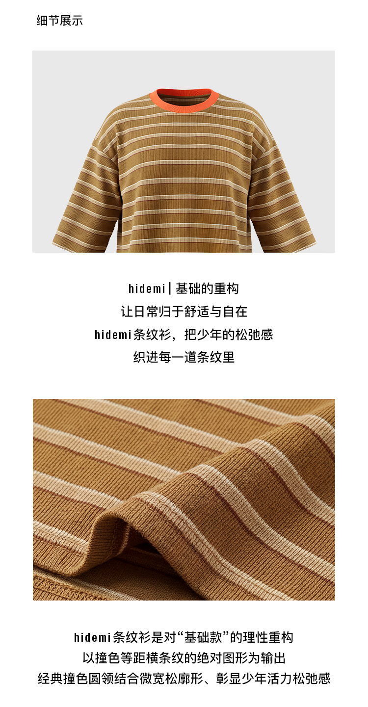 hidemi副线小h 撞色圆领条纹宽松休闲短袖T恤