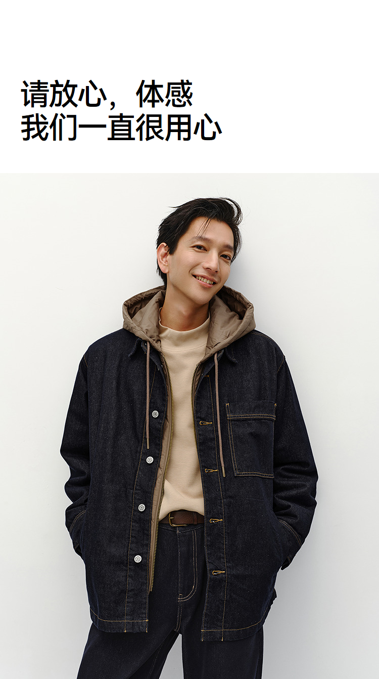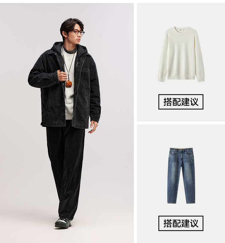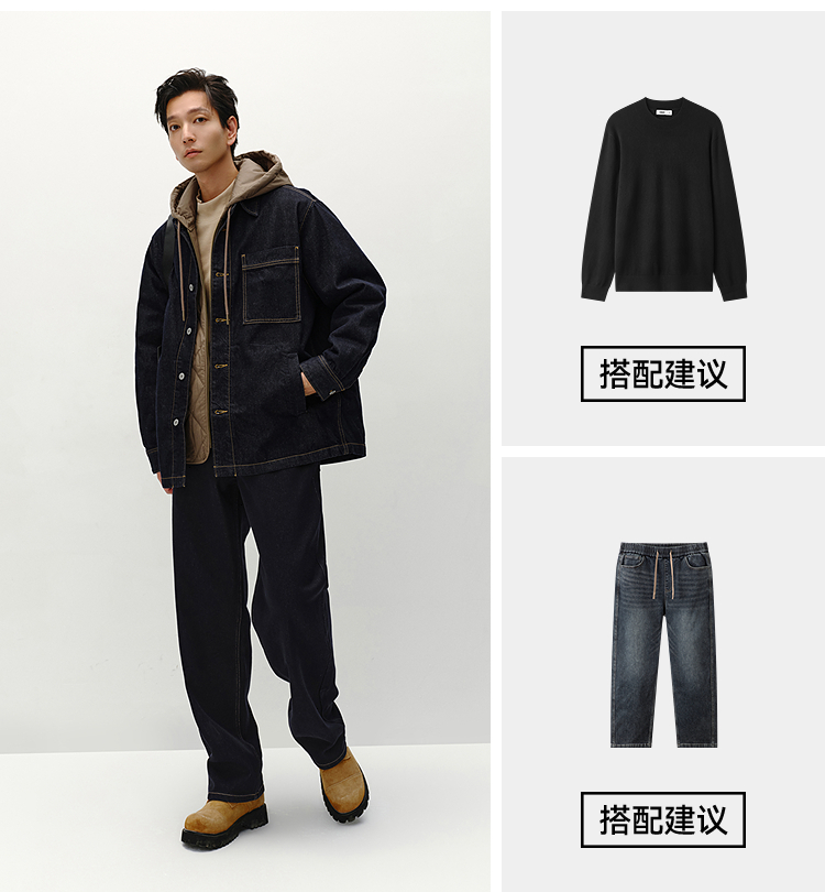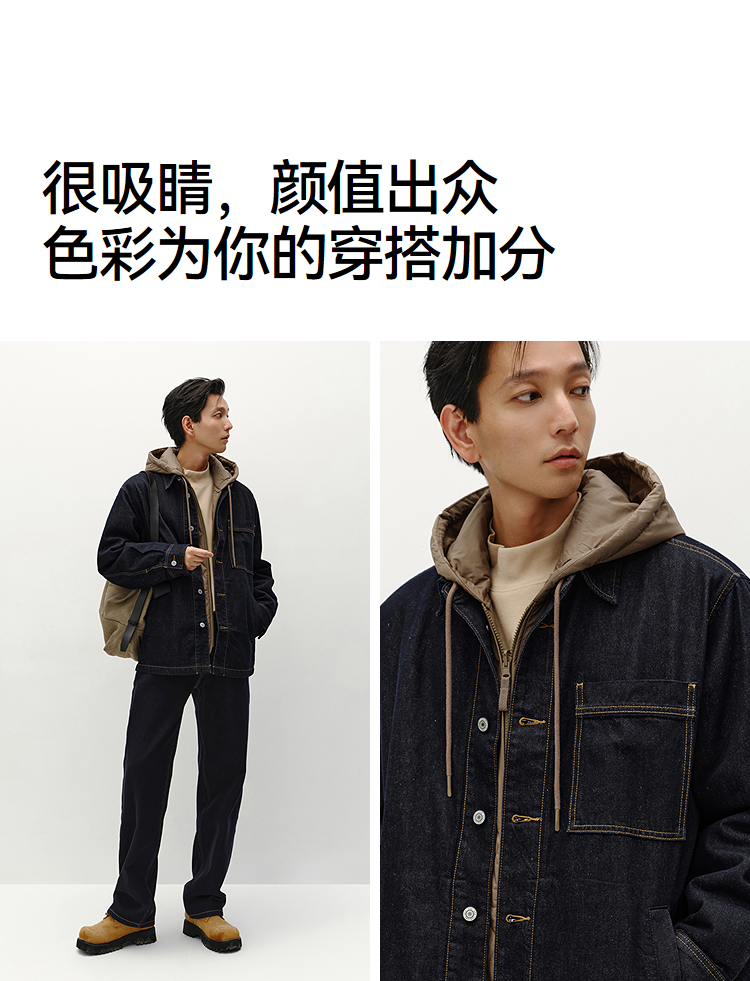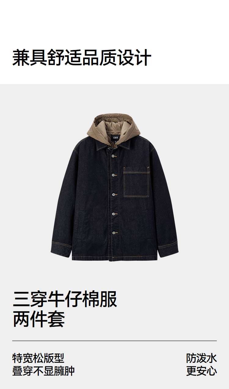 森马棉服男冬季防泼水薄款一衣三穿两件套oversize牛仔外套复古潮