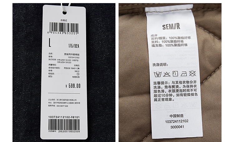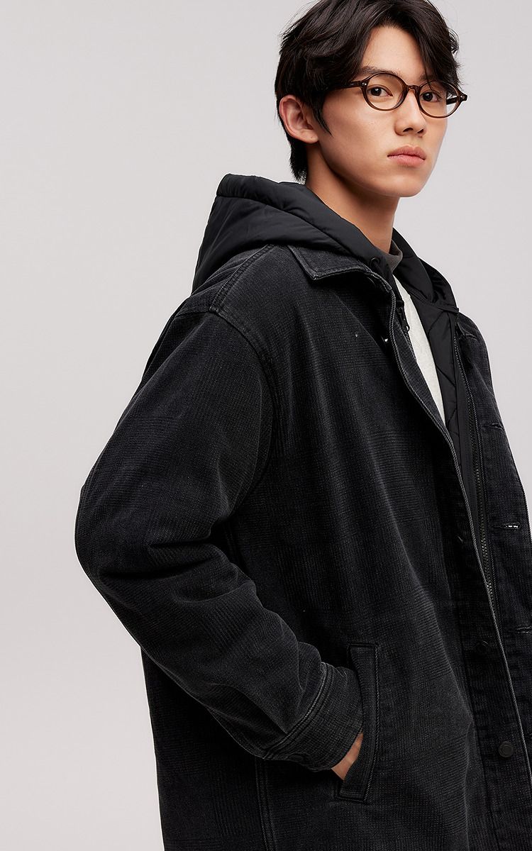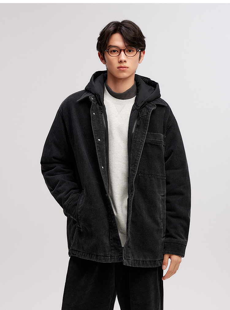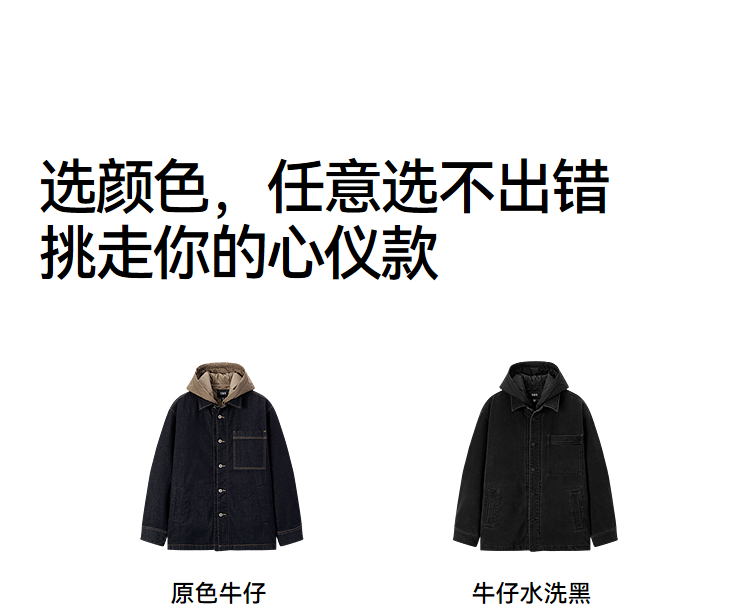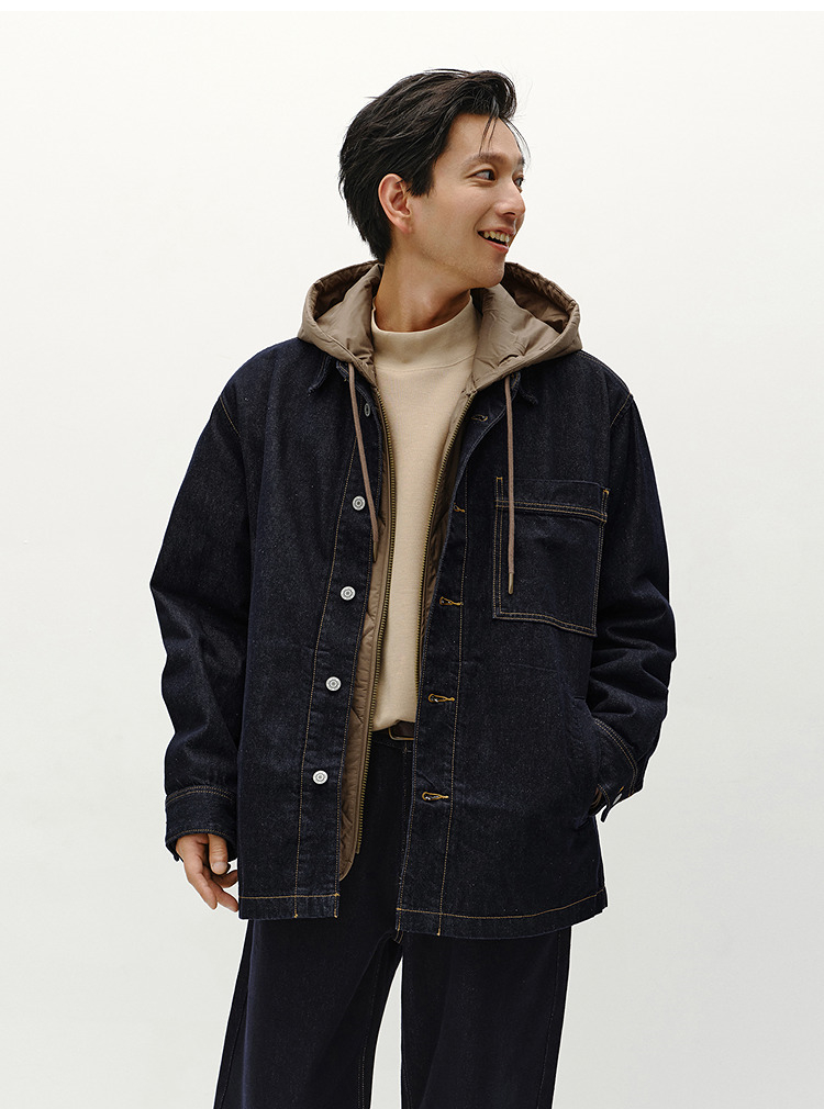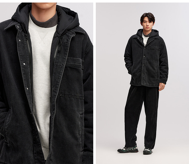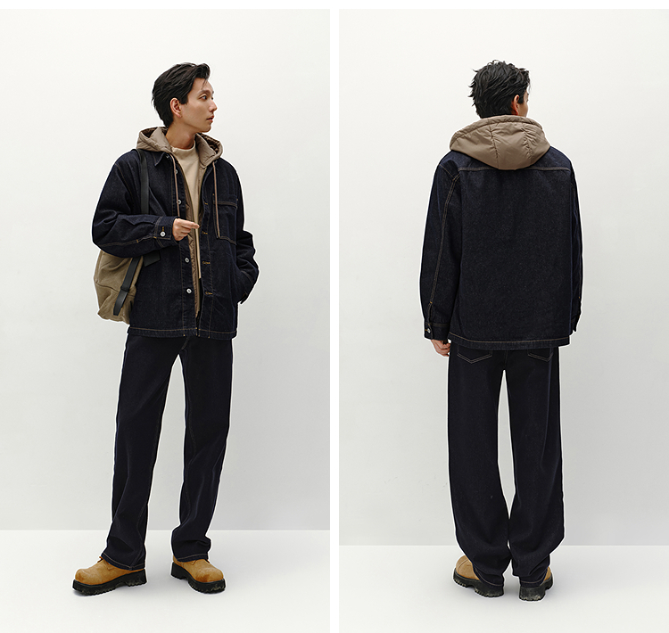森马棉服男冬季防泼水薄款一衣三穿两件套oversize牛仔外套复古潮