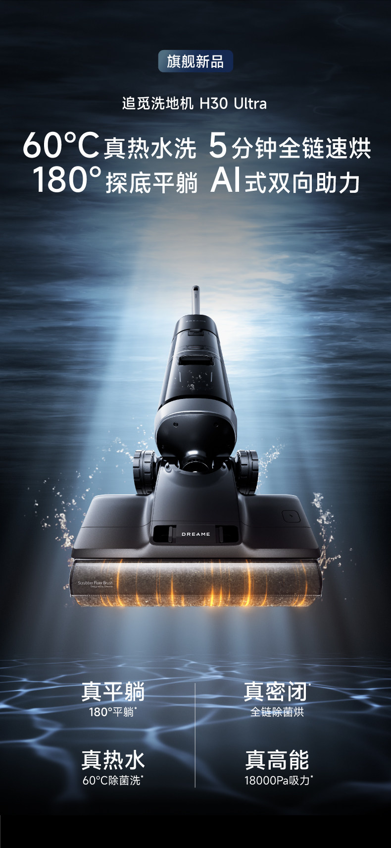 追觅H30 Ultra无线智能洗地机热水自清洁180°平躺热烘双助力吸尘吸拖扫一体机