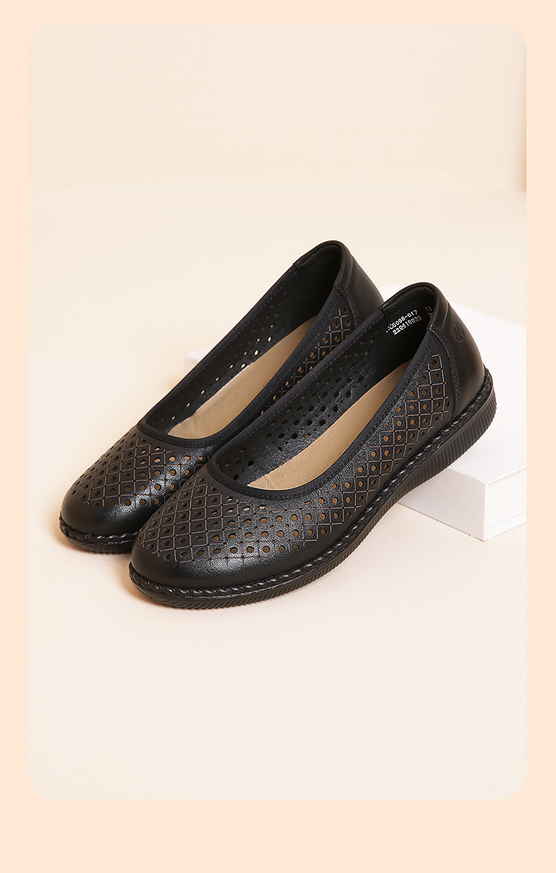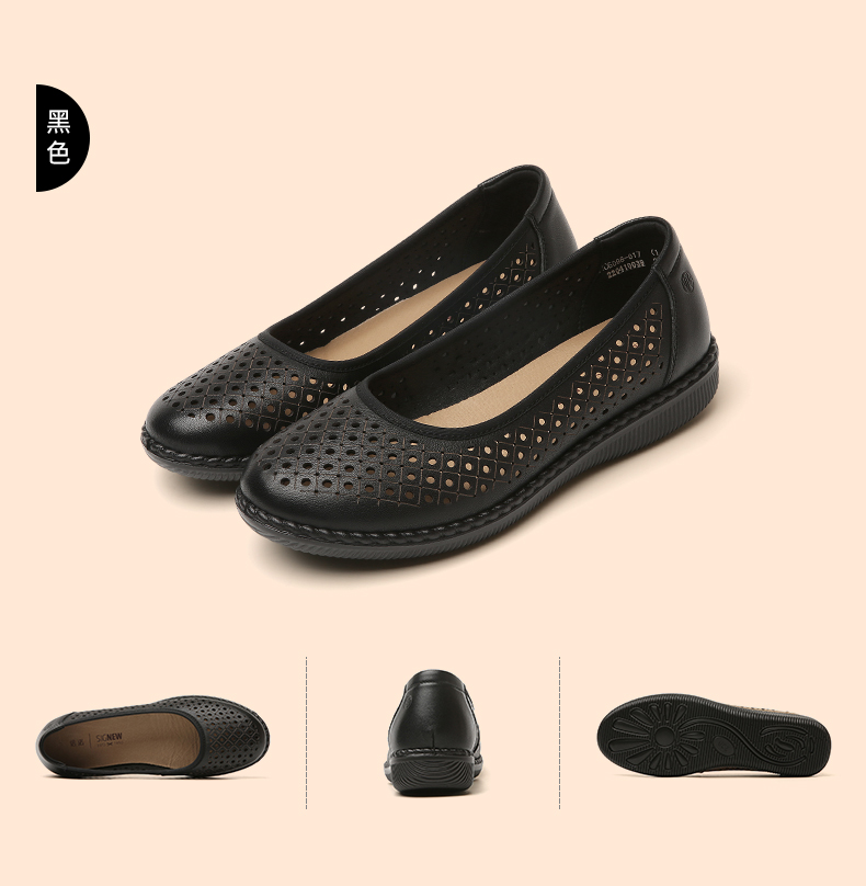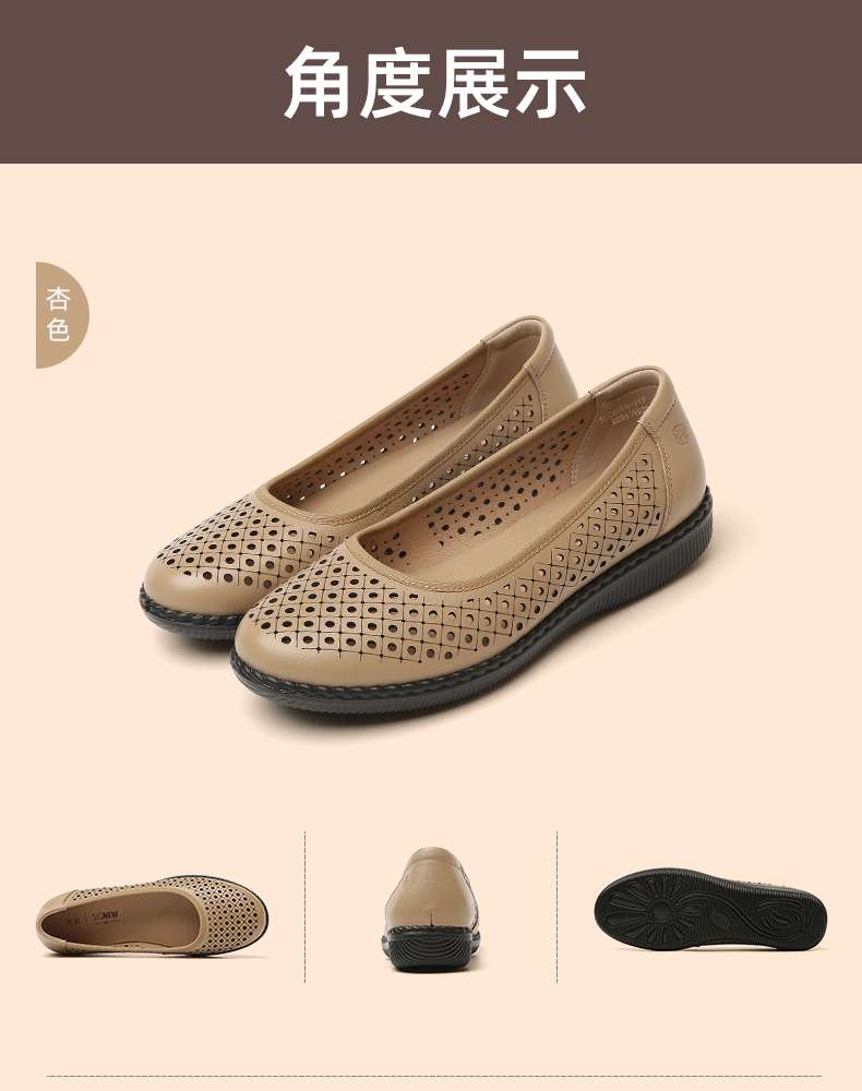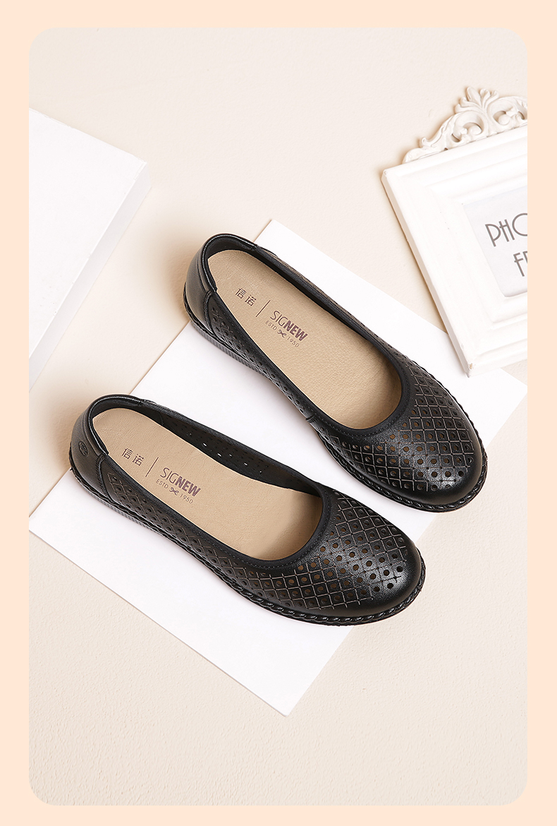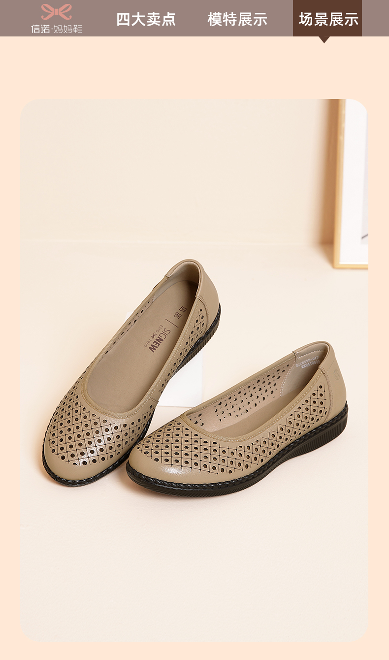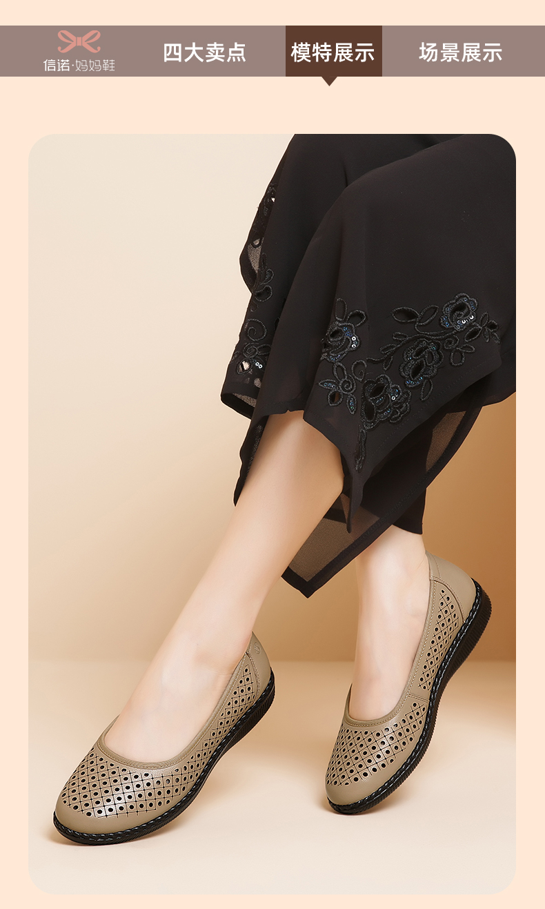 信诺真皮舒适女鞋妈妈凉鞋夏款软底防滑平底中老年人奶奶鞋凉皮鞋22C6098-017