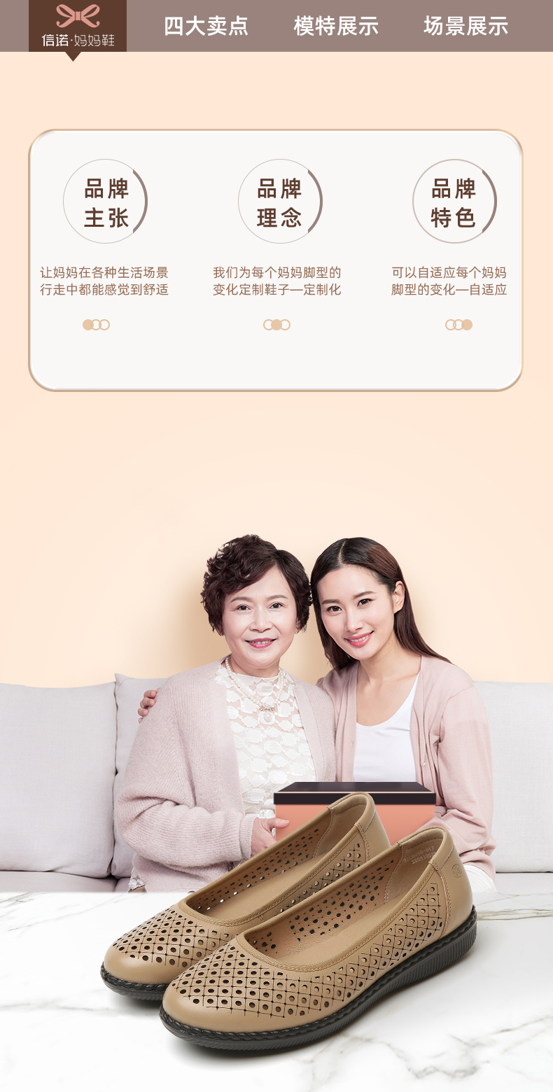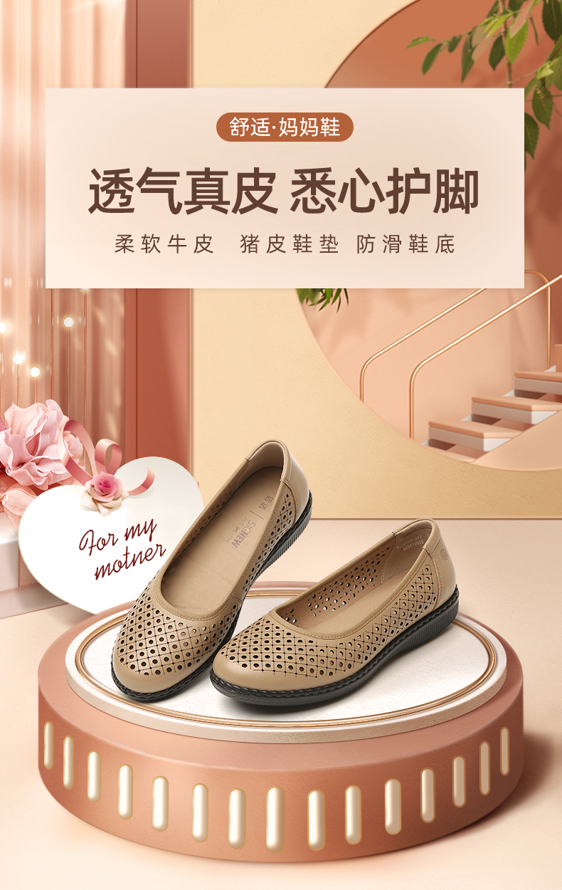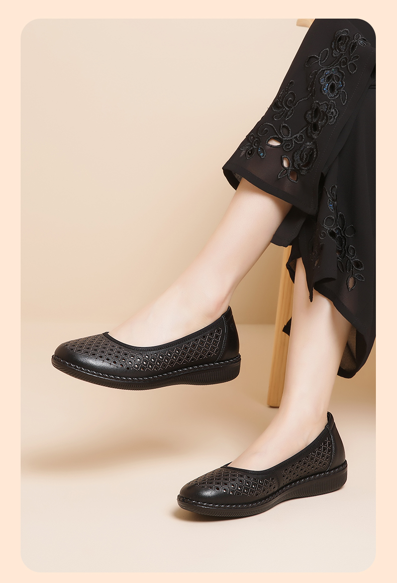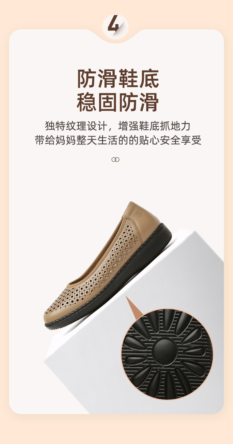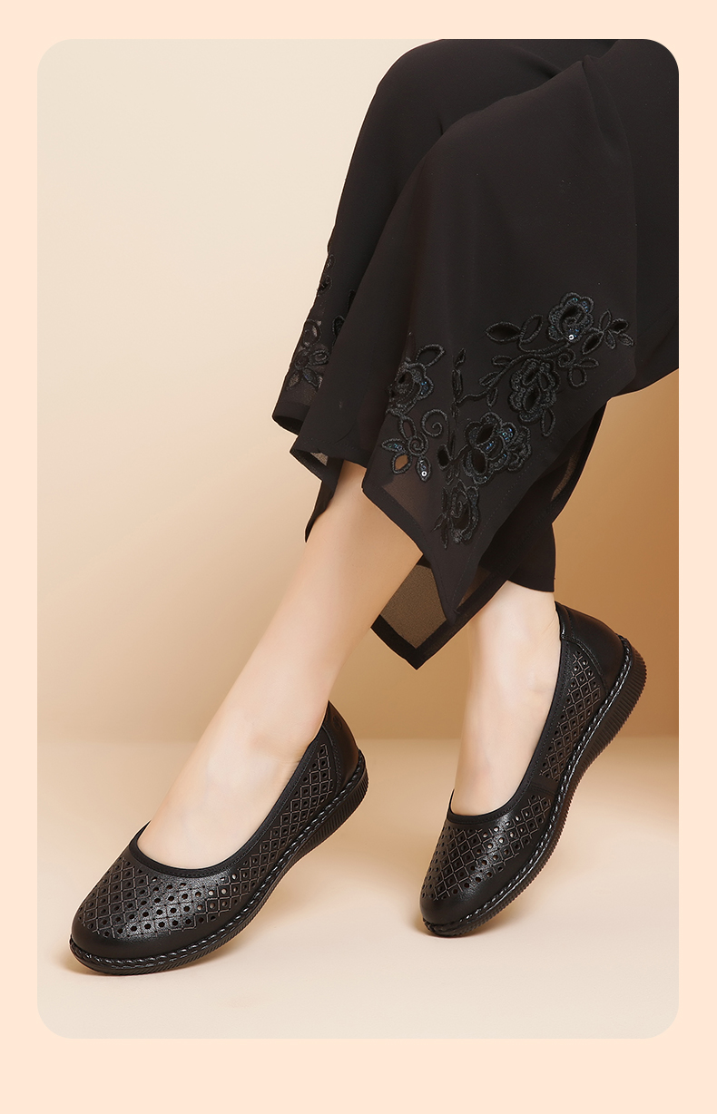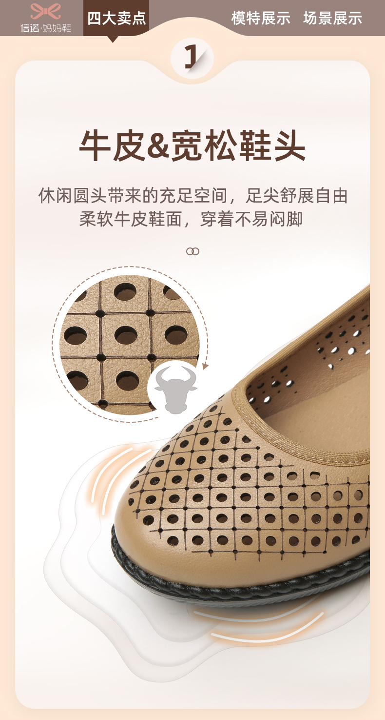信诺真皮舒适女鞋妈妈凉鞋夏款软底防滑平底中老年人奶奶鞋凉皮鞋22C6098-017