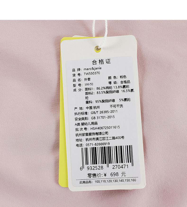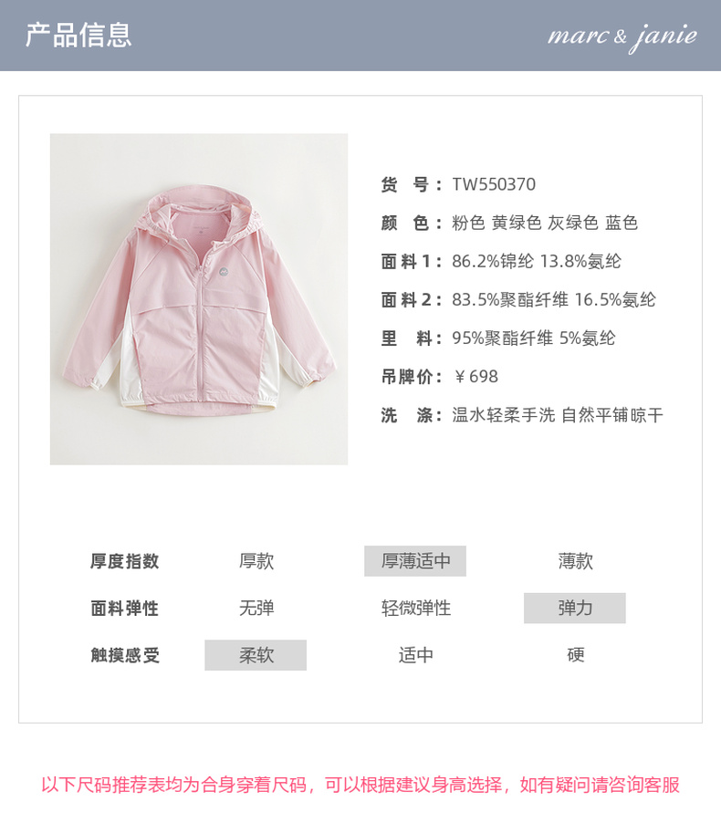 [速干]马克珍妮男女童高弹运动外套儿童夹克2025年春夏新款550370