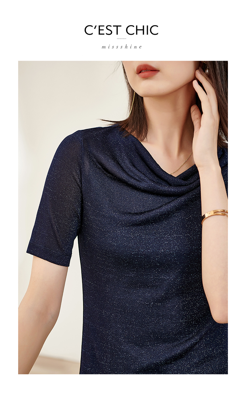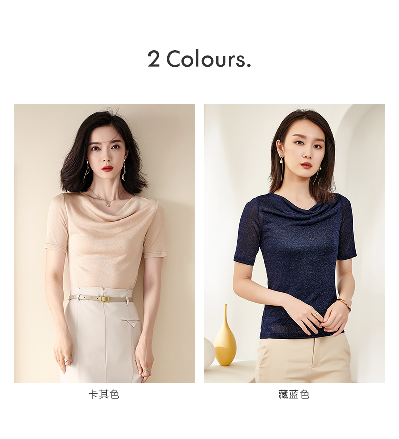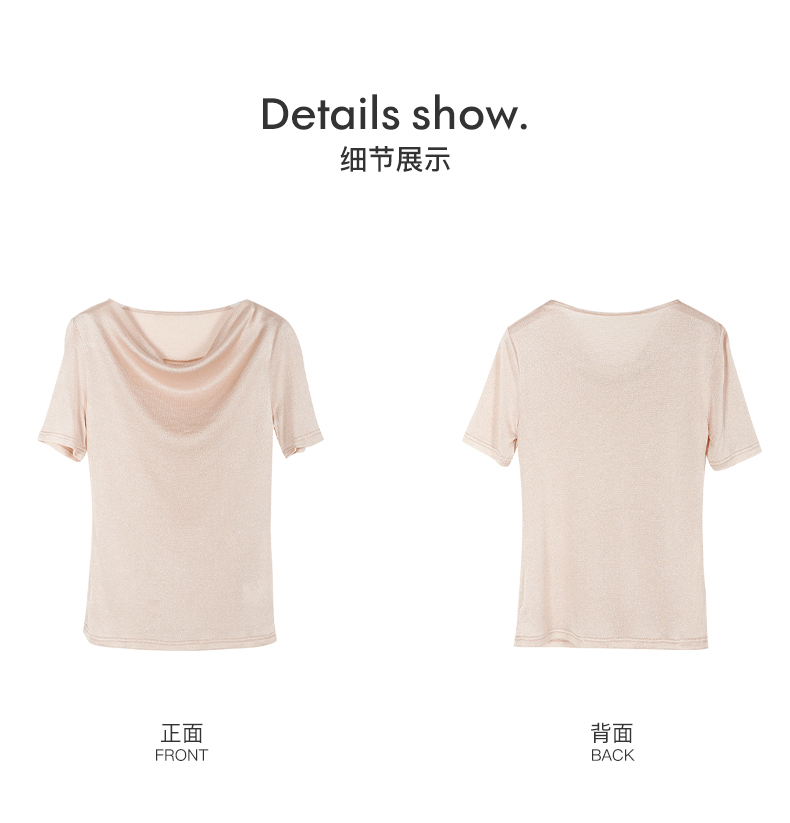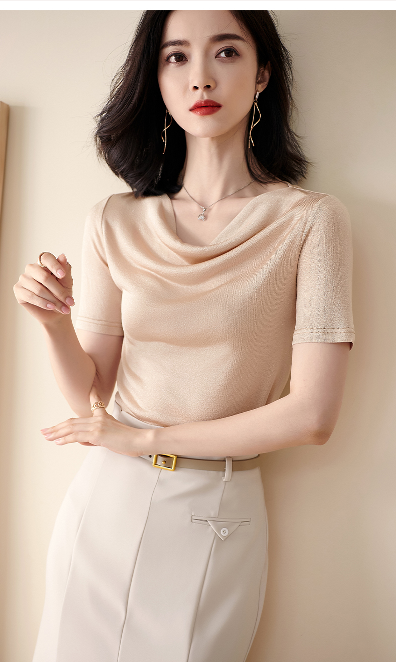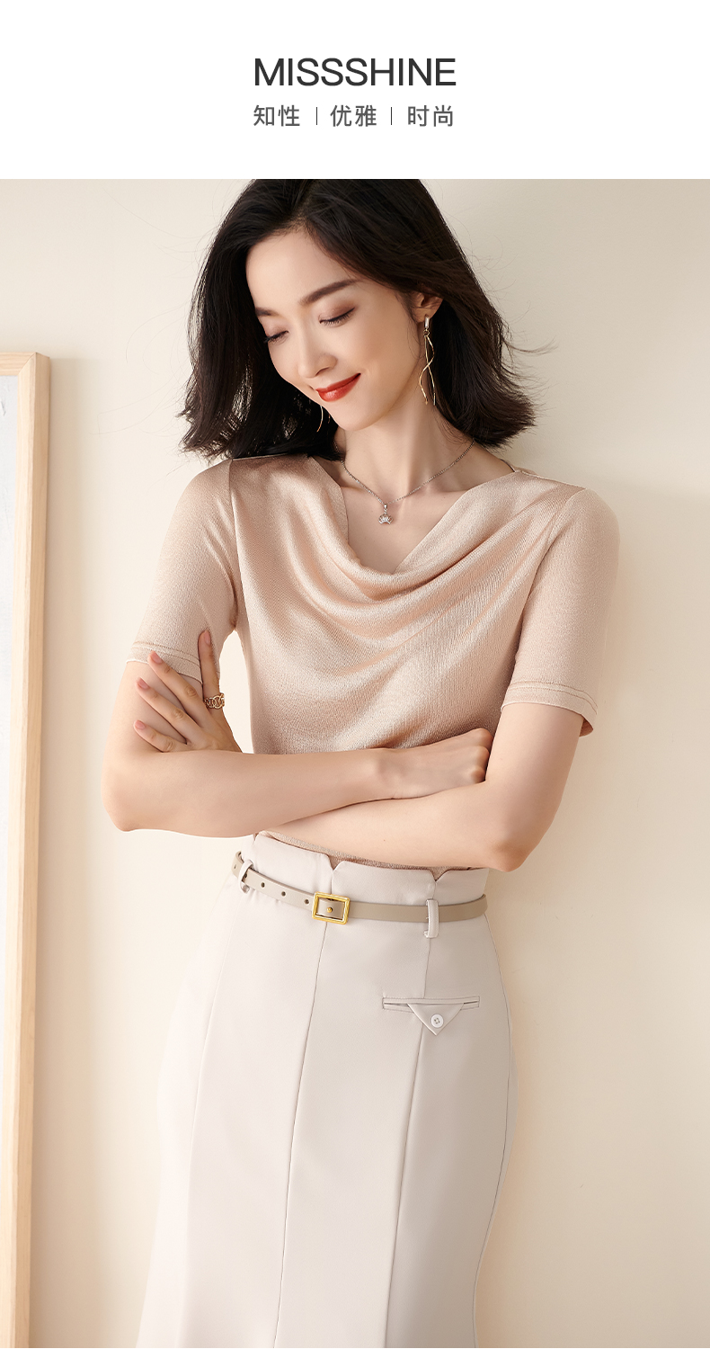 米思阳2025夏季新款荡领针织打底衫内搭修身亮丝短袖T恤女0545