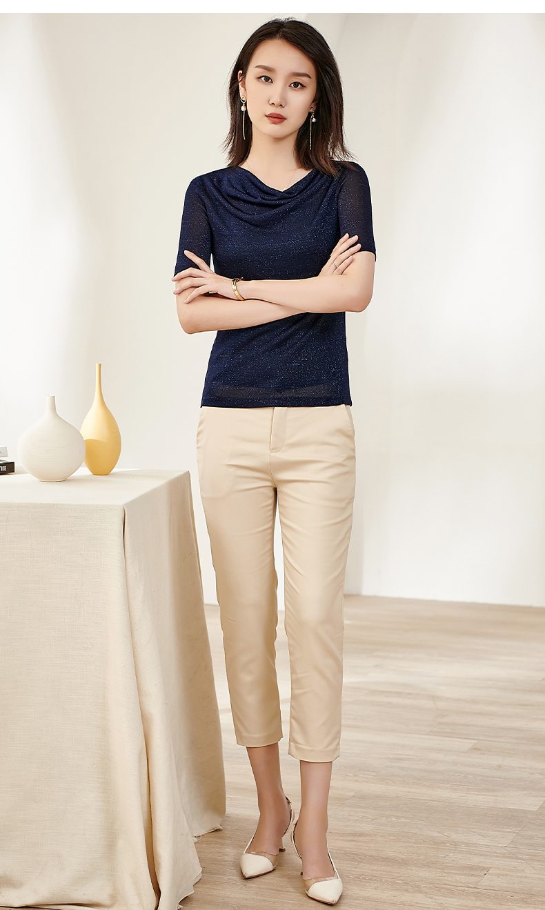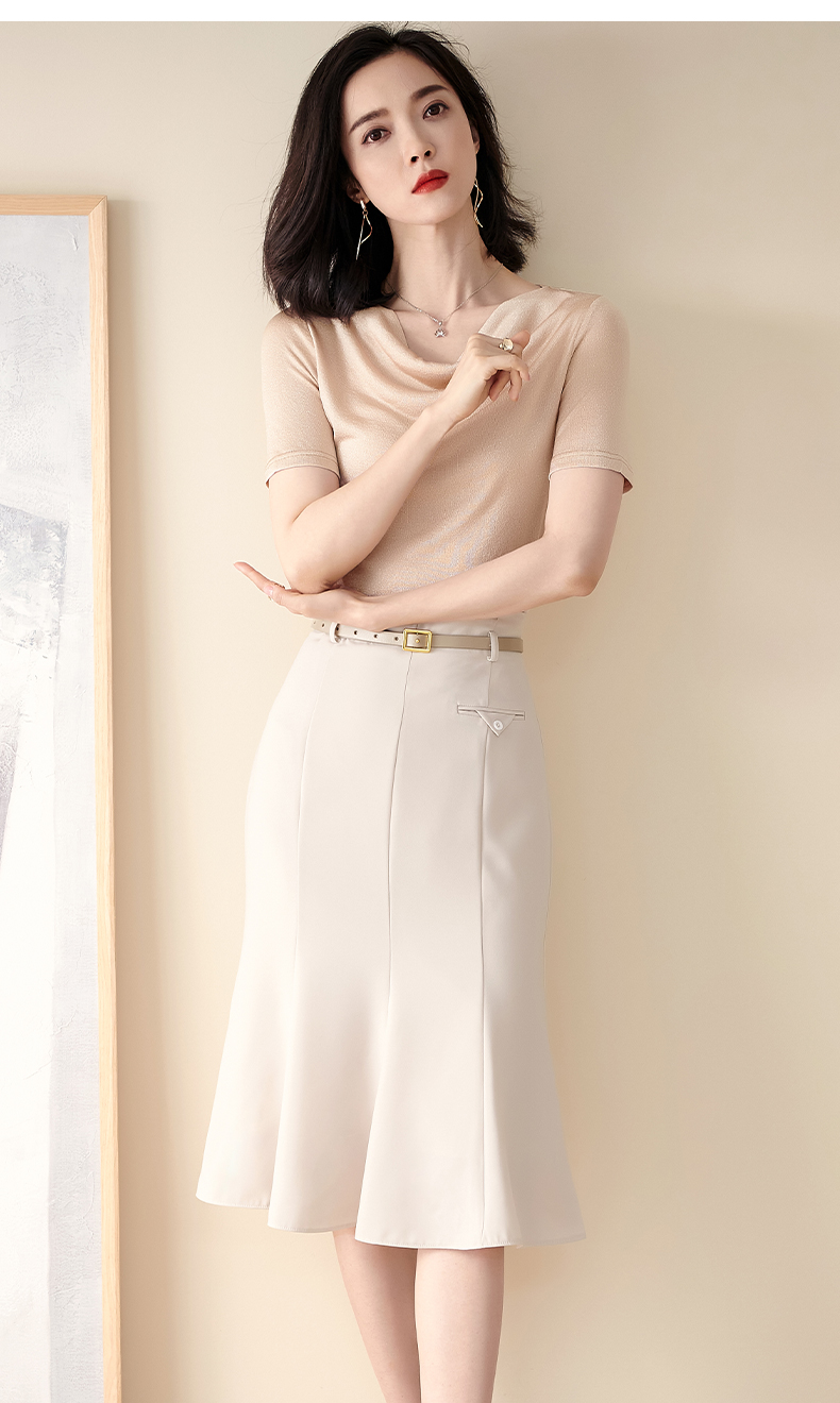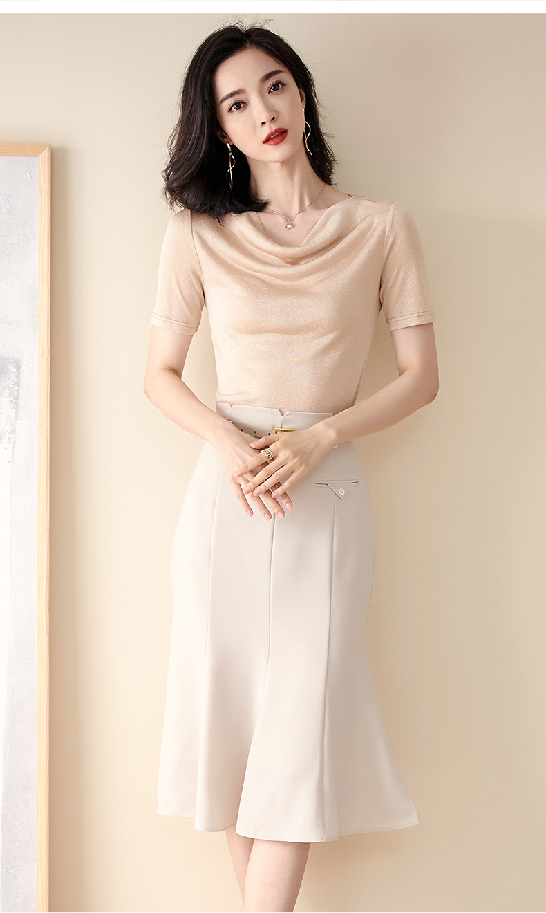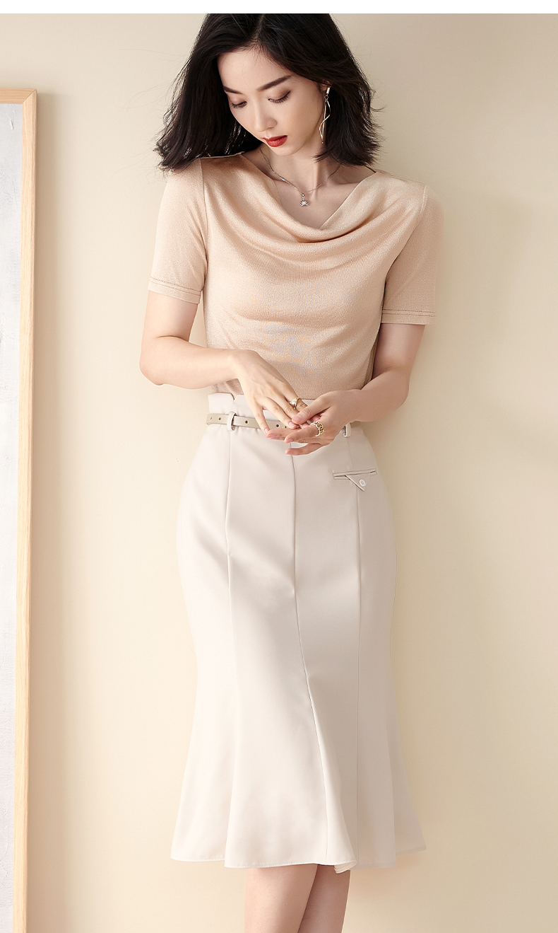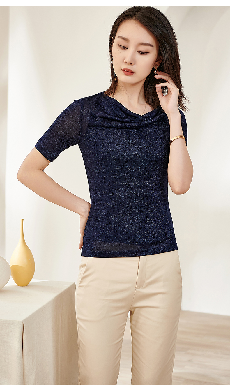 米思阳2025夏季新款荡领针织打底衫内搭修身亮丝短袖T恤女0545